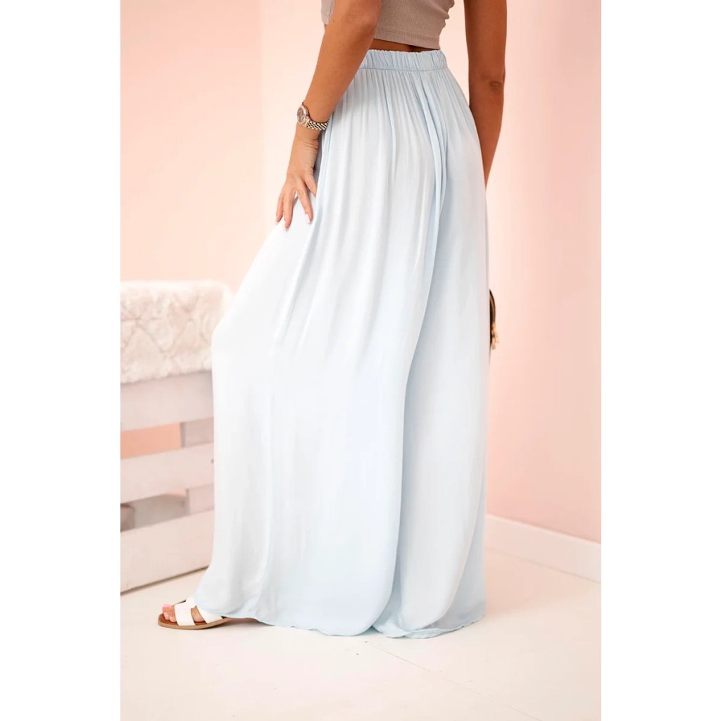 Tieto jedinečné dámske nohavice sú kombináciou pohodlia a štýlu. Vyrobené zo 100% viskózy, sú ľahké, priedušné a ideálne sa prispôsobia postave. Široké nohavice im dodávajú elegantný, vzdušný vzhľad, ktorý je skvelý ako na každý deň, tak aj na výnimočné príležitosti. Vďaka elastickej gume v páse zabezpečujú pohodlie nosenia a voľnosť pohybu. Môžeš ich skombinovať s elegantnou blúzkou alebo voľným tričkom – vždy budú vyzerať módne! Veľkosť je univerzálna a bude vhodná pre dámy vo veľkosti S, M alebo L.