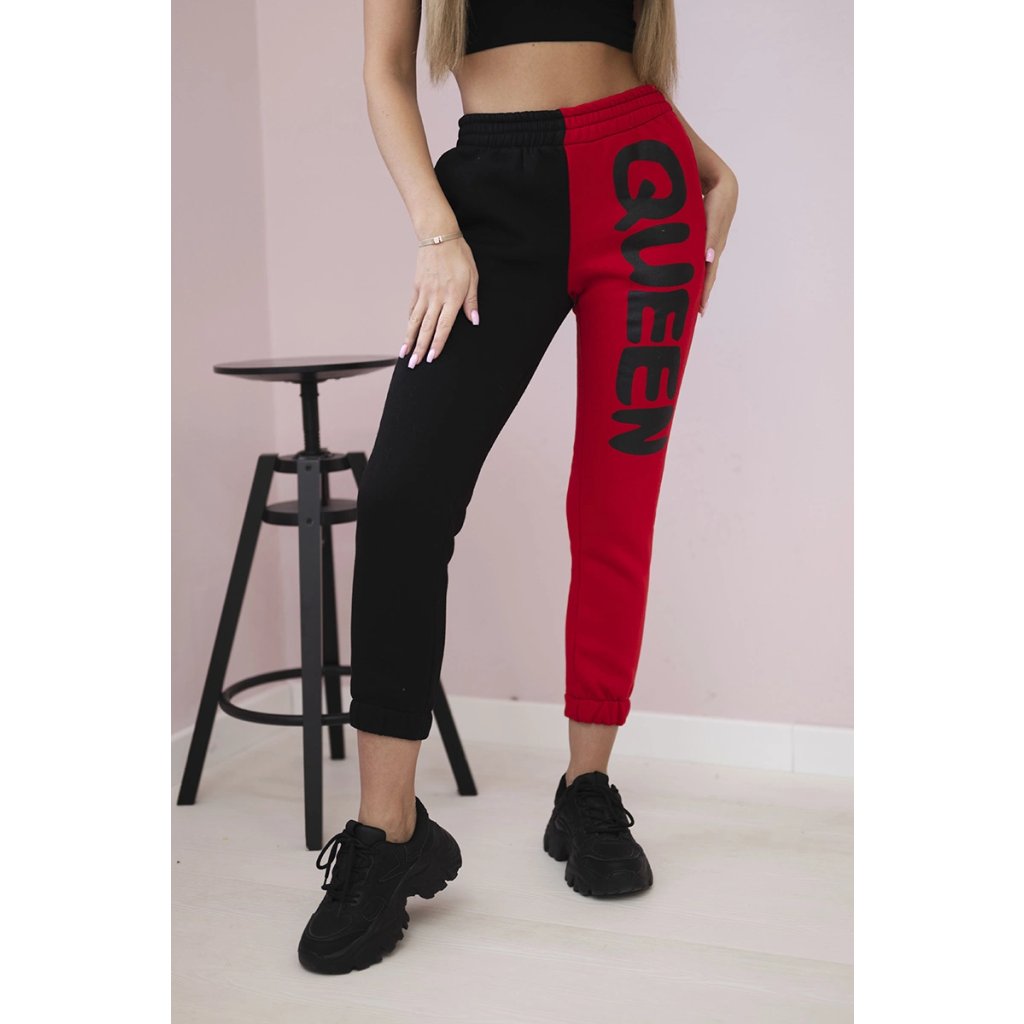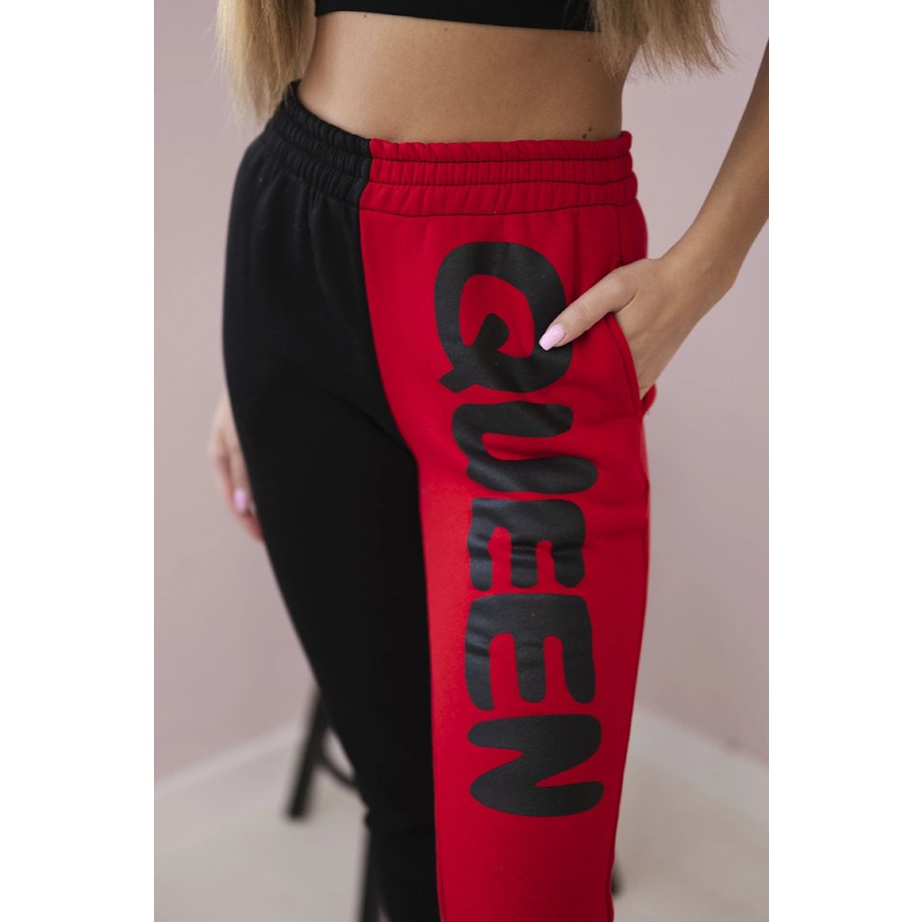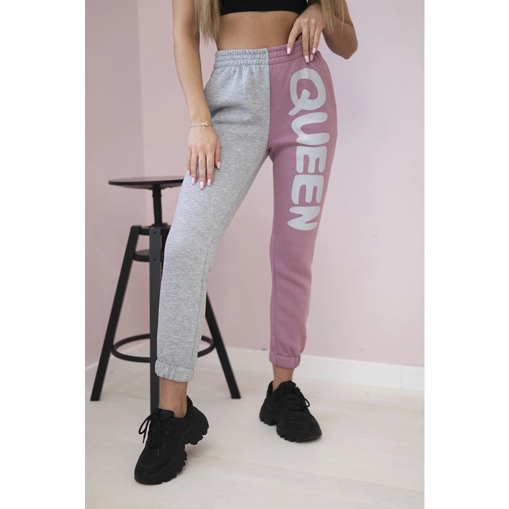 Dámske teplákové nohavice s nápisom QUEEN tmavoružové
