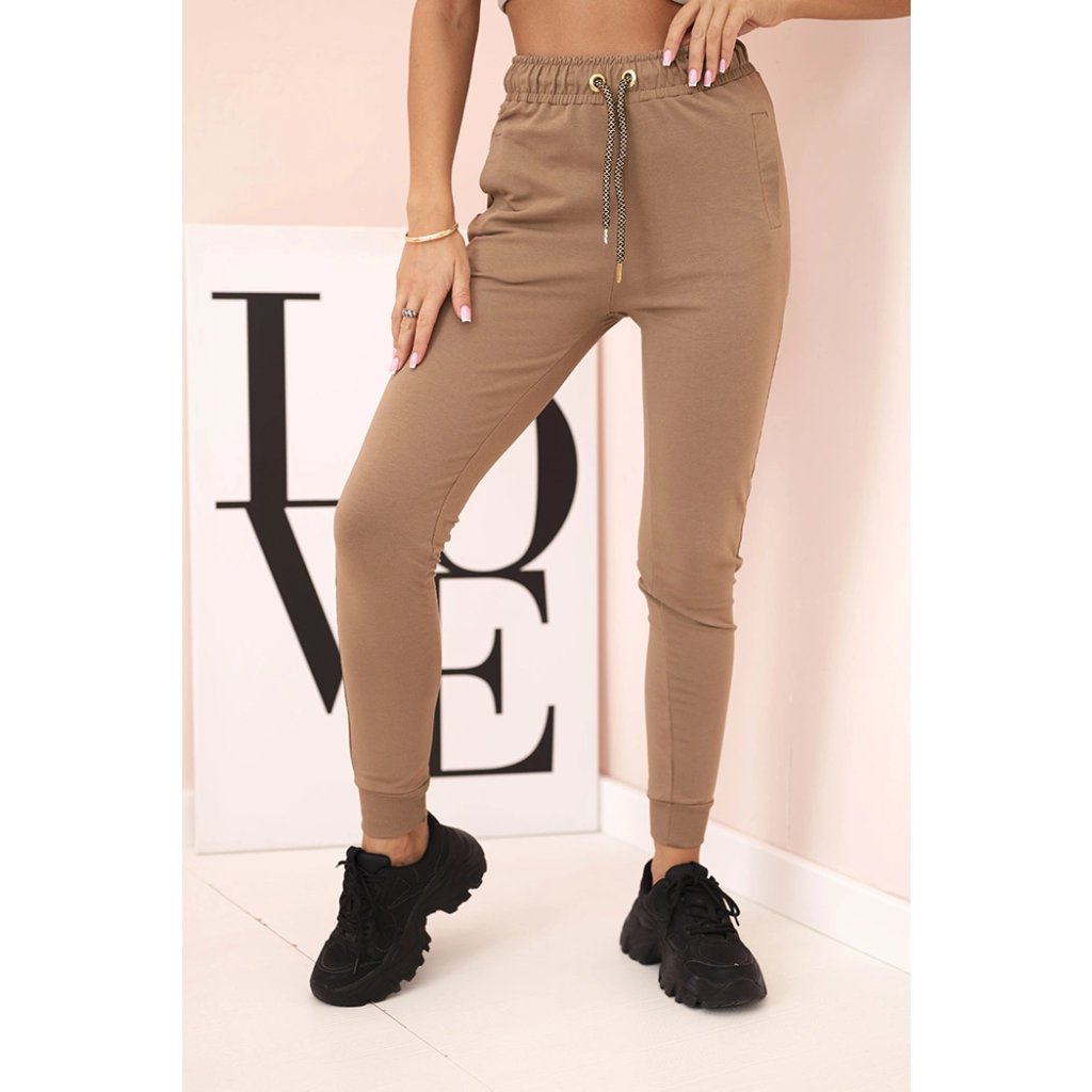 Dámske teplákové nohavice s vreckami a viazaním v páse, ťavie