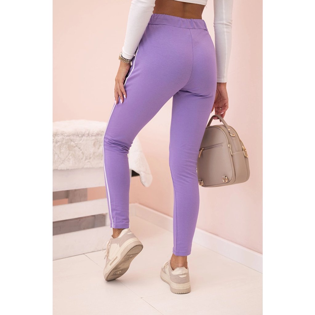 Dámske tepláky s lampasom a viazaním v páse fialové