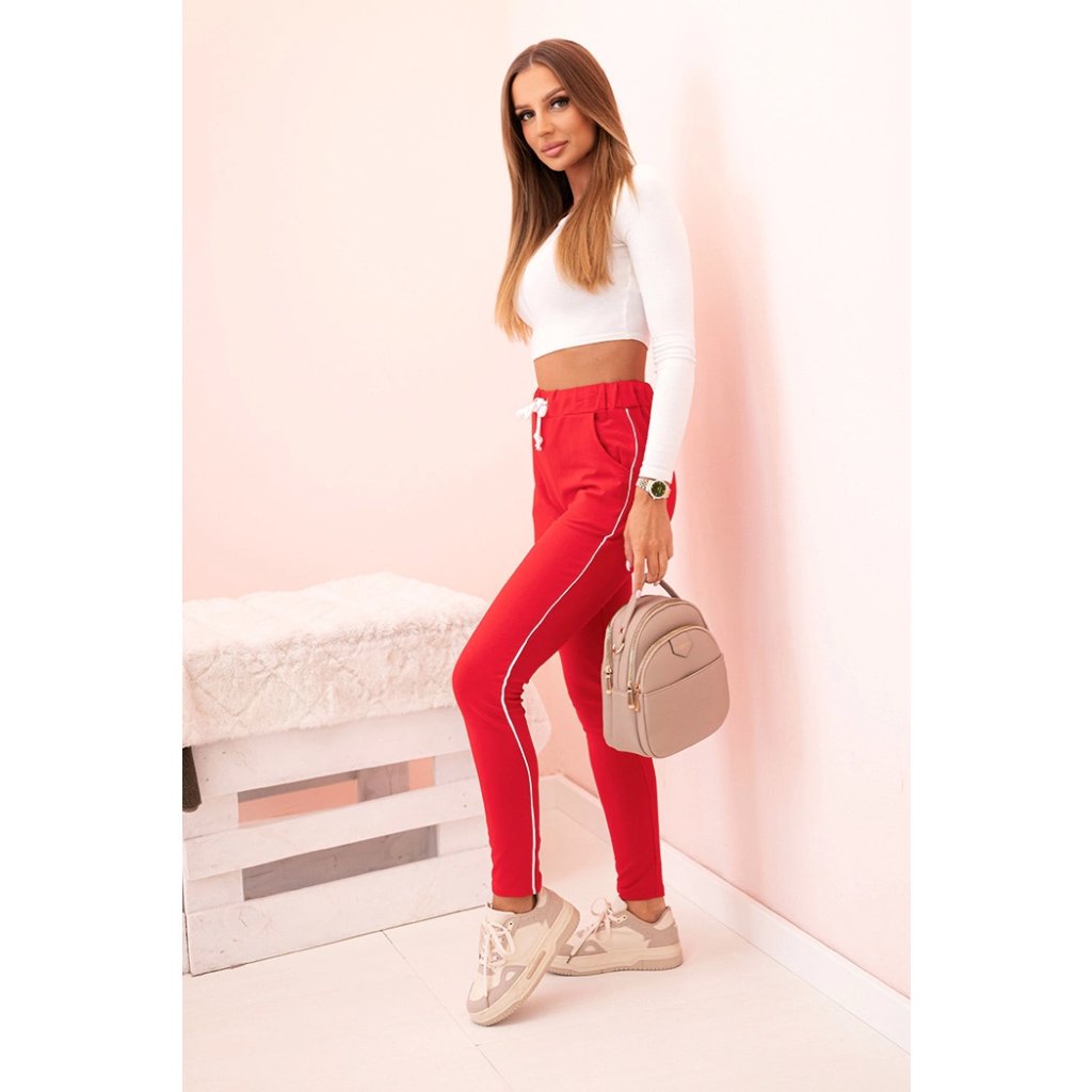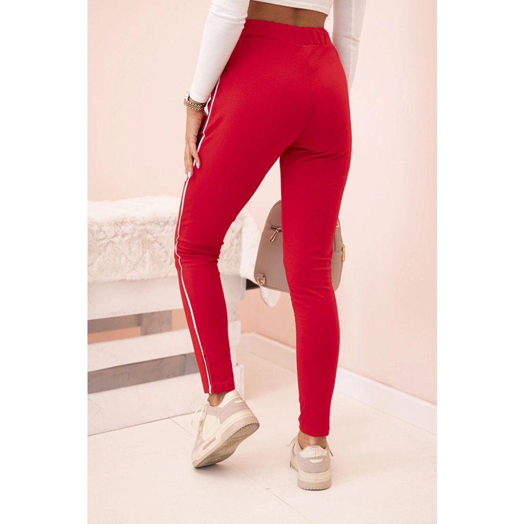 Tepláky dámske s pásikom sú kombináciou pohodlia a ženského štýlu. Vyrobené z vysokokvalitnej, elastickej bavlny s pridaním elastanu zaručujú plný komfort nosenia a ideálne prispôsobenie postave.Model má elastický pás so šnúrkou, ktorá umožňuje reguláciu šírky, a kontrastný pásik pozdĺž nohavíc, ktorý opticky zoštíhľuje nohy a pridáva športový charakter.