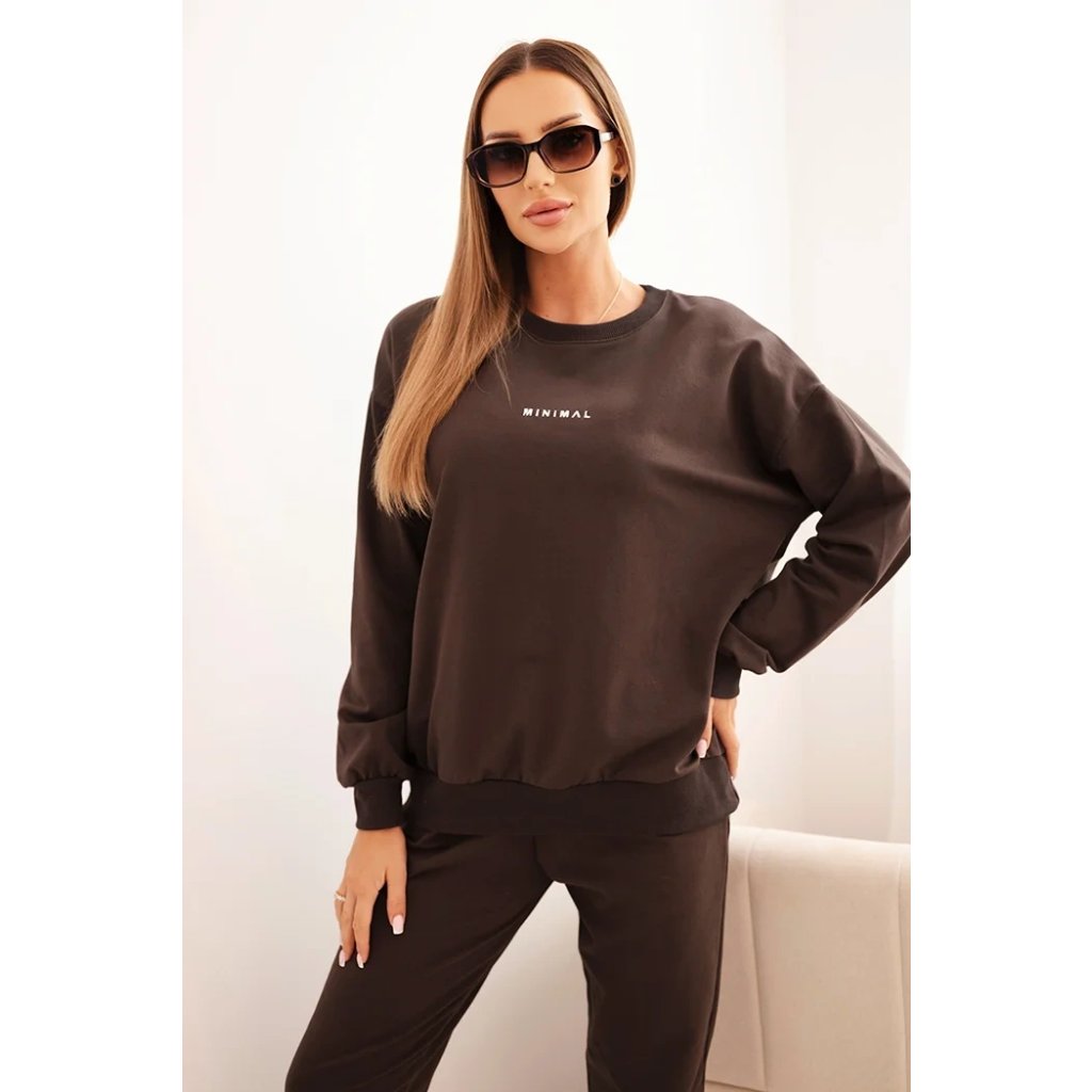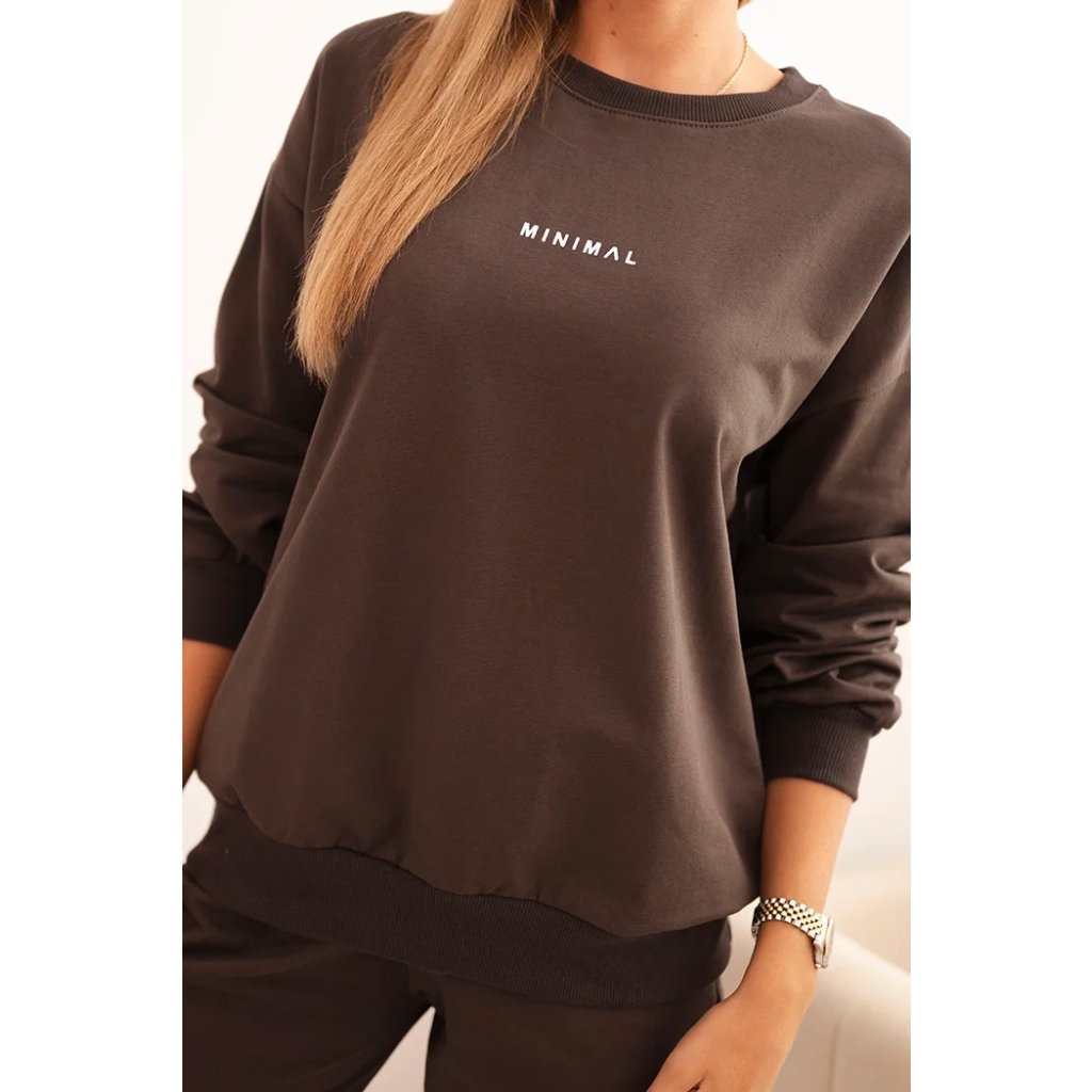 Stavte na komfort a nadčasový štýl s dámskou súpravou teplákov s nápisom MINIMAL. Mikina s voľným strihom, okrúhlym výstrihom a dlhými rukávmi je ideálna na každodenné nosenie a nohavice s elastickým pásom zaisťujú pohodlie a voľnosť pohybu. Vďaka decentnému dizajnu je táto súprava ideálna na relax doma, prechádzku alebo nákupy.