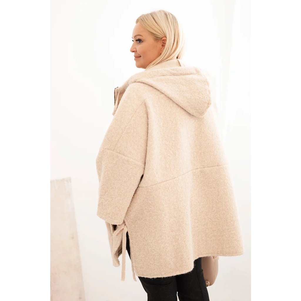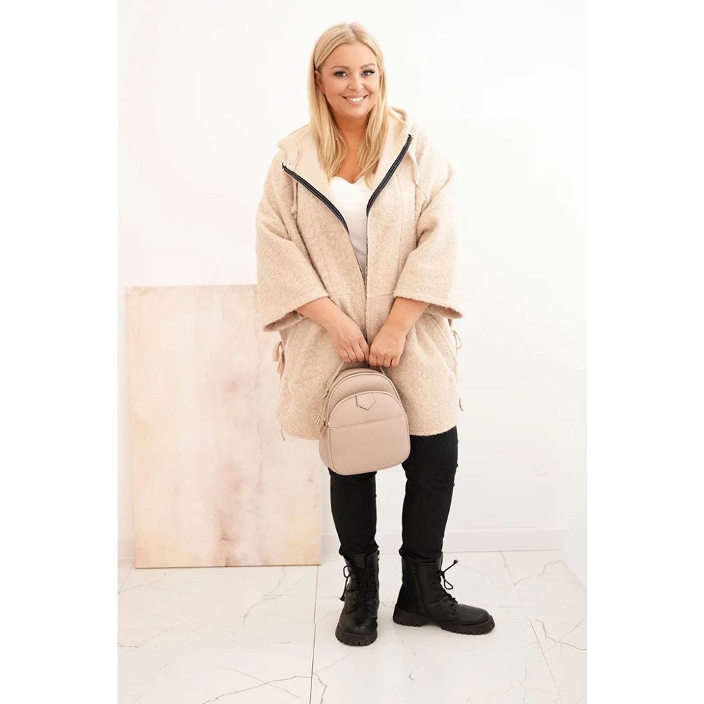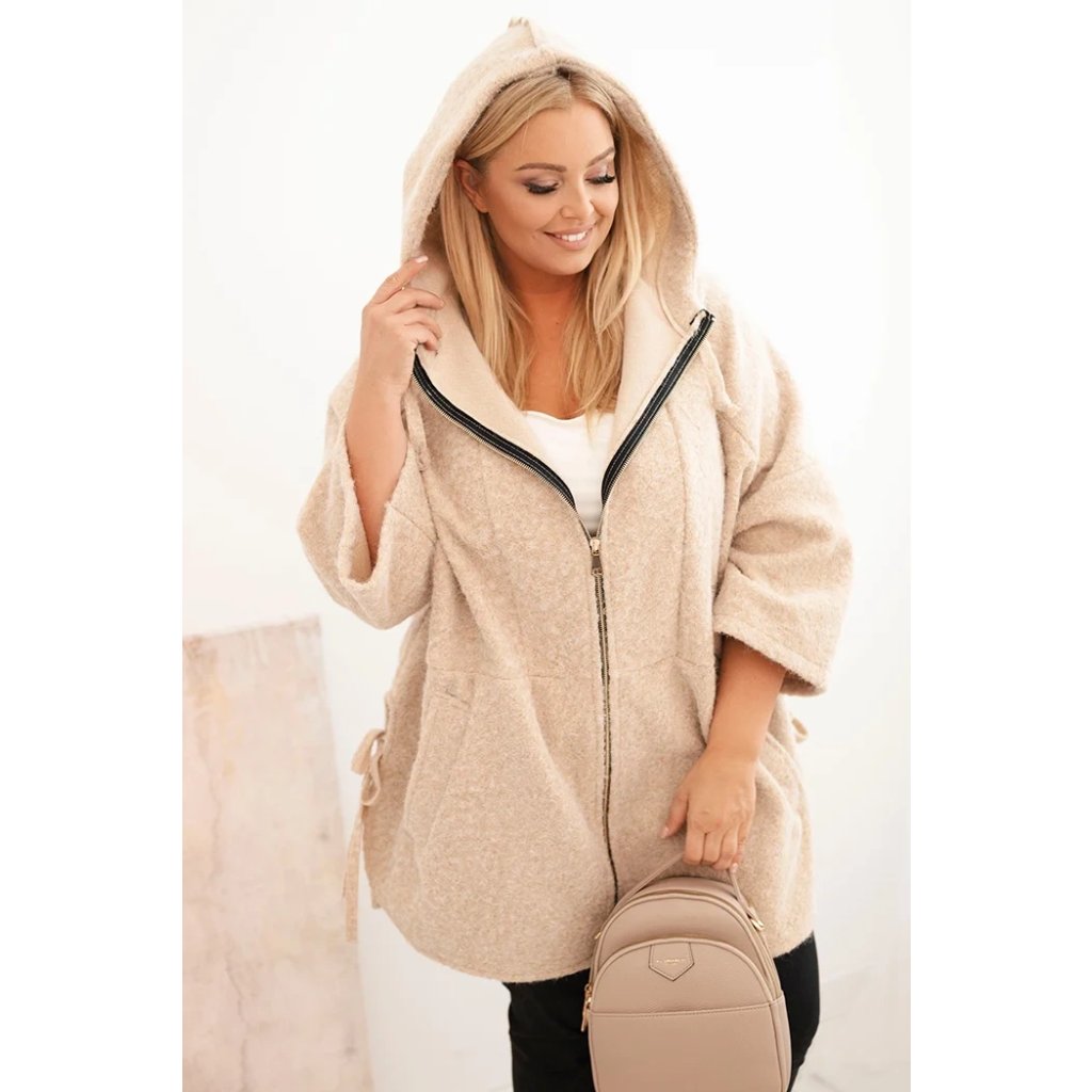 Dámsky kabát Plus Size s kapucňou a zipsom béžový