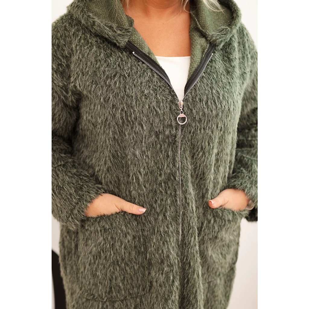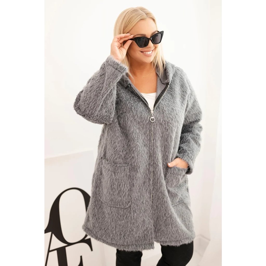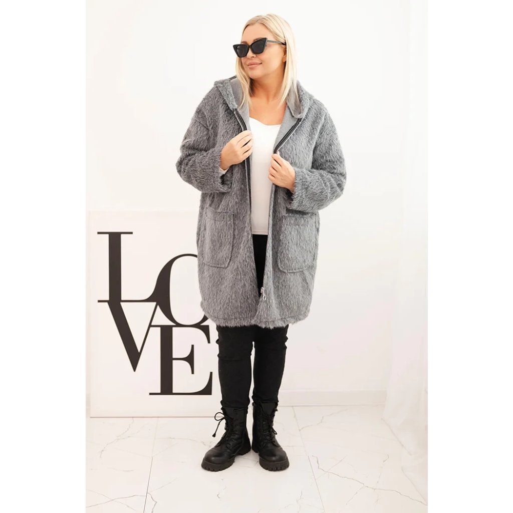 Štýlový a teplý dámsky kabát Plus Size je ideálnou voľbou na prechodné obdobie a chladné dni. Model vyrobený z mäkkej tkaniny so štruktúrou baránku obopína postavu, poskytujúc nielen teplotný komfort, ale aj módny vzhľad.