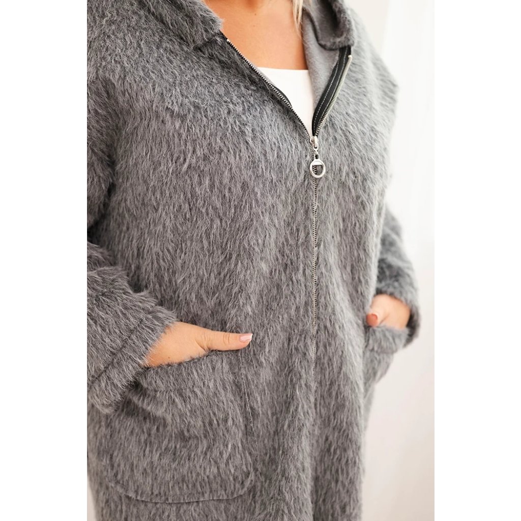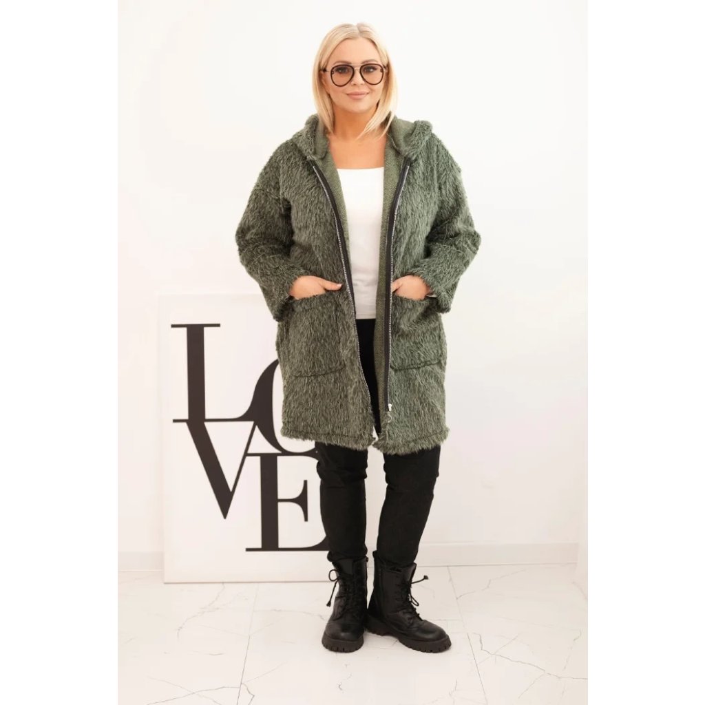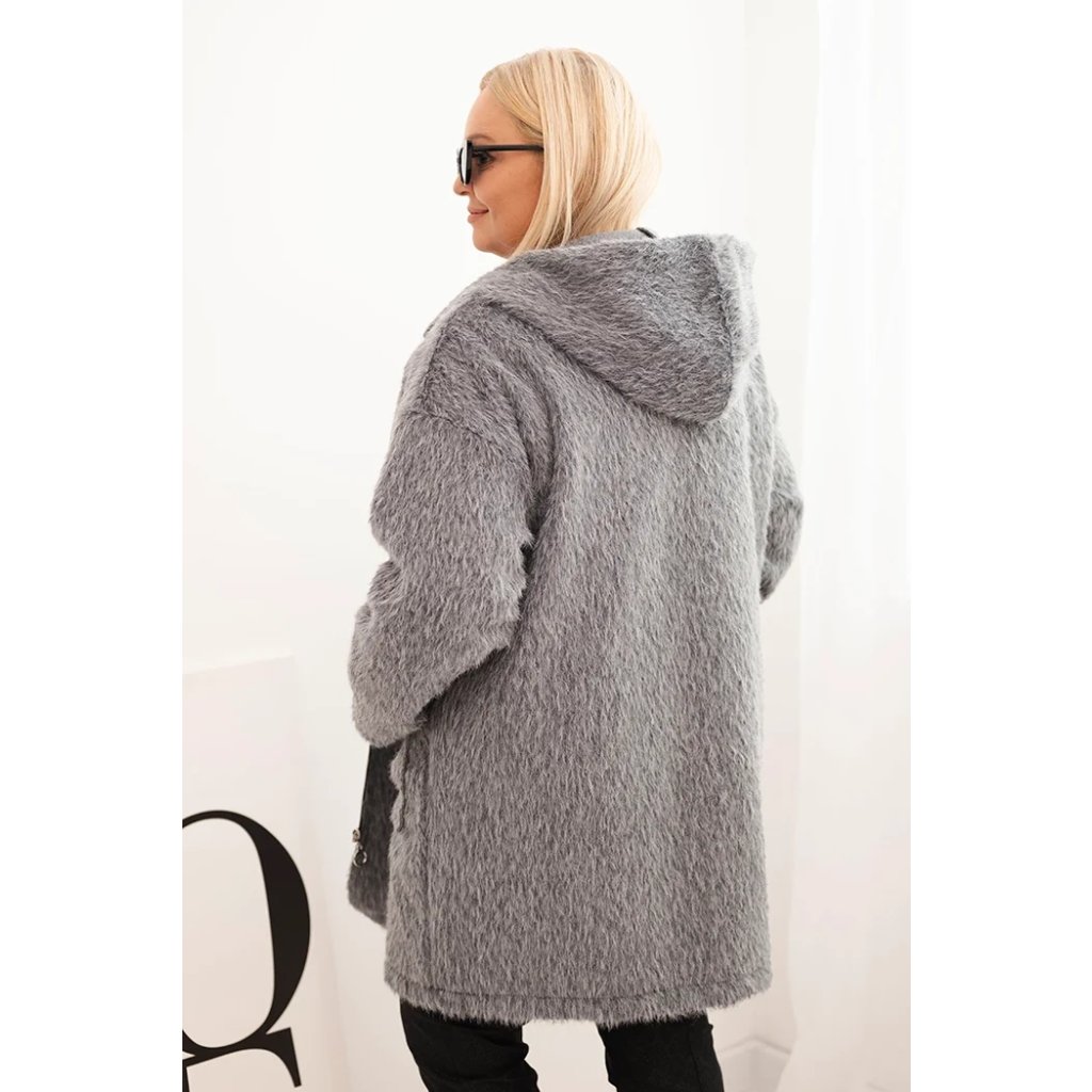 Štýlový a teplý dámsky kabát Plus Size je ideálnou voľbou na prechodné obdobie a chladné dni. Model vyrobený z mäkkej tkaniny so štruktúrou baránku obopína postavu, poskytujúc nielen teplotný komfort, ale aj módny vzhľad.