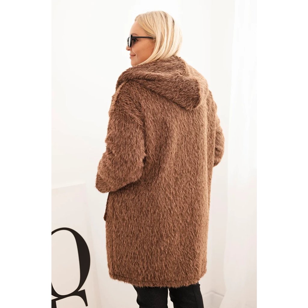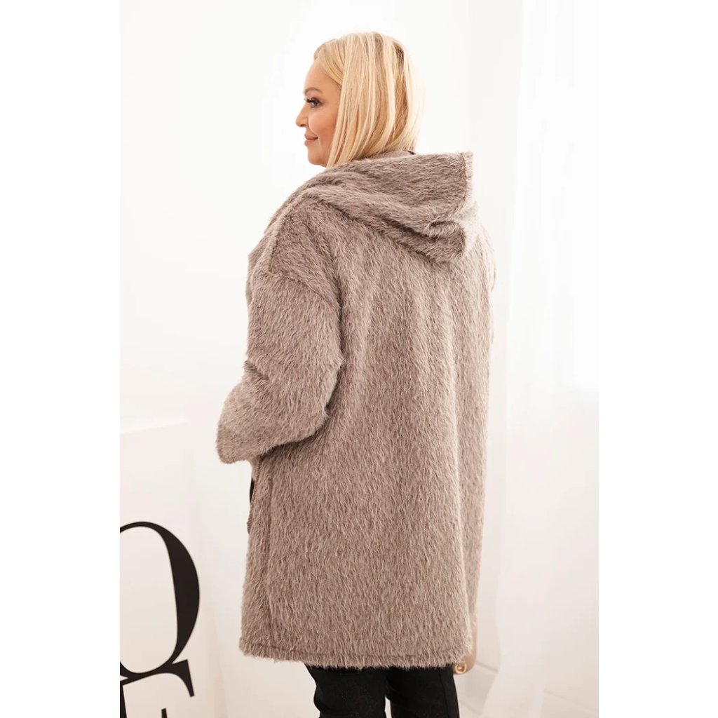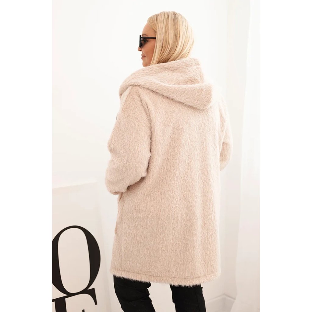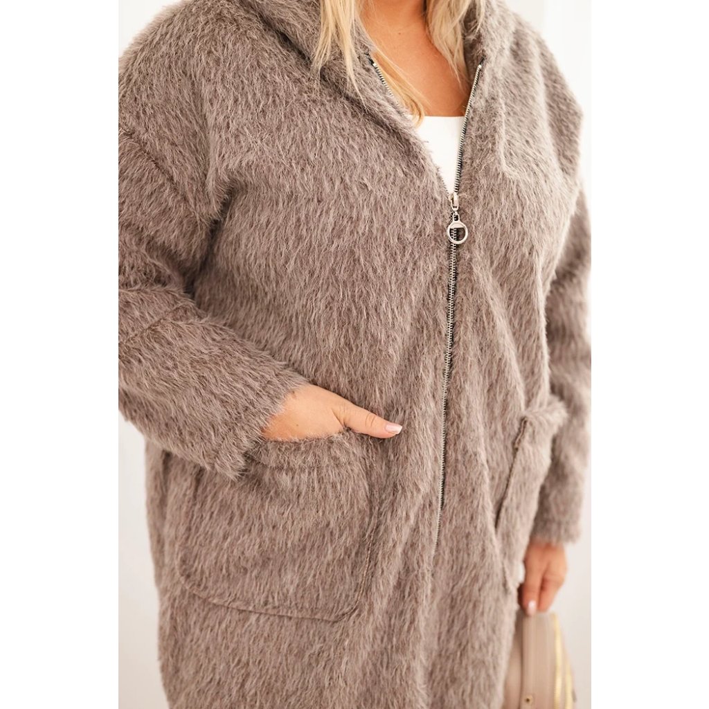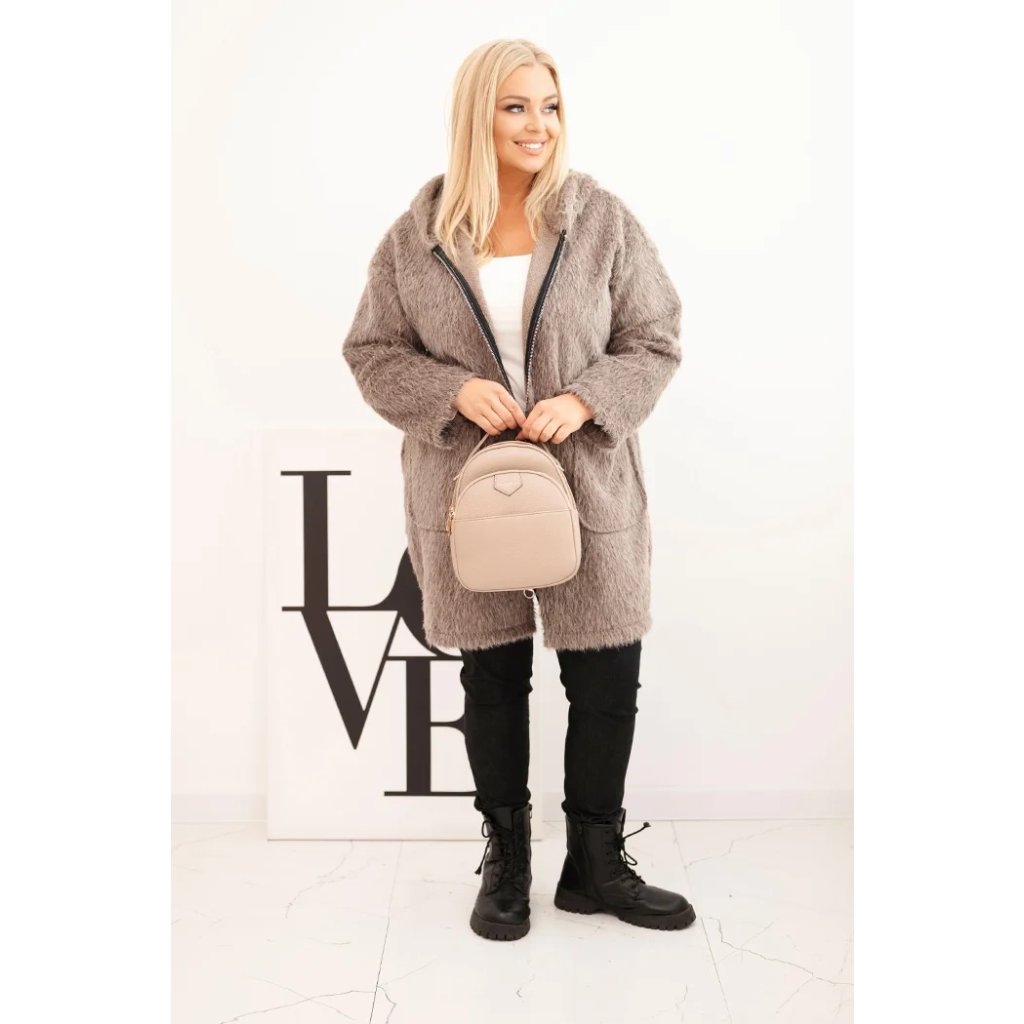 Dámsky kabát Plus Size z viskózy na zips s kapucňou béžový