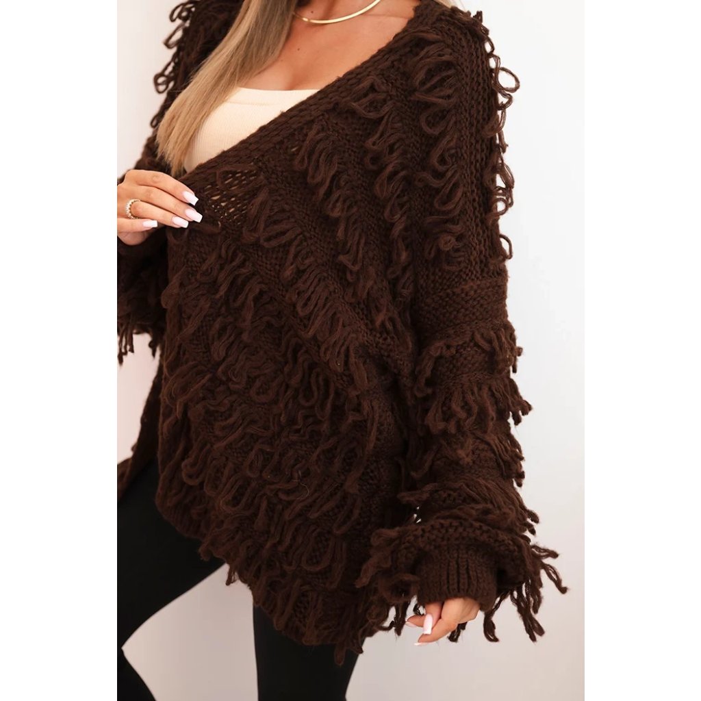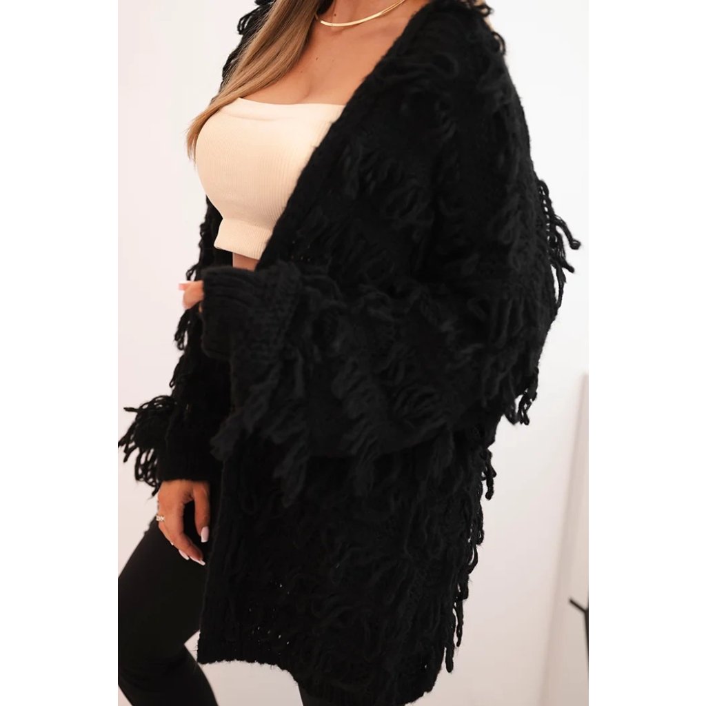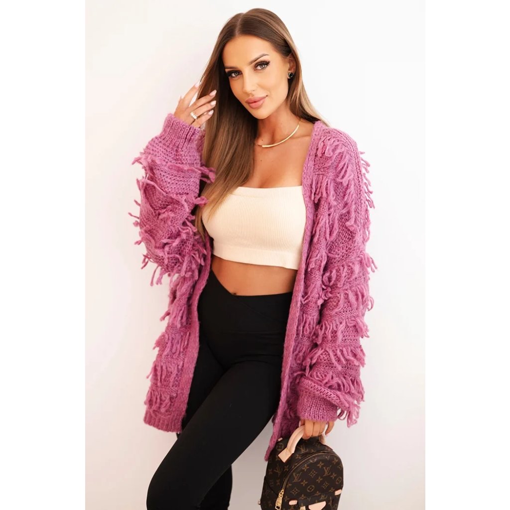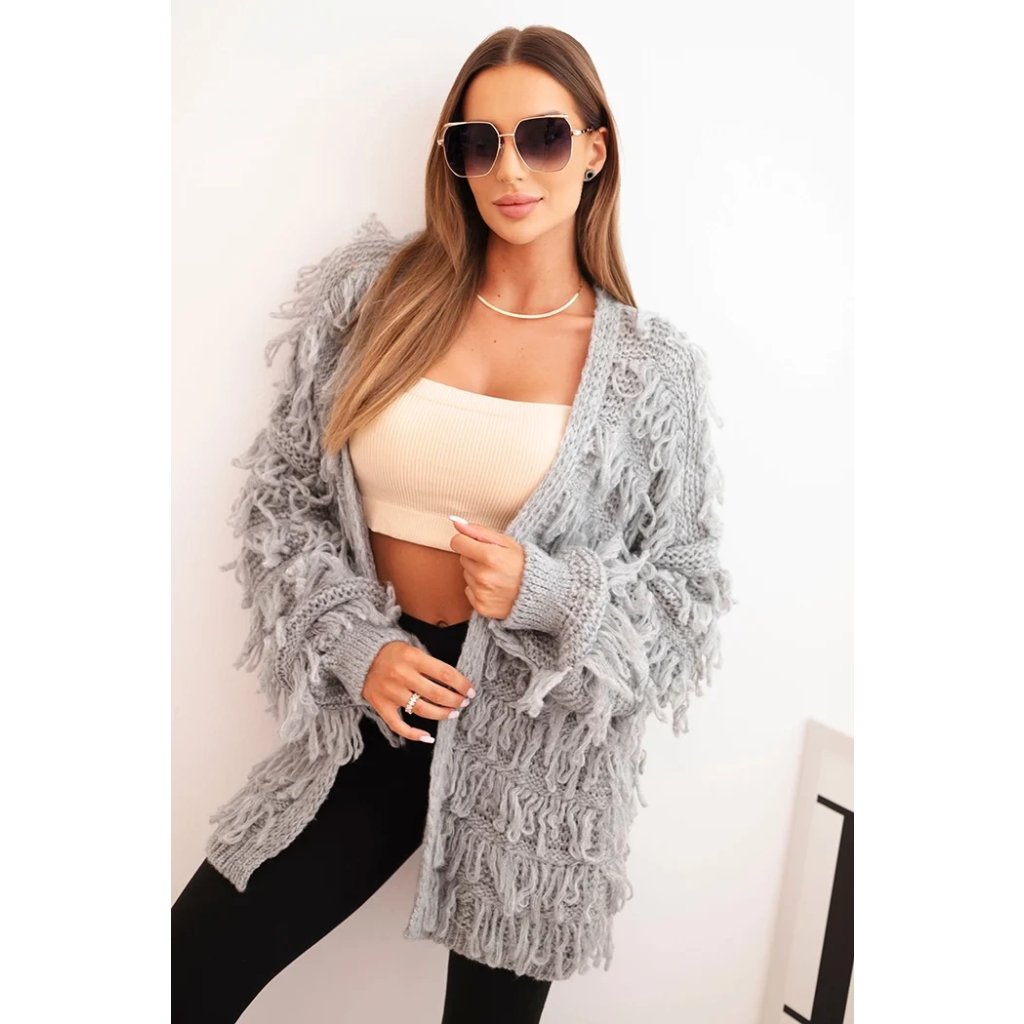 Dámsky kardigán s strapcami oversize je výnimočný kúsok oblečenia, ktorý spája módny vzhľad s pohodlím nosenia. Vyrobený z mäkkej a teplej pleteniny, poskytuje komfort v chladnejších dňoch. Voľný, oversize strih sa skvele usadí na postave, a efektívne strapce mu dodávajú originálny charakter.