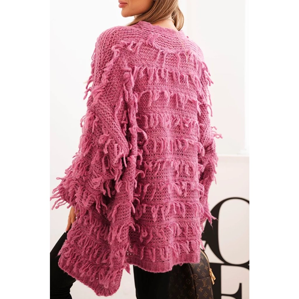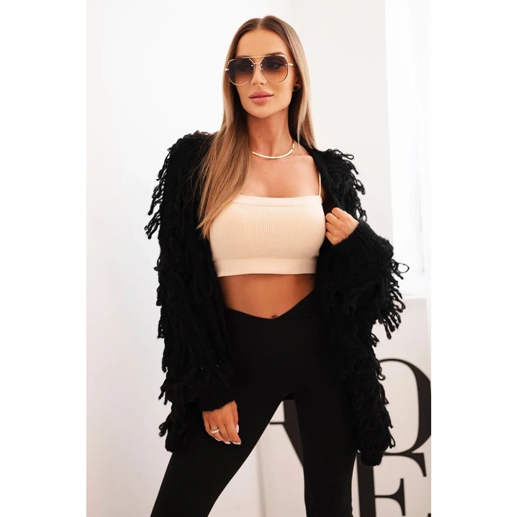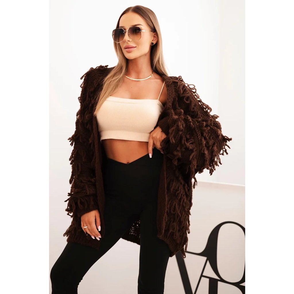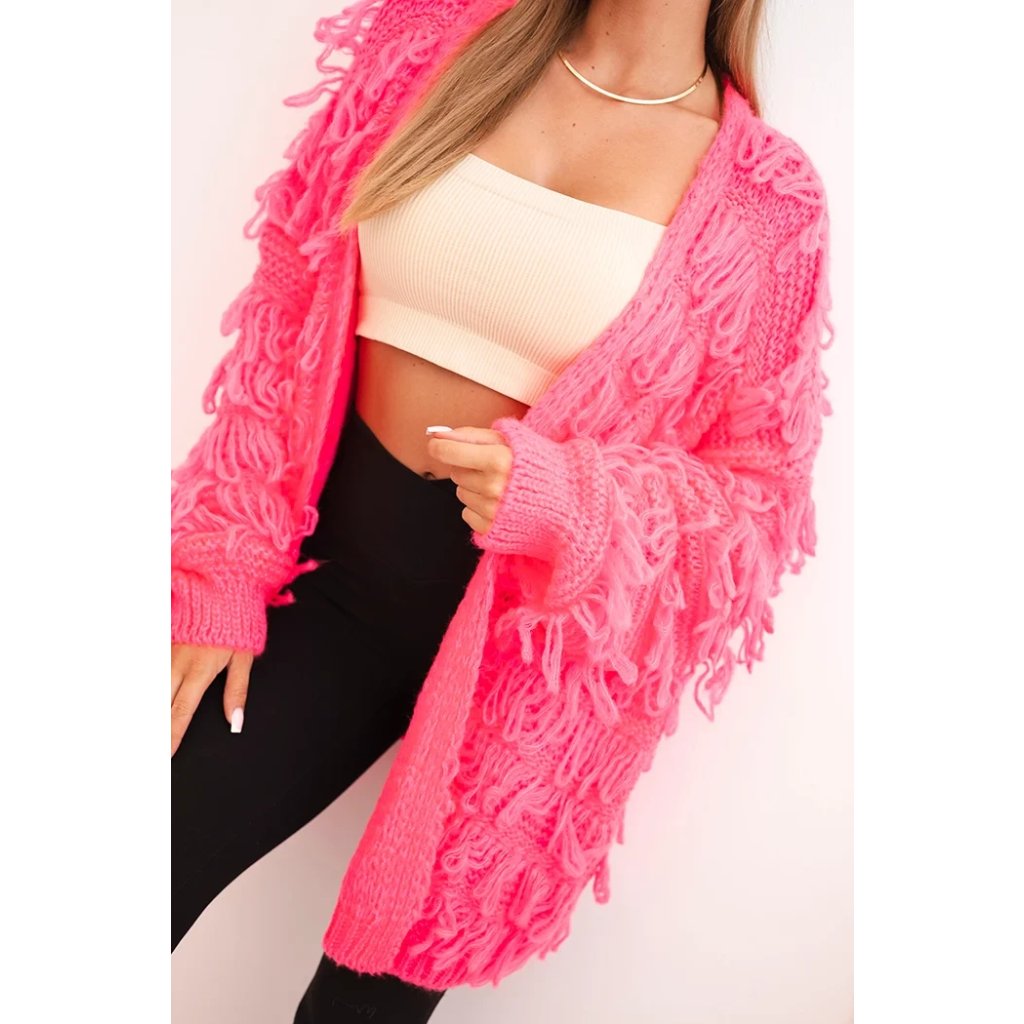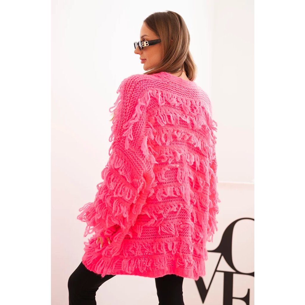Dámsky kardigán s strapcami oversize je výnimočný kúsok oblečenia, ktorý spája módny vzhľad s pohodlím nosenia. Vyrobený z mäkkej a teplej pleteniny, poskytuje komfort v chladnejších dňoch. Voľný, oversize strih sa skvele usadí na postave, a efektívne strapce mu dodávajú originálny charakter.