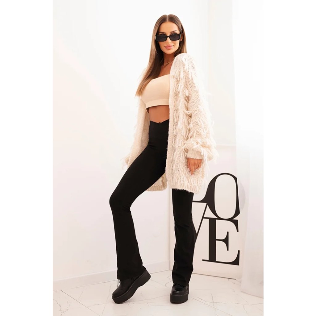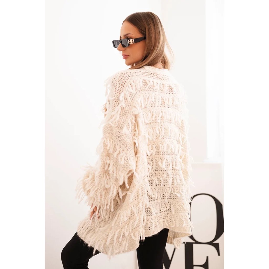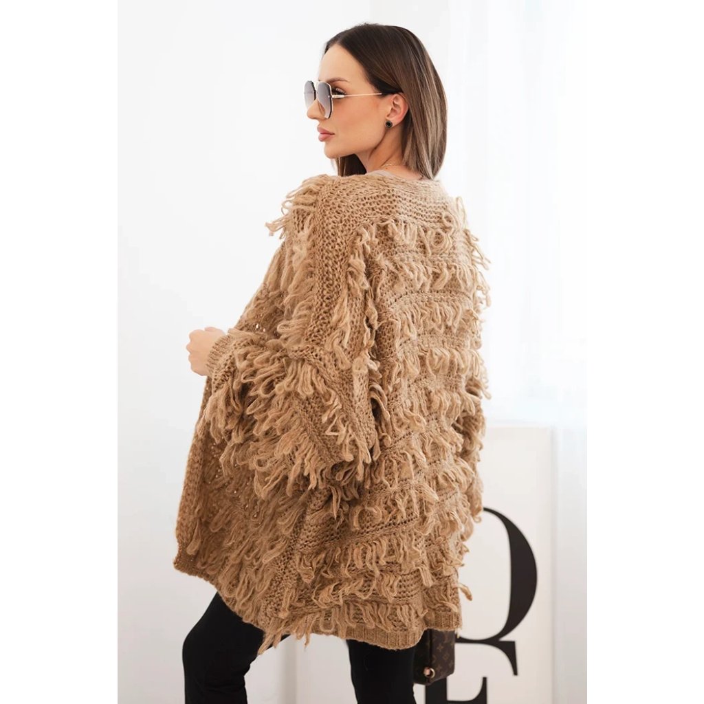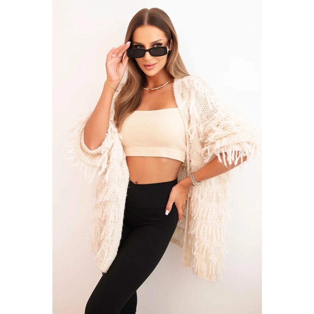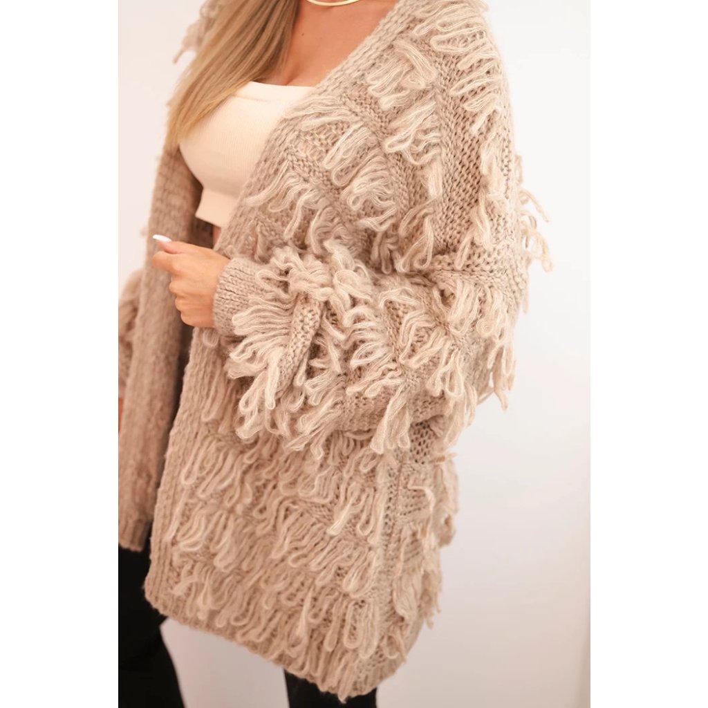 Dámsky kardigán s strapcami a voľným strihom béžový