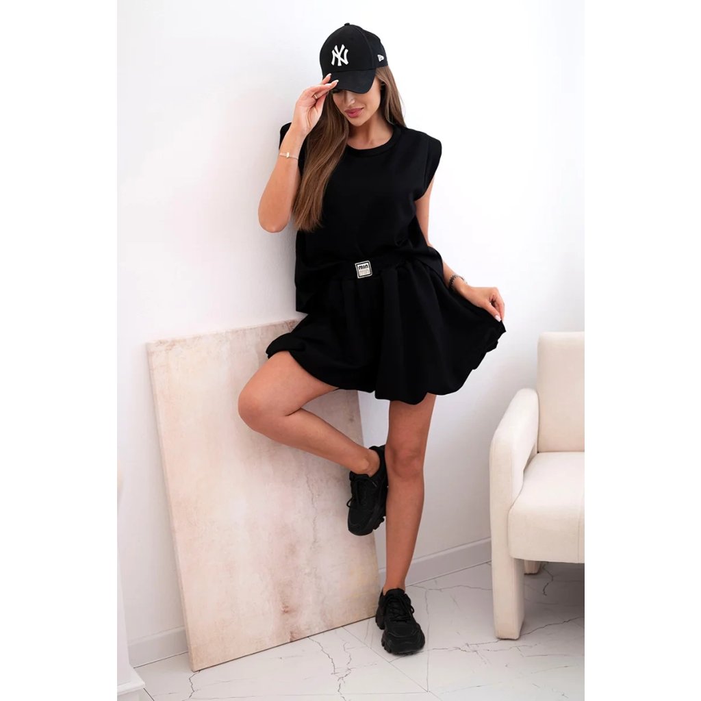 - Strih: jednoduchý top bez rukávov + šortky so širokými nohavicami