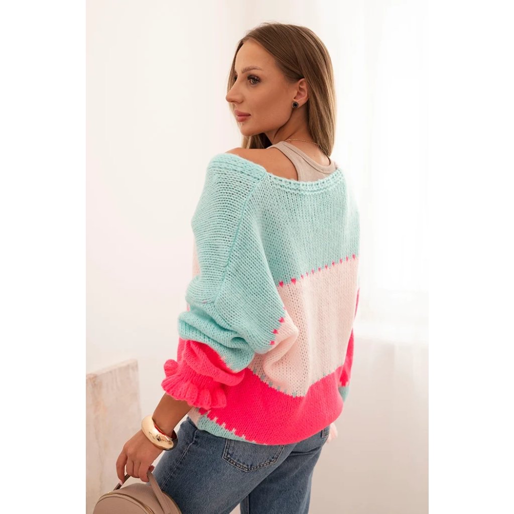 Dámsky pásikavý sveter s gombíkmi fialový + marhuľový