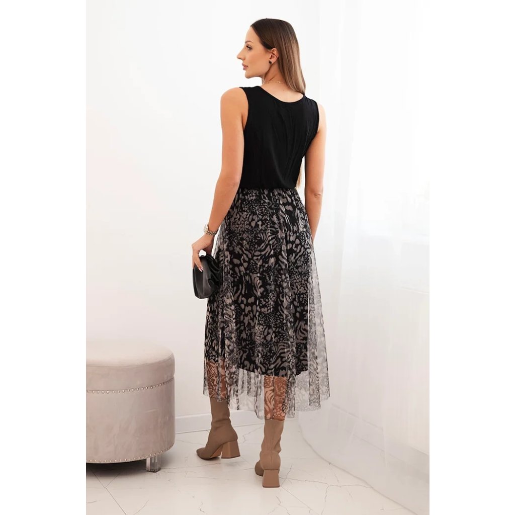 Šaty: viskózový vrch a tylový, ľahko rozšírený spodok v zvieracom vzore