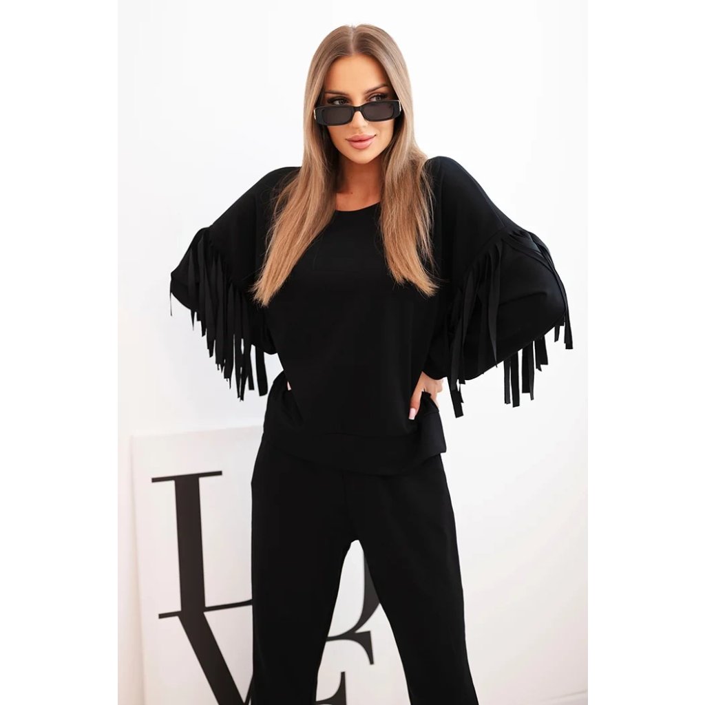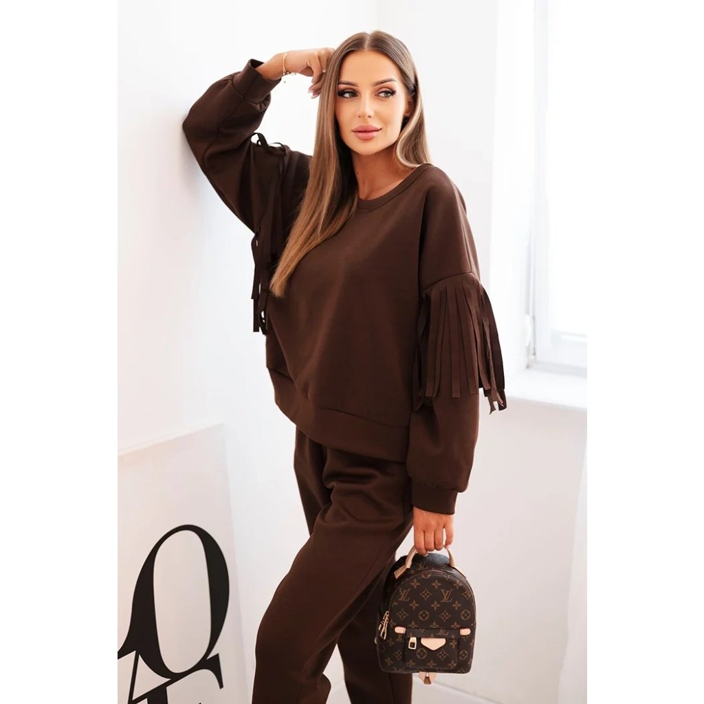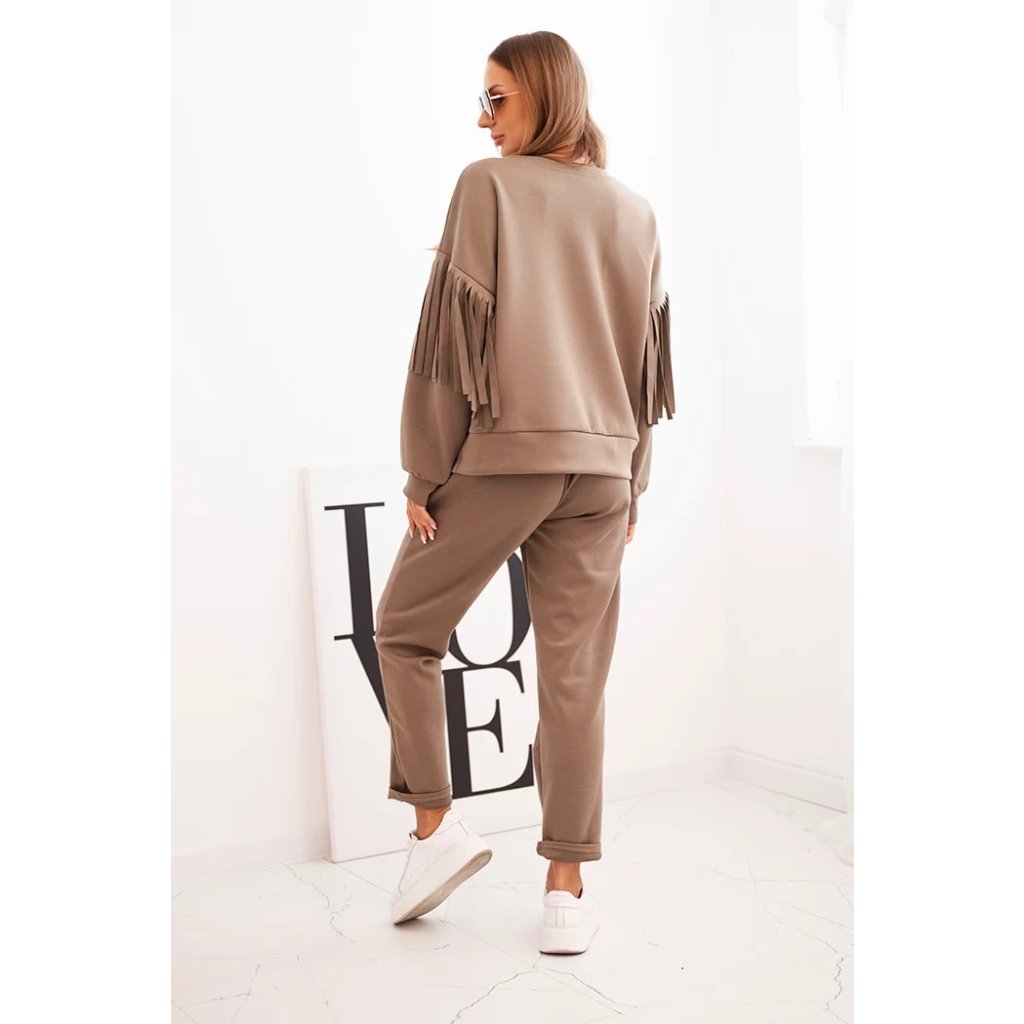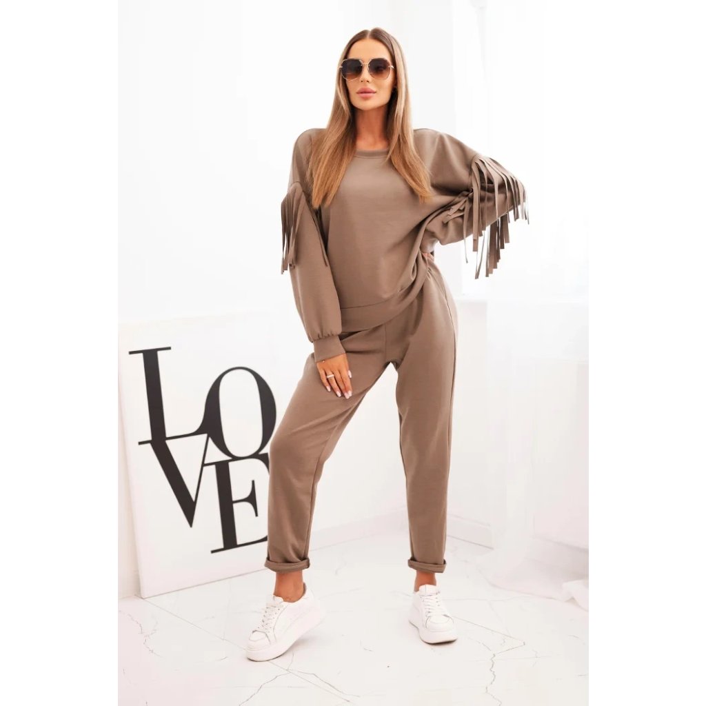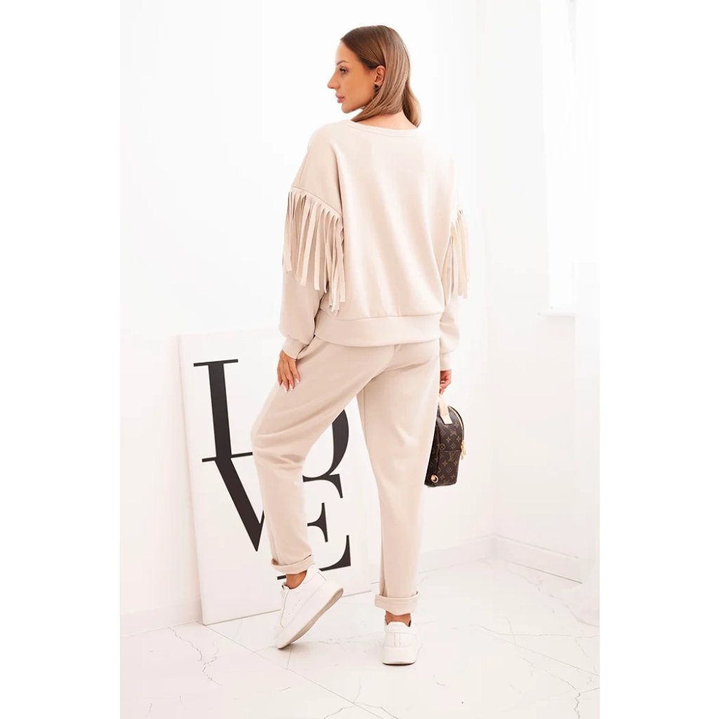 Dámsky súprava maslový s strapcami na rukávoch béžová