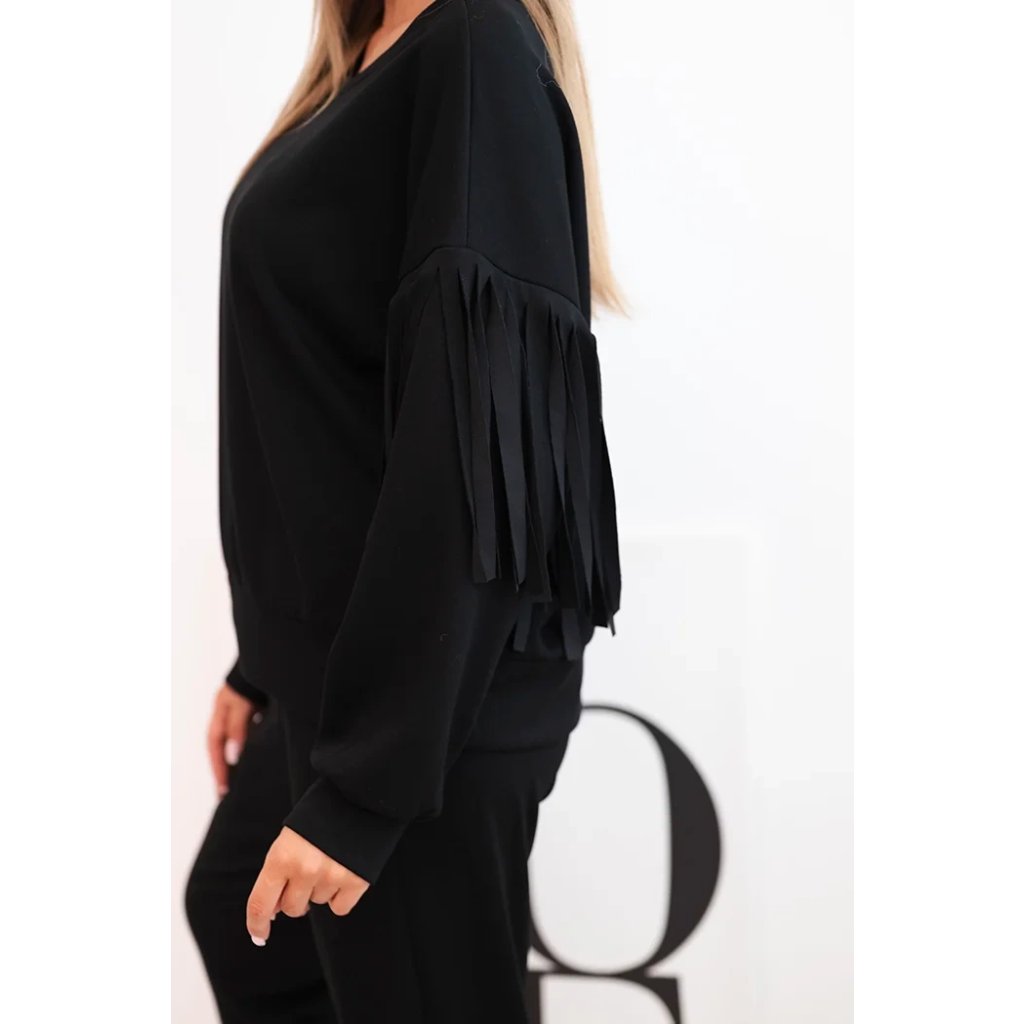 Súprava v odtieni maslovom so strapcami na rukávoch -