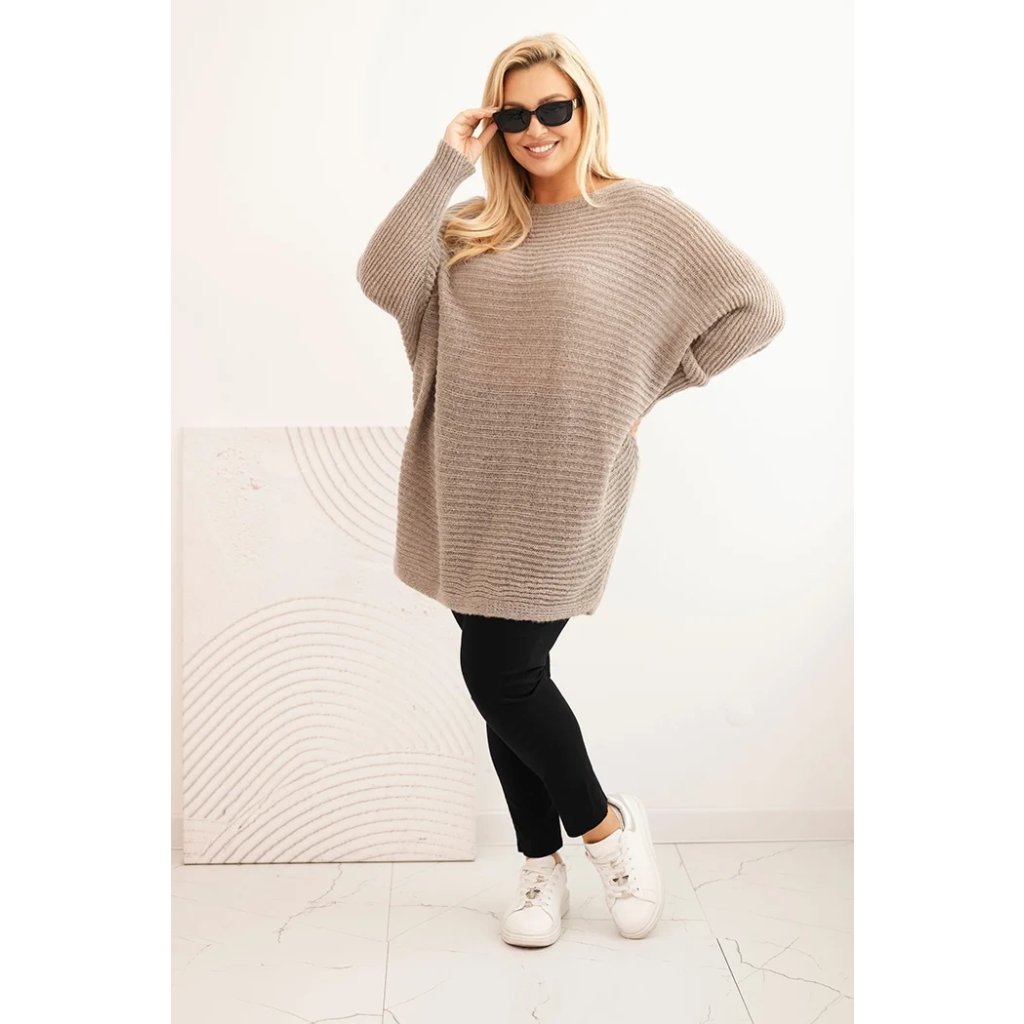 Štýlový sveter dámsky Plus Size s mohérom vo forme ponča je skvelá ponuka pre ženy, ktoré si cenia pohodlie, teplo a moderný vzhľad. Voľný, oversize strih sa pekne ukladá na postave, zabezpečuje komfort a voľnosť pohybu. Dĺžka zakrývajúca boky robí sveter ideálnym doplnkom k legínam aj džínsom, čím vytvára módne a pohodlné outfity na každý deň.