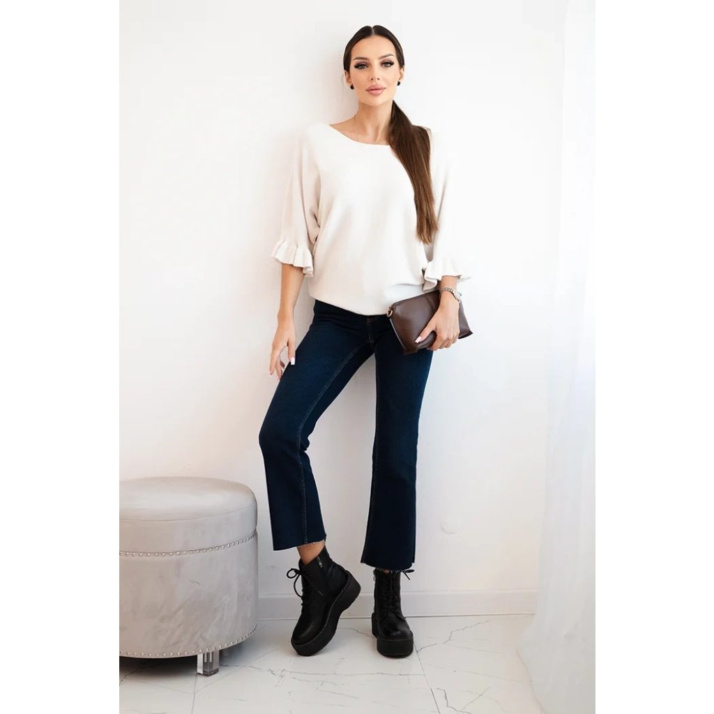 Tento sveter sa dokonale hodí ako v každodenných outfitoch, tak aj v elegantnejších kombináciách – stačí pridať klasické nohavice alebo sukňu. Ozdobné rukávy s dekoratívnym riasením pridávajú celkovému vzhľadu netradičný charakter. Je to skvelá ponuka pre ženy, ktoré oceňujú pohodlie, univerzálnosť a nadčasový dizajn.
