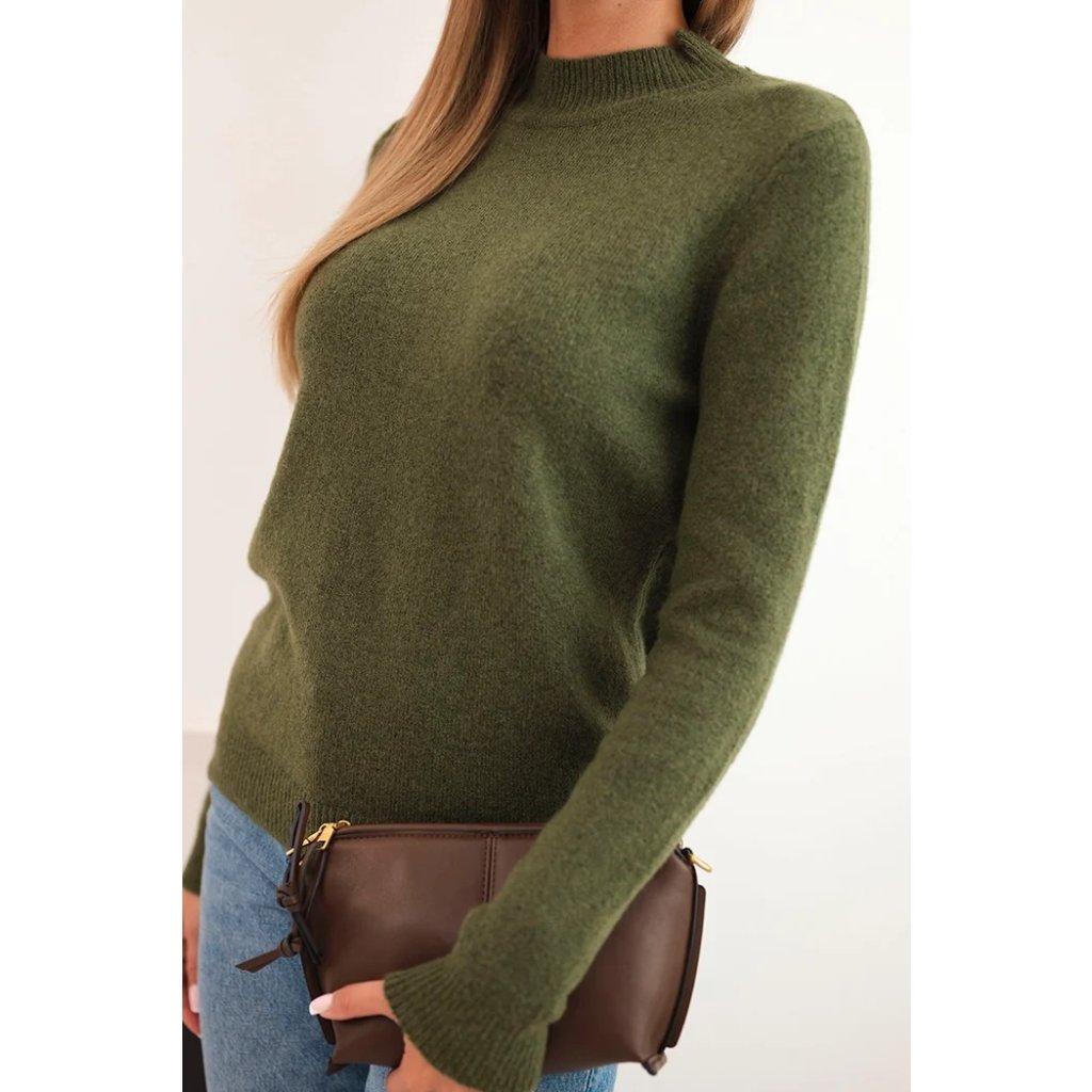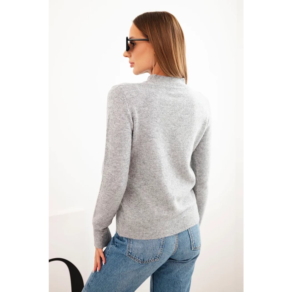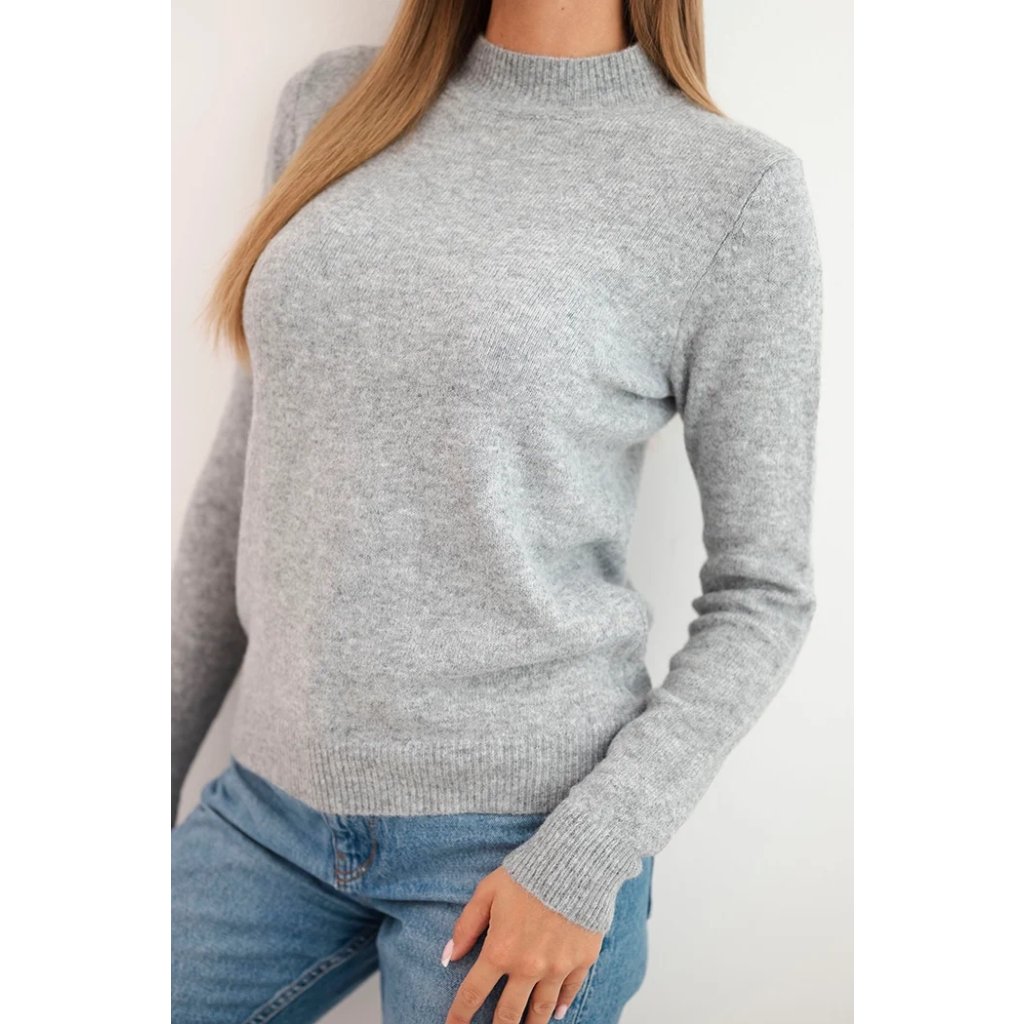 Tento klasický dámsky sveter s polovičným rolákom je ideálnou voľbou na chladnejšie dni – teplý, príjemný na dotyk a mimoriadne pohodlný. Vyrobený z mäkkej pleteniny s prídavkom vlny a spandexu, poskytuje komfort nosenia a jemnú pružnosť, ktorá sa dokonale prispôsobí postave. Jemný polovičný rolák a hladký strih dodávajú celku eleganciu a univerzálnosť – môžete ho nosiť ako do práce, tak aj na každý deň.