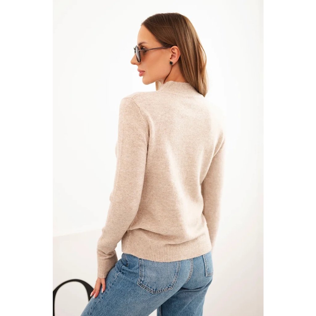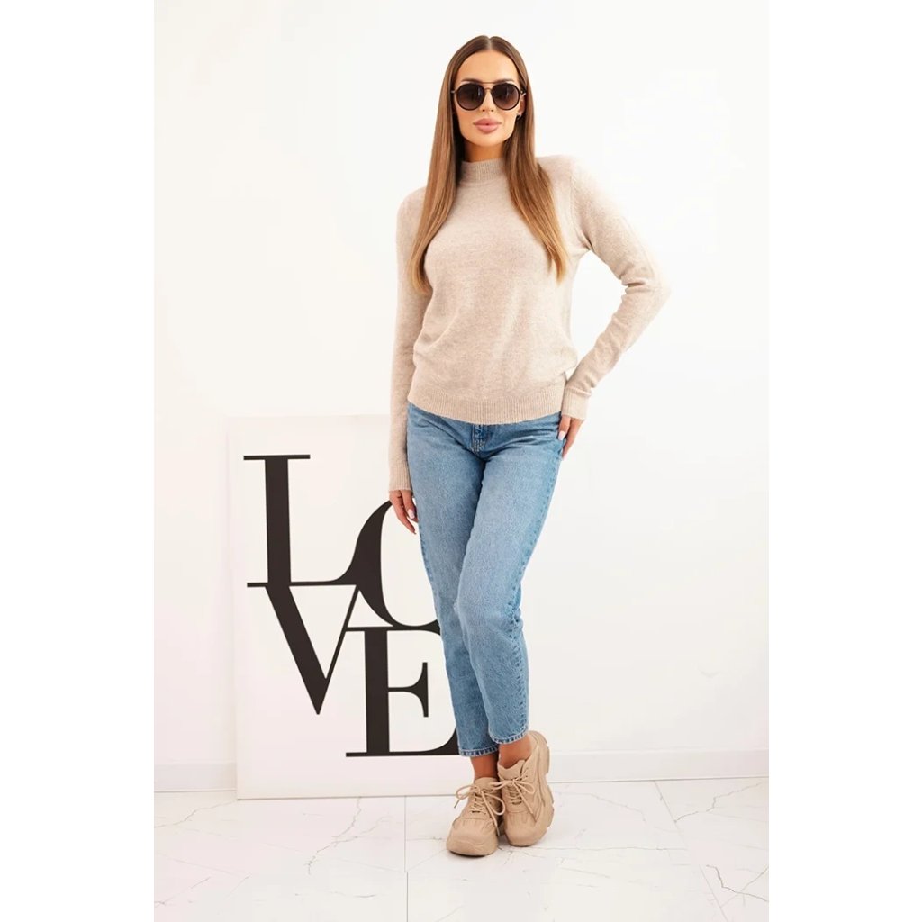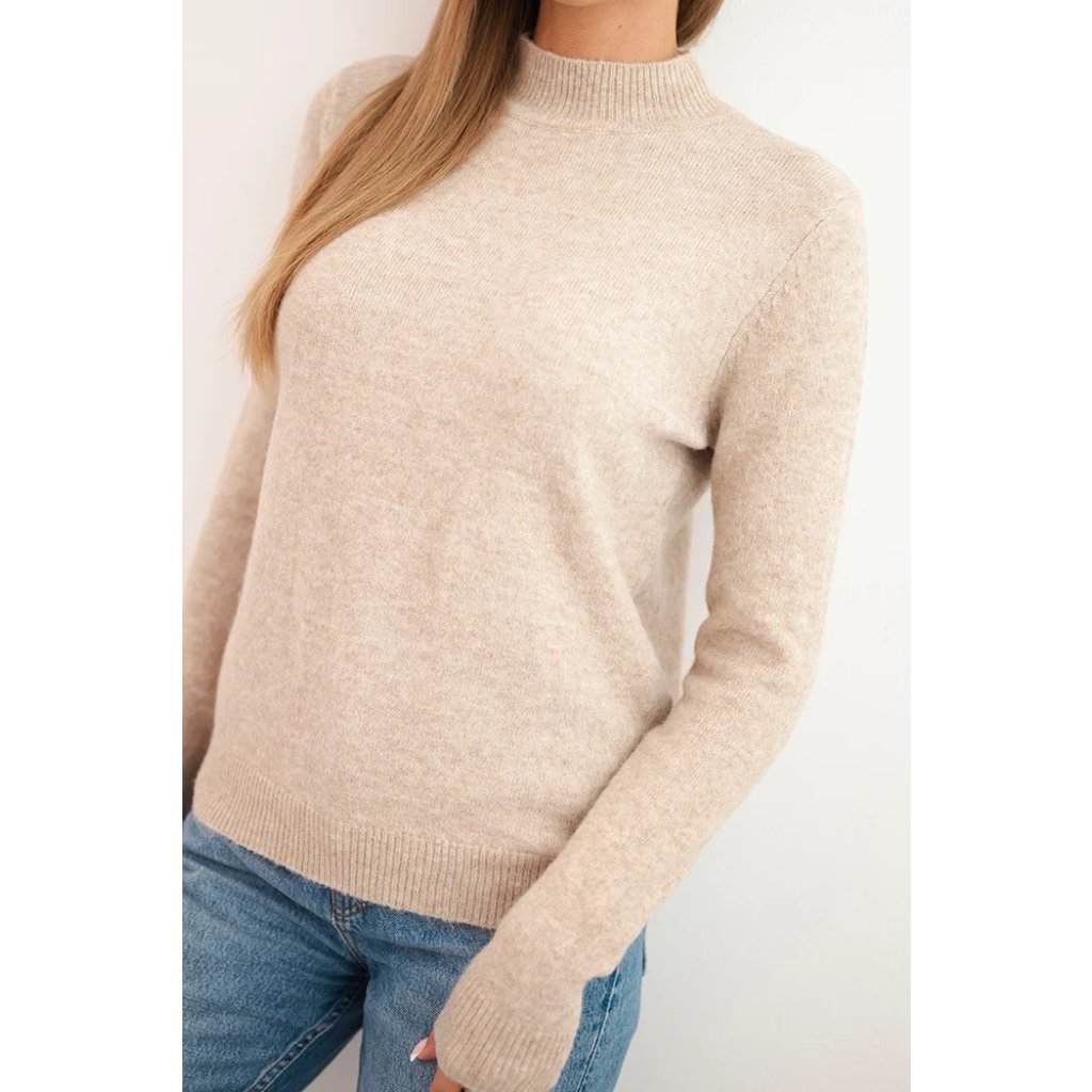 Dámsky sveter s polorolákom z mäkkej pleteniny tmavo béžový.