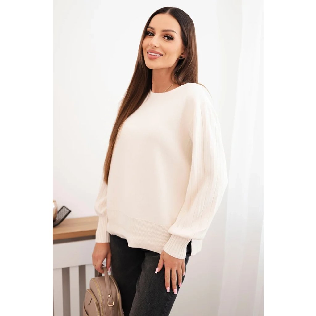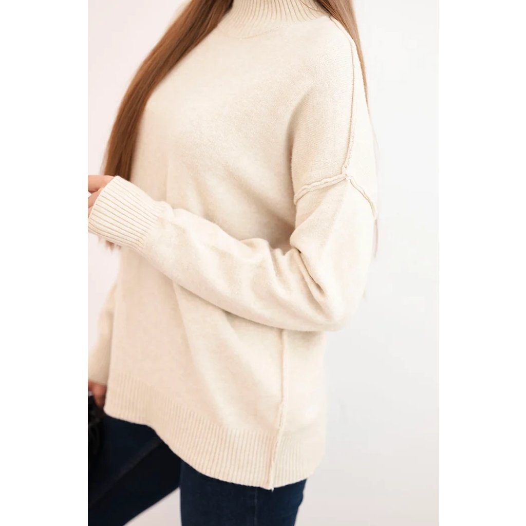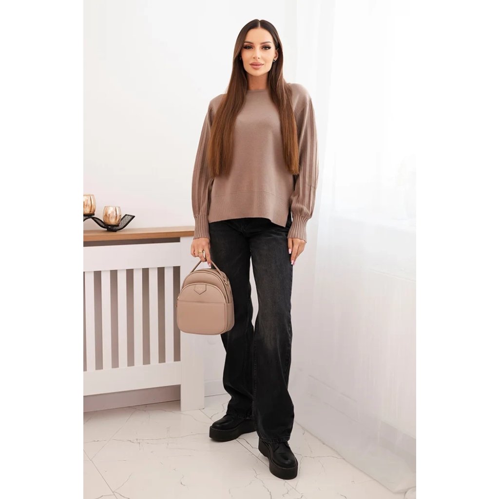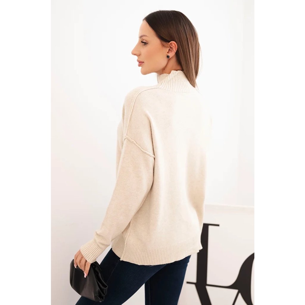 Dámsky svetrový viskózový s dlhým rukávom a rozparkom po bokoch béžový
