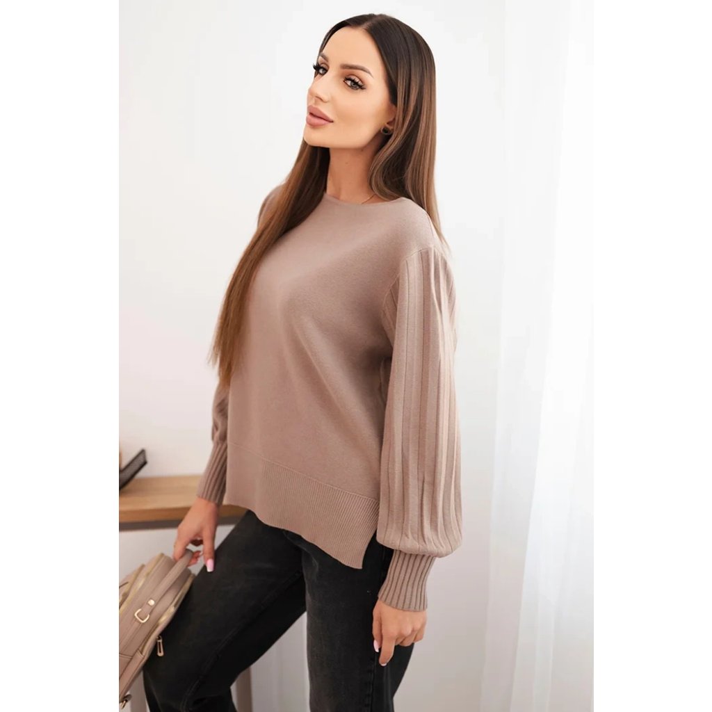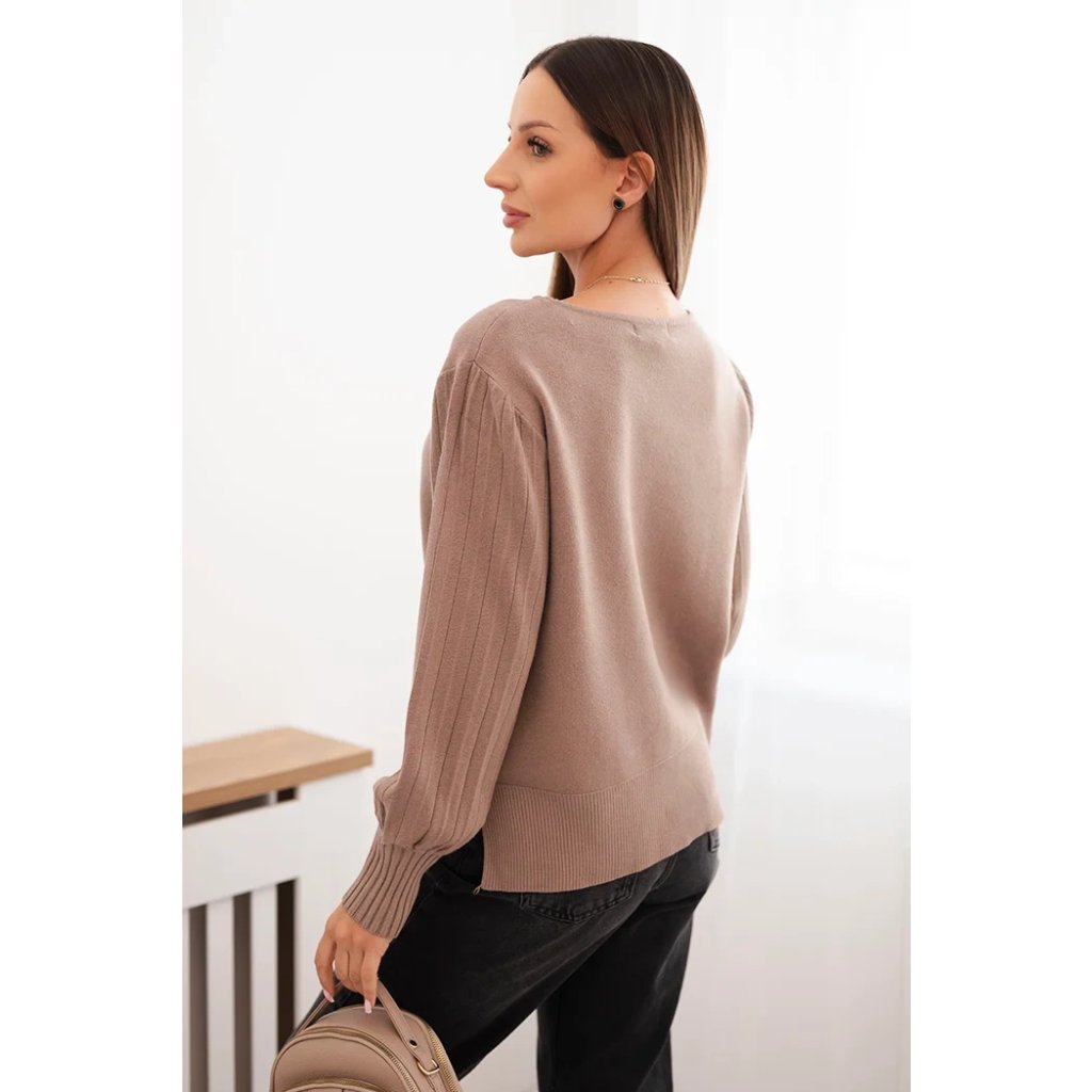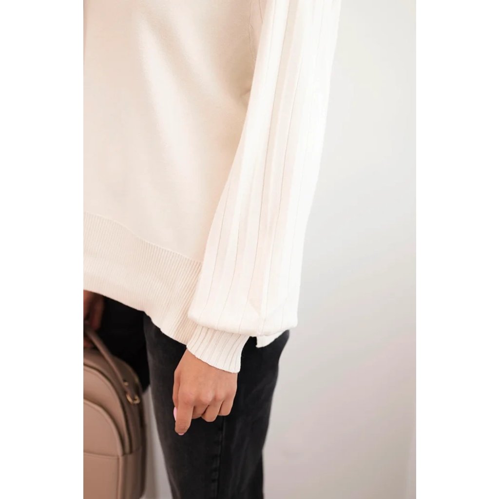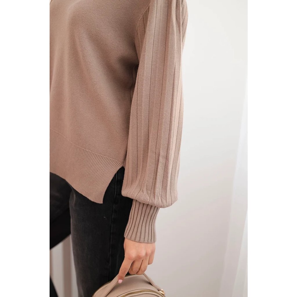 Dámsky svetrový viskózový s dlhým rukávom a rozparkom po bokoch béžový