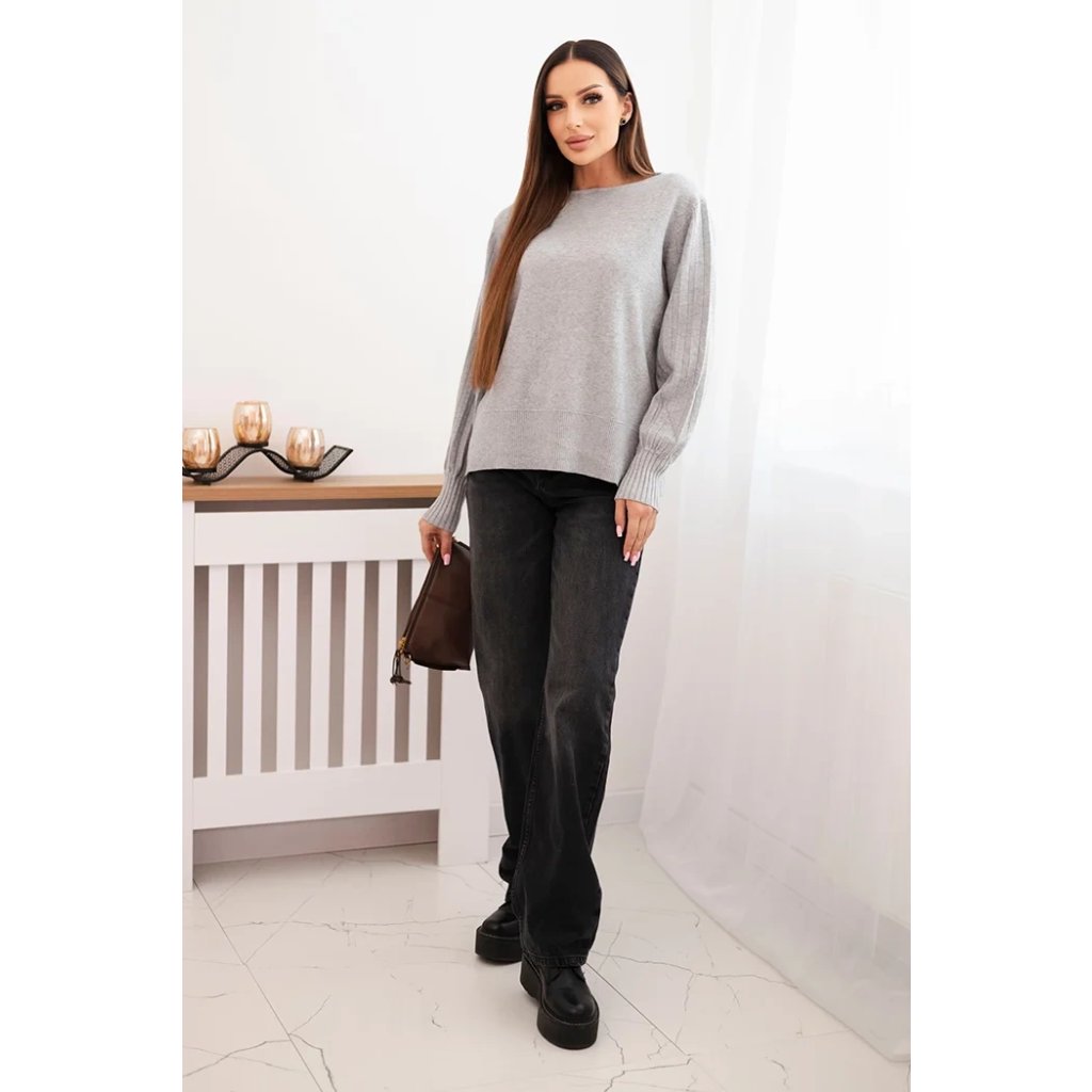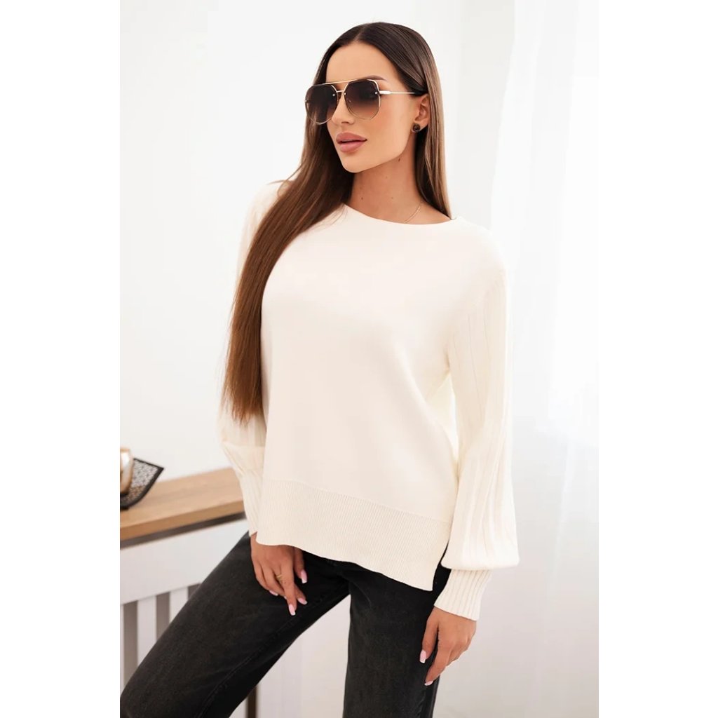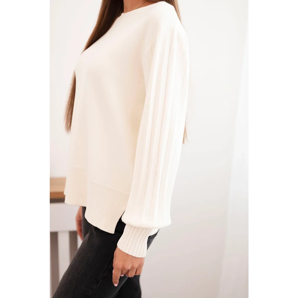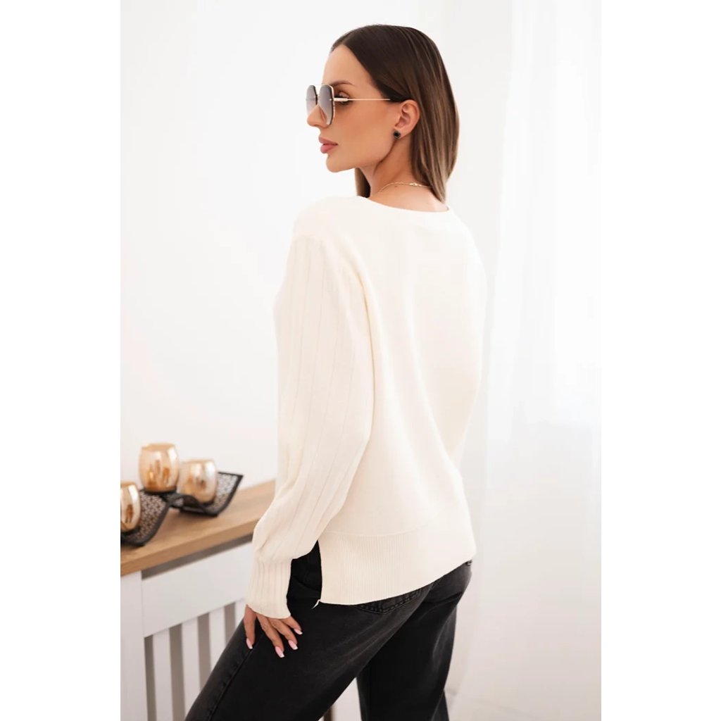 Dámsky svetrový viskózový s dlhým rukávom a rozparkom po bokoch béžový