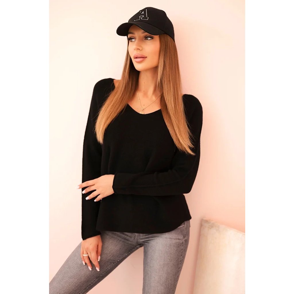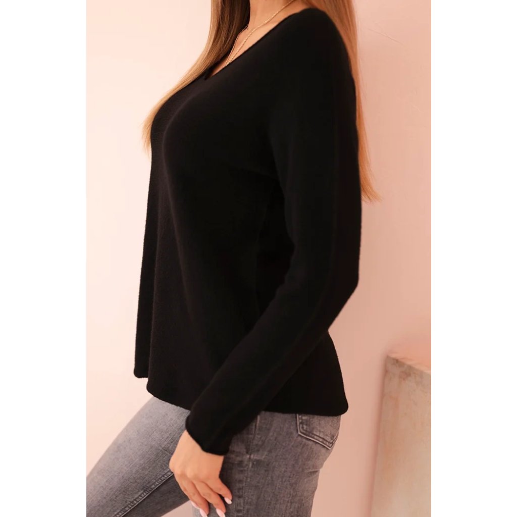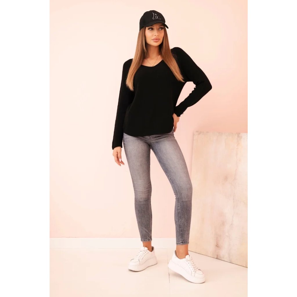 Dámsky viskózový sveter s dlhým rukávom a okrúhlym výstrihom čierny