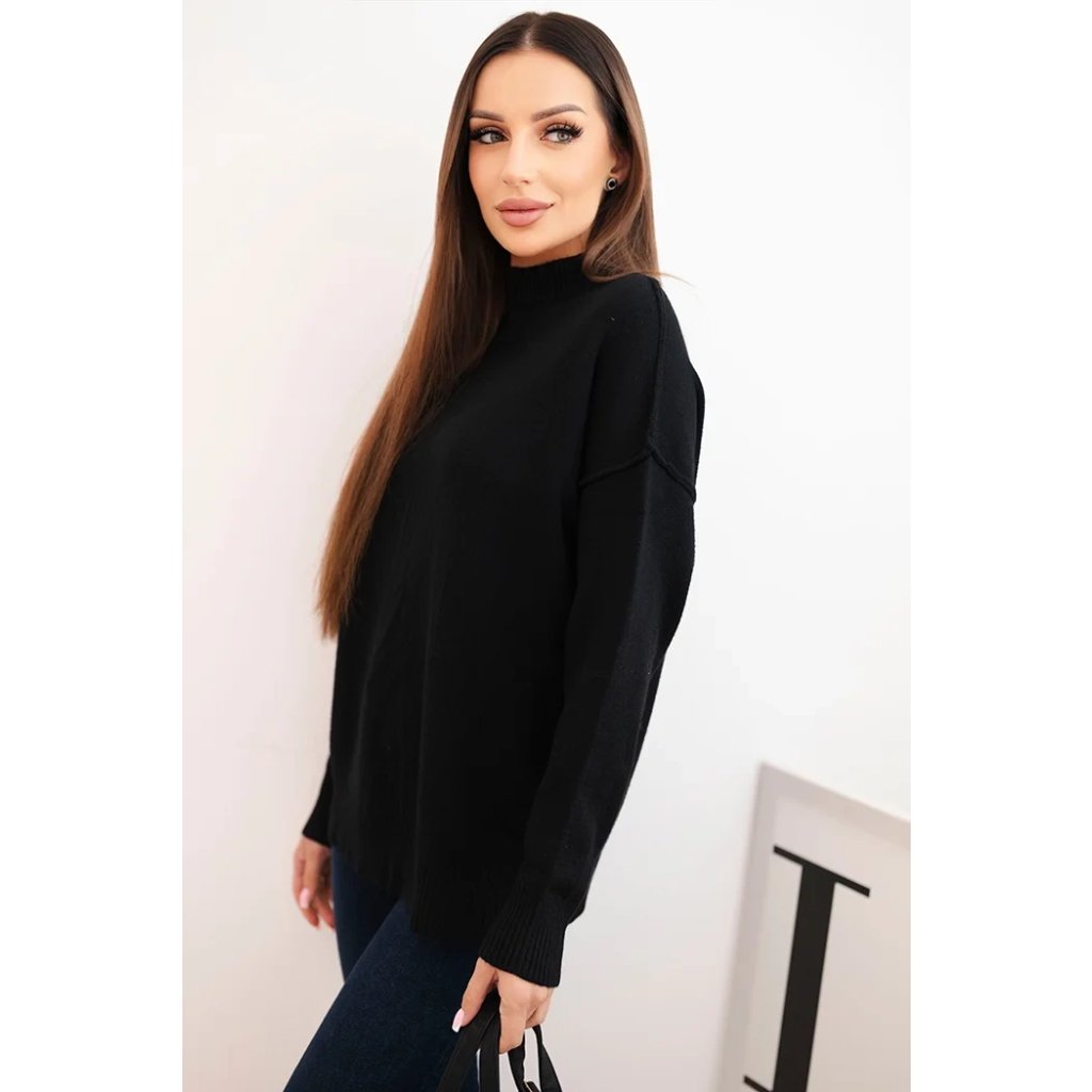 Model má polorolák, ktorý jemne obopína krk a dodáva celku eleganciu. Rozparky po stranách dodávajú ľahkosť a spôsobujú, že sveter dobre ladí ako s džínsami, legínami, tak aj so sukňou.