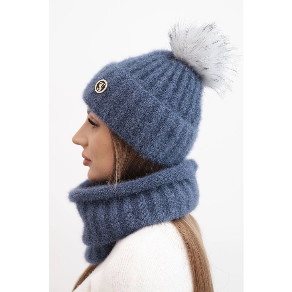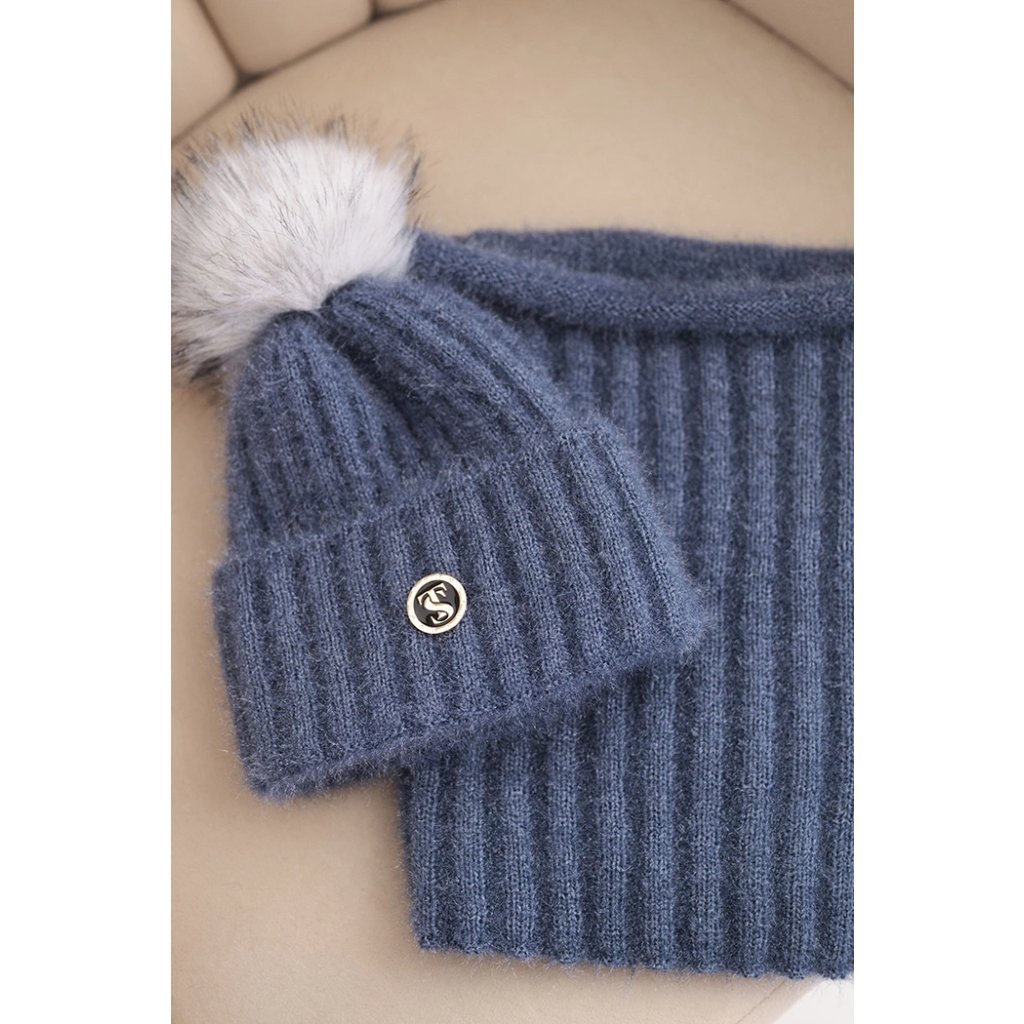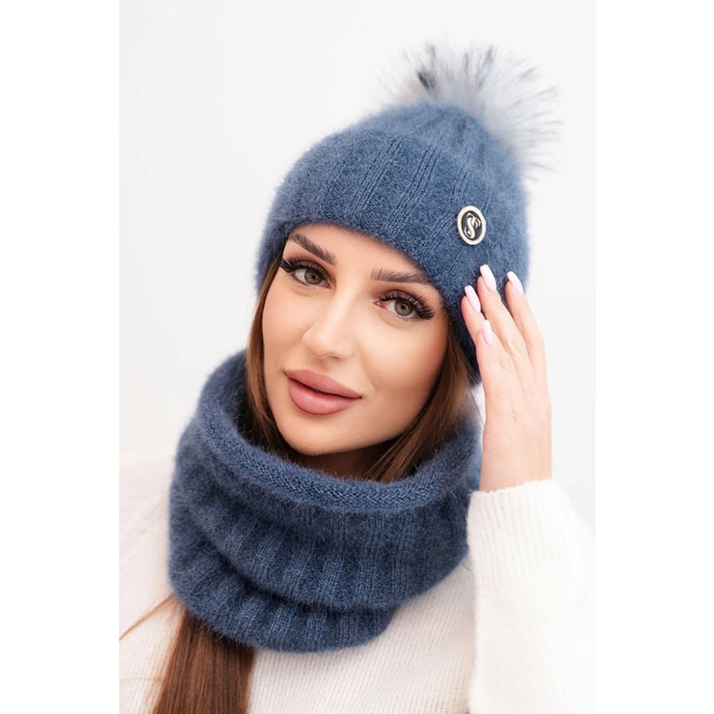 Dámsky zimný set s brmbolcom a rifľovým komínom