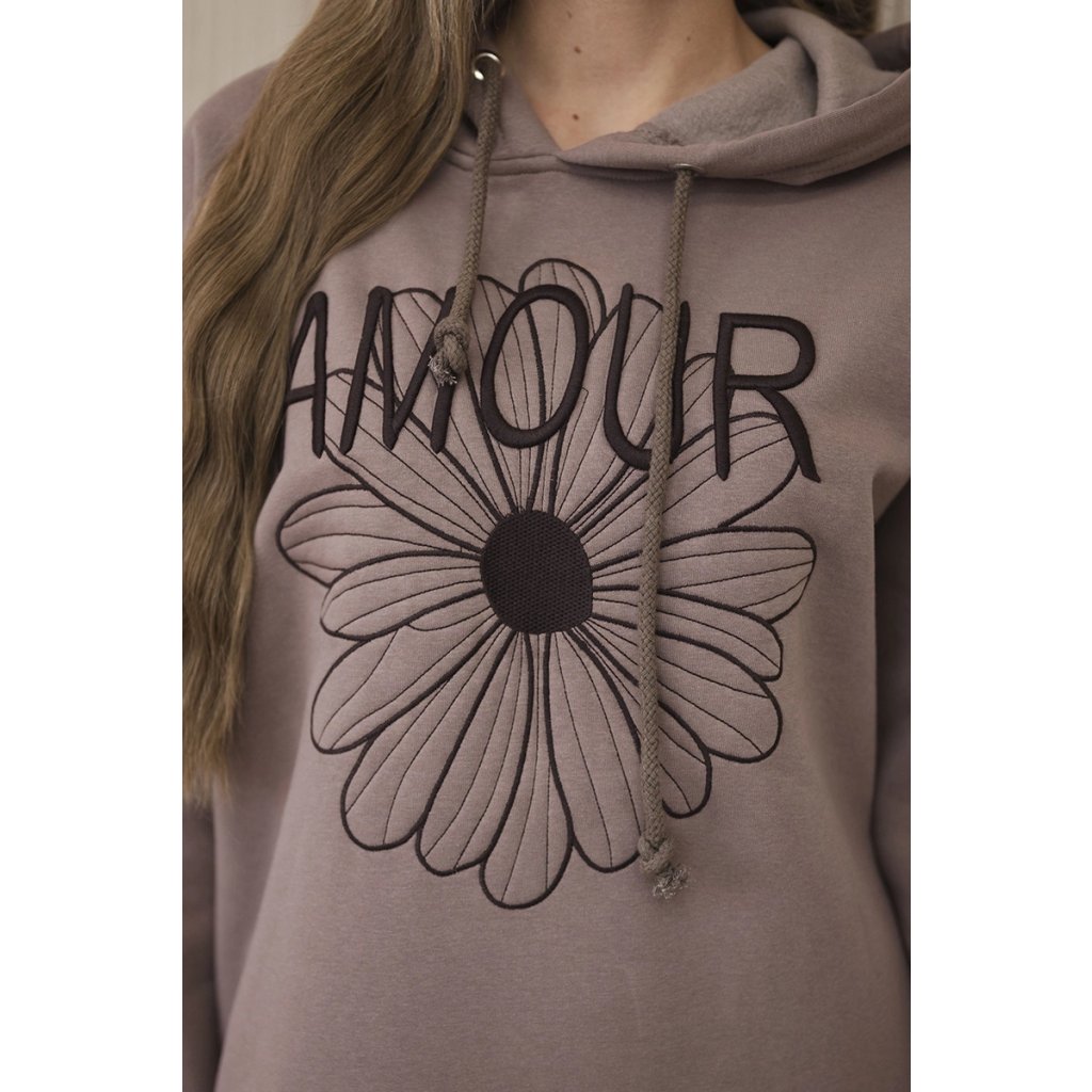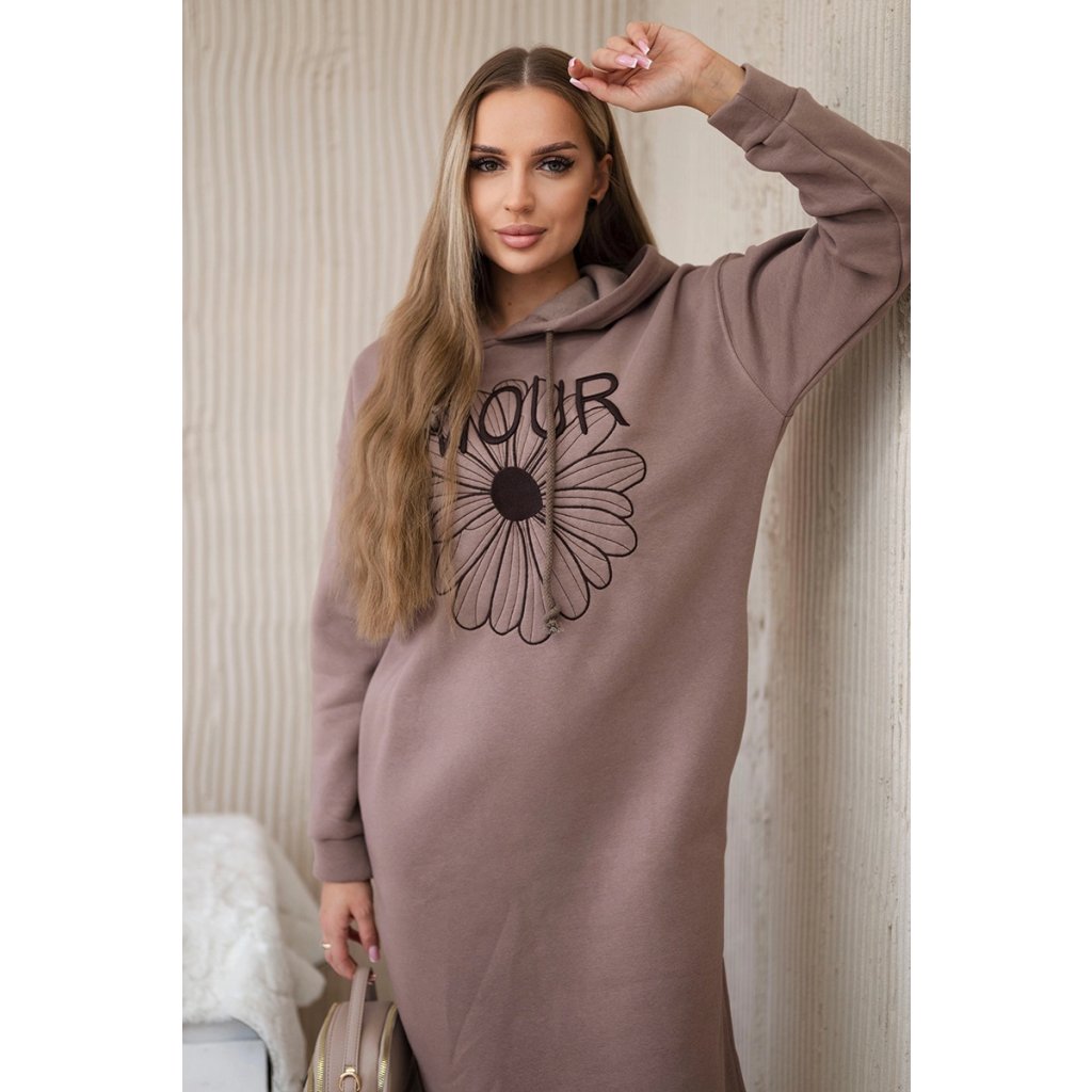 Dlhé zateplené šaty s výšivkou mocca
