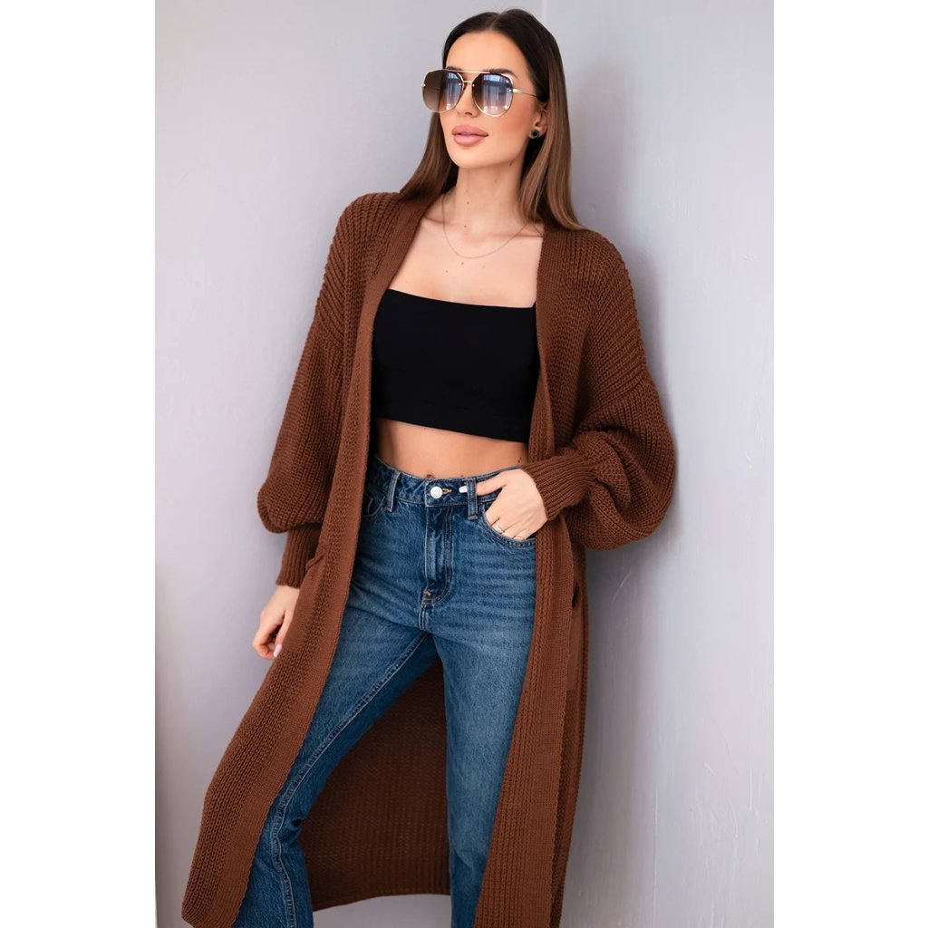 Dlhý taliansky sveter kardigán je esenciou komfortu a štýlu. Vyrobený z mäkkých a na dotyk príjemných vlákien, tento sveter je ideálnym spoločníkom na chladnejšie dni. Jeho predĺžený strih mu dodáva eleganciu, pričom si zachováva nenútený charakter. Sveter pochádzajúci z Talianska spája dokonalé remeslo a taliansky vkus. Jeho jemné spracovanie mu dodáva jedinečný šarm. Vďaka svojej dĺžke je tento sveter vhodný na nosenie ako doma, tak aj ako súčasť dennej štýlizácie. Jeho všestrannosť umožňuje nosenie ako ľahký kabát v teplejších dňoch, tak aj ako ochrannú vrstvu pred chladom pod hrubším kabátom. Dlhý sveter je nielen oblečením, ale aj prejavom talianskej elegancie a starostlivosťou o pohodlie, ktorá určite zdôrazní individuálny štýl každého, kto ho nosí. Veľkosť je univerzálna a bude vhodná pre dámy vo veľkostiach M, L, XL.