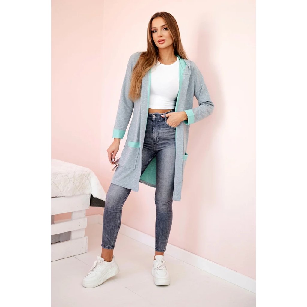 Predstavujeme vám prehoz s kapucňou a vreckami. Prehoz je dvojfarebný. Prehoz má dole rozparky na bokoch. Prehoz je vyrobený z kvalitného zatepleného materiálu. Veľkosť je univerzálna a bude vhodná pre dámy vo veľkostiach S, M a L