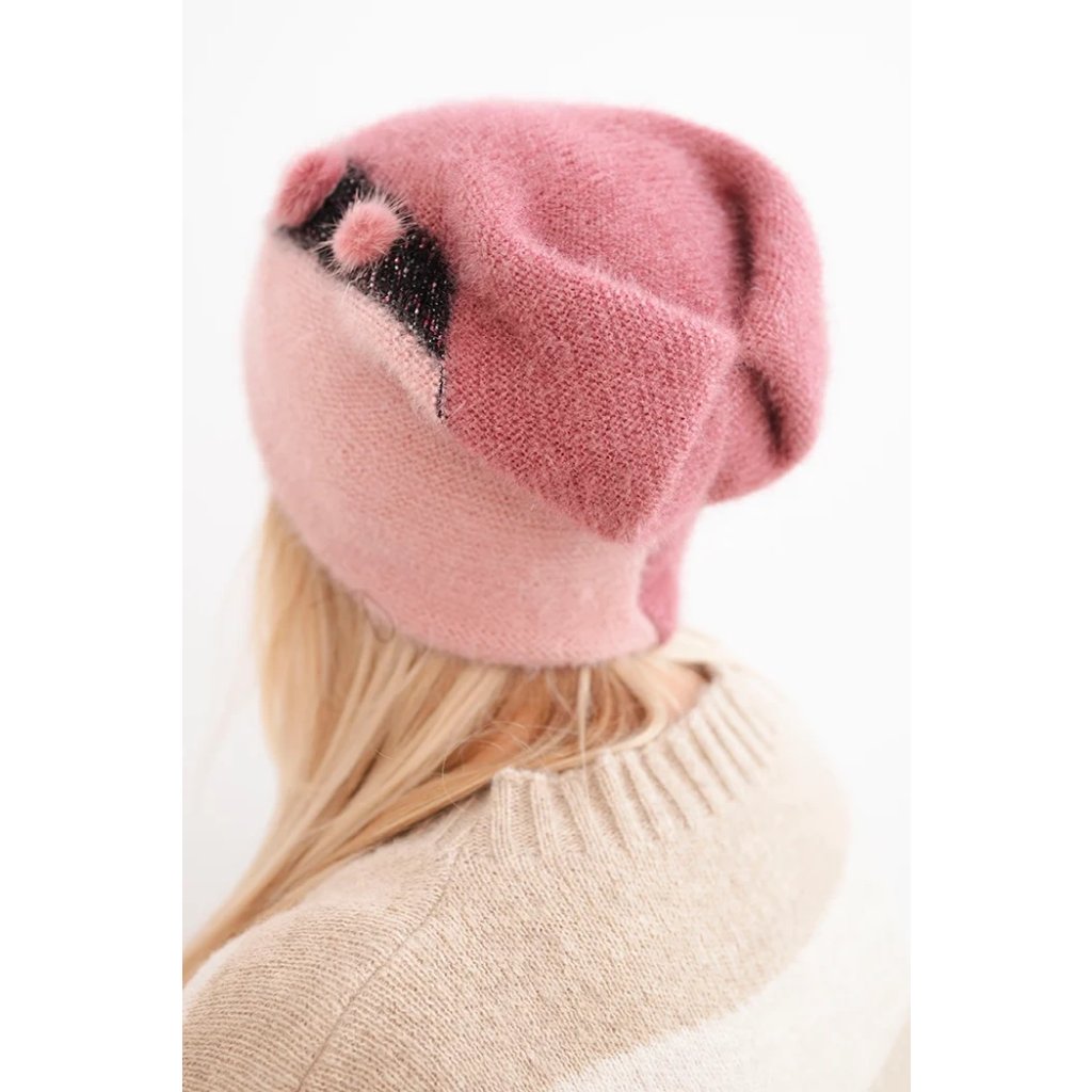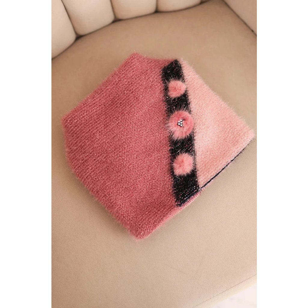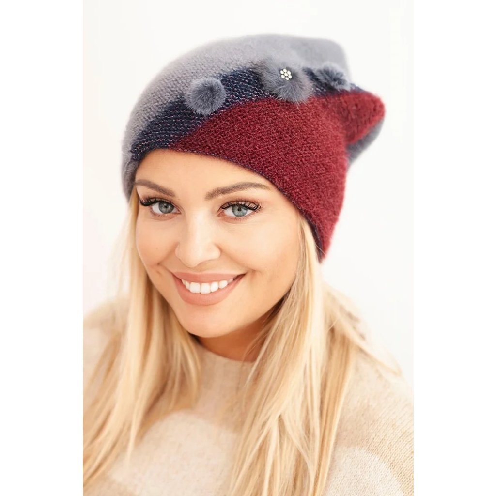 Elegantná dámska čiapka s krásnymi detailmi – ideálna na chladné dni. Vyznačuje sa jemným, brokátovým pásom a tromi ozdobami z kožušiny s lesklými kryštálmi.
