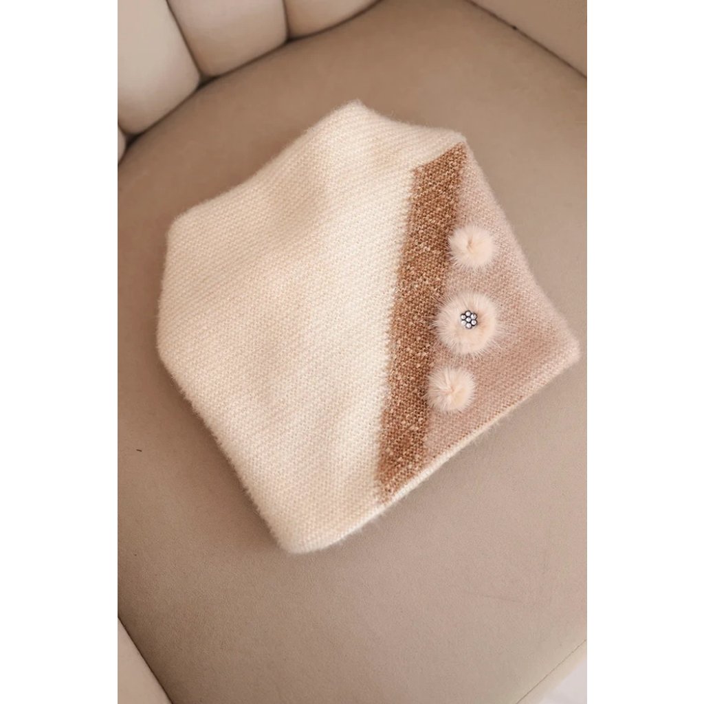 Elegantná dámska čiapka s kožušinovými ozdobami a brokátovým pásikom béžová