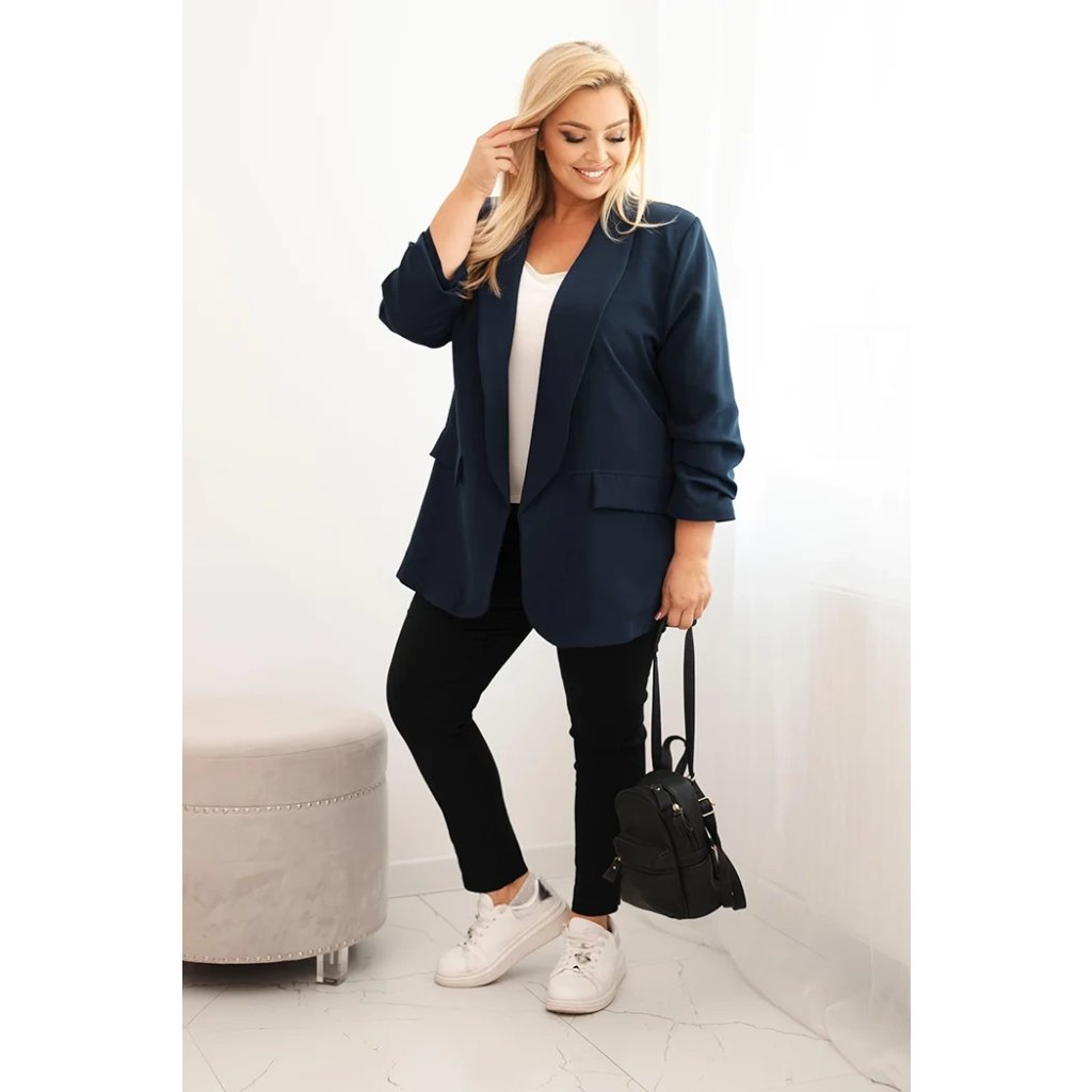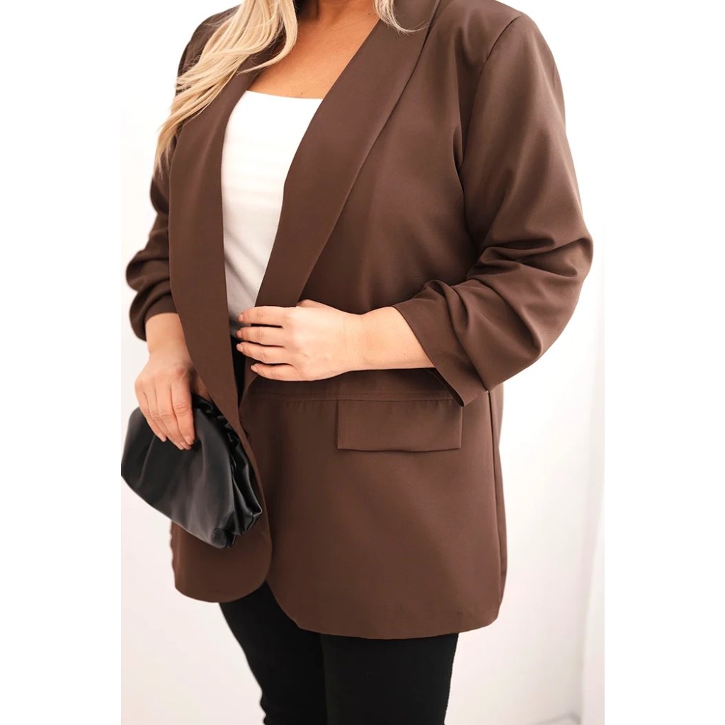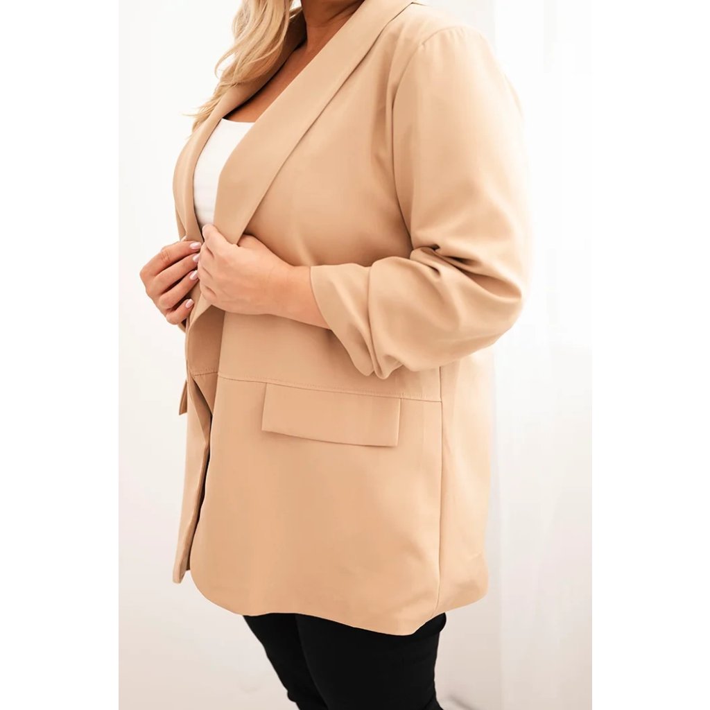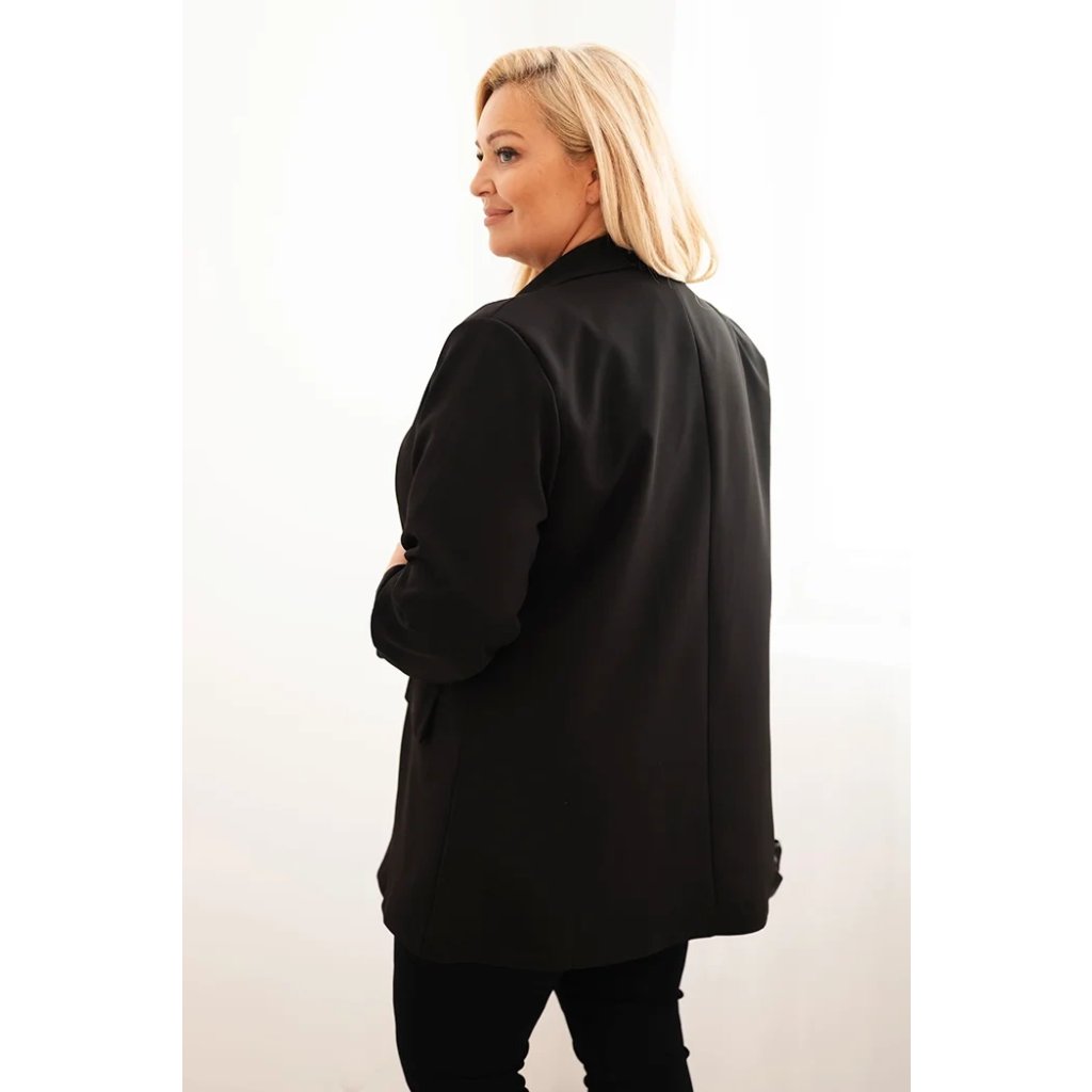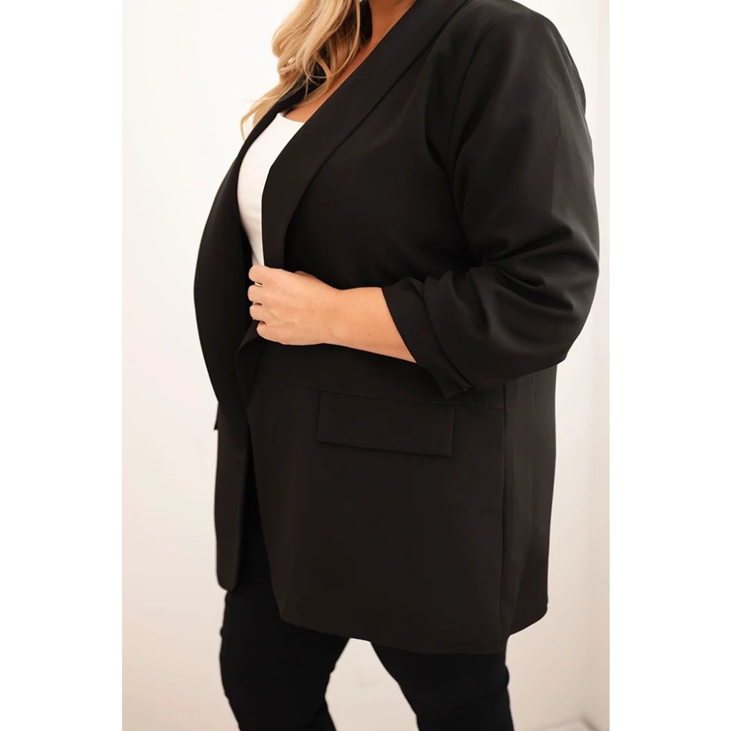 Štýlové dámske sako plus size je návrhom pre ženy, ktoré radi vyzerajú elegantne a zároveň sa cítia pohodlne. Strih typu oversize zabezpečuje voľnosť pohybu, a vďaka dĺžke dosahujúcej pod boky, model krásne sedí na postave, zvýrazňujúc jej prednosti.
