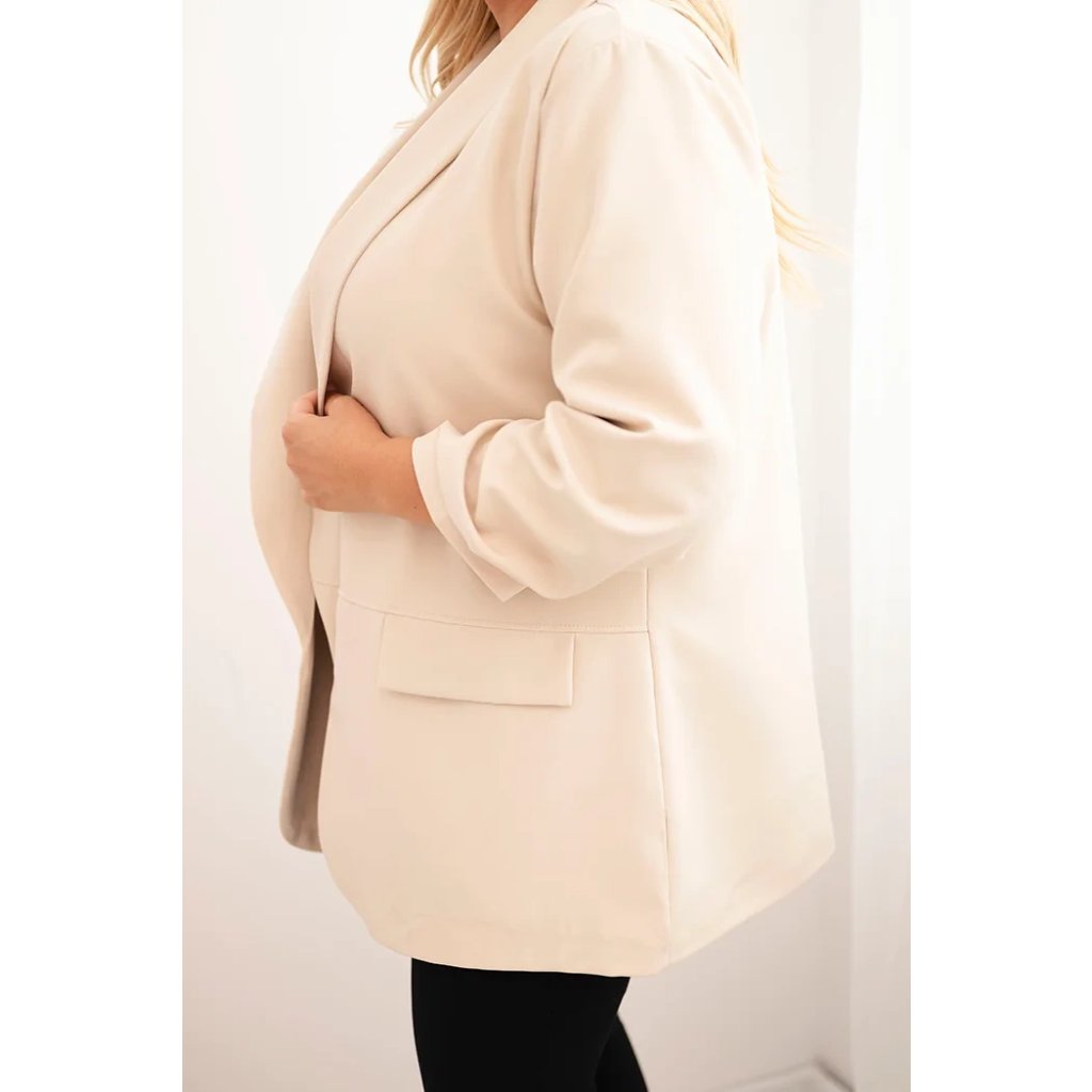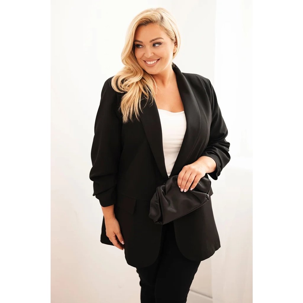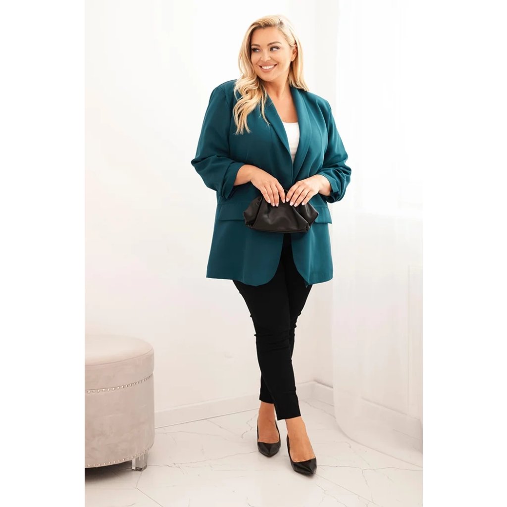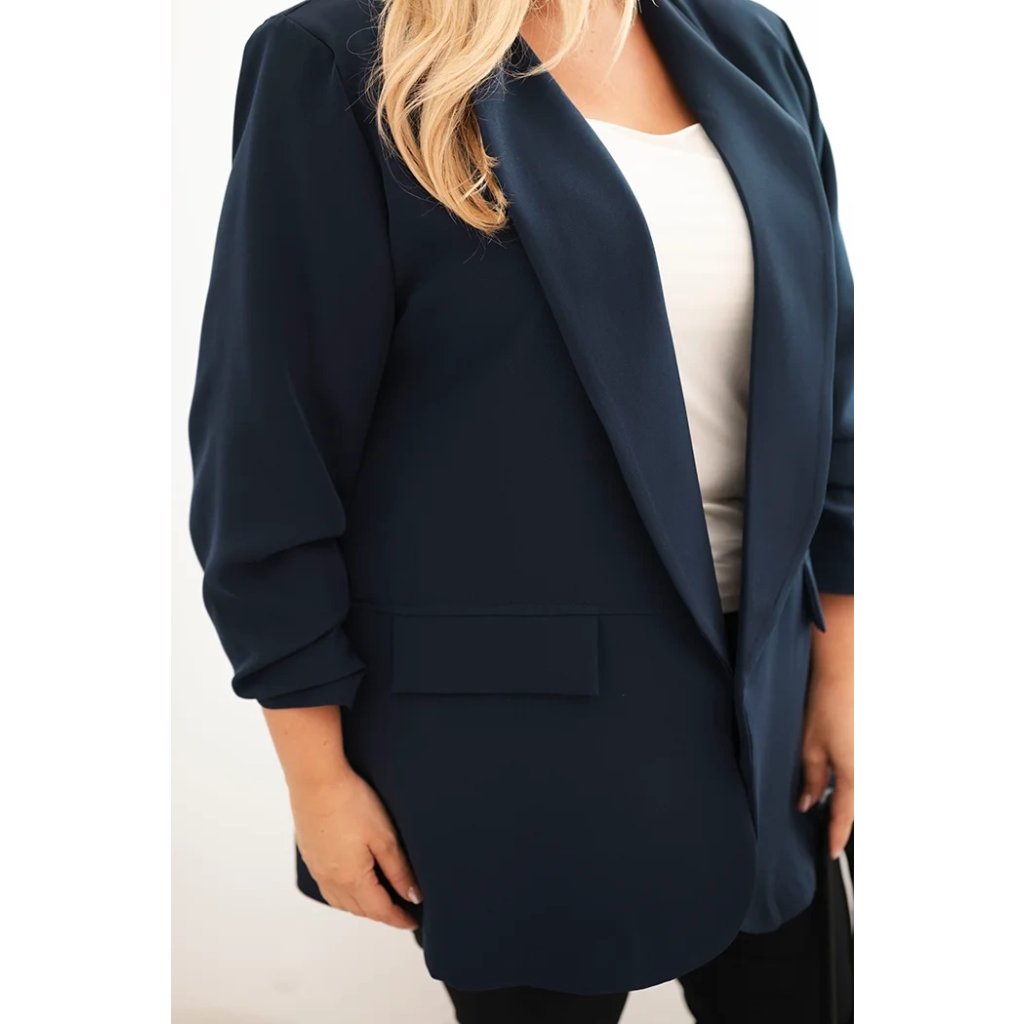 Štýlové dámske sako plus size je návrhom pre ženy, ktoré radi vyzerajú elegantne a zároveň sa cítia pohodlne. Strih typu oversize zabezpečuje voľnosť pohybu, a vďaka dĺžke dosahujúcej pod boky, model krásne sedí na postave, zvýrazňujúc jej prednosti.