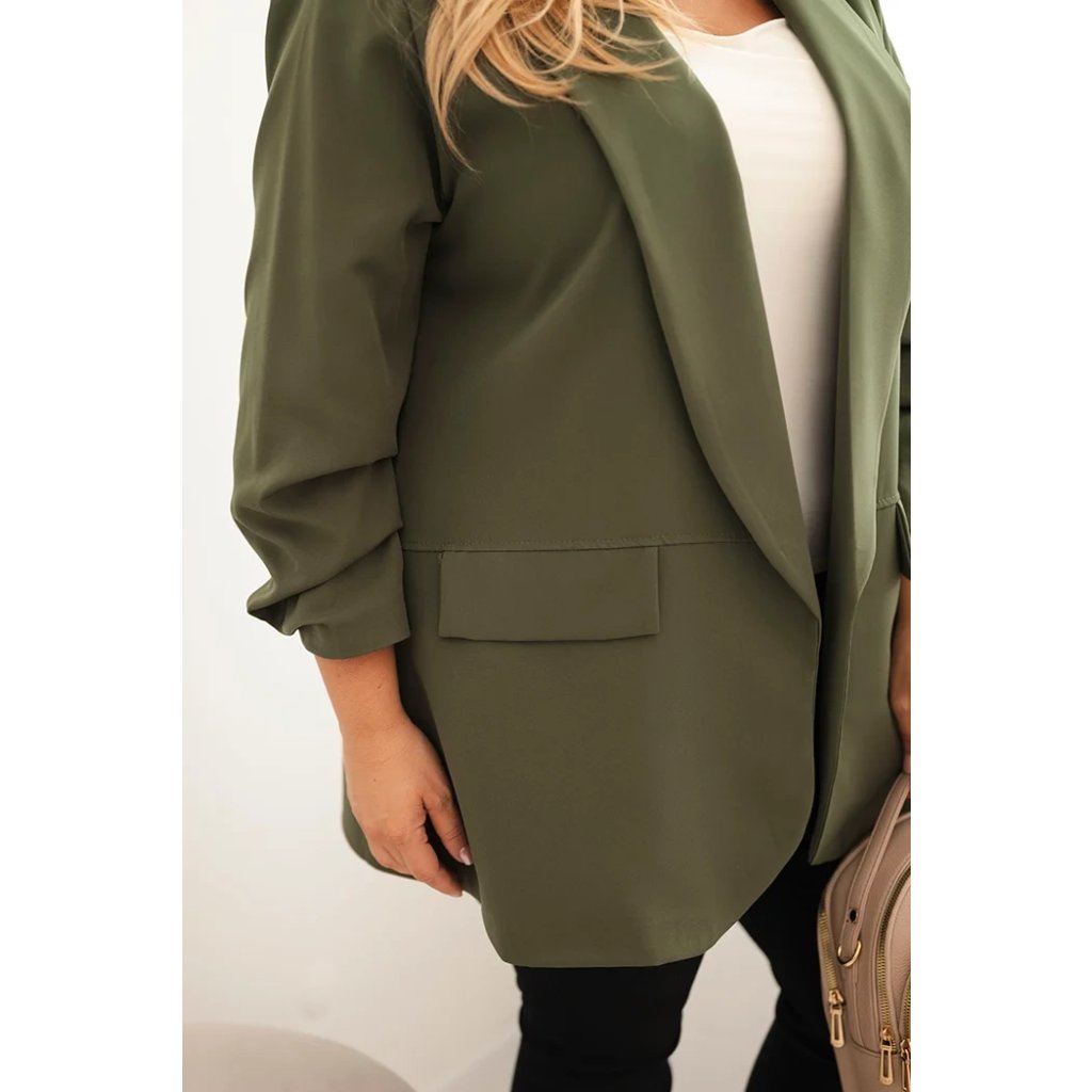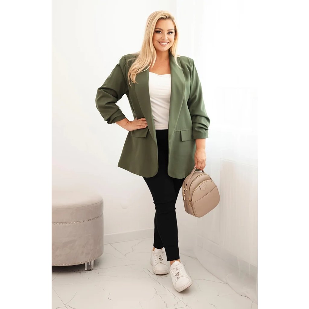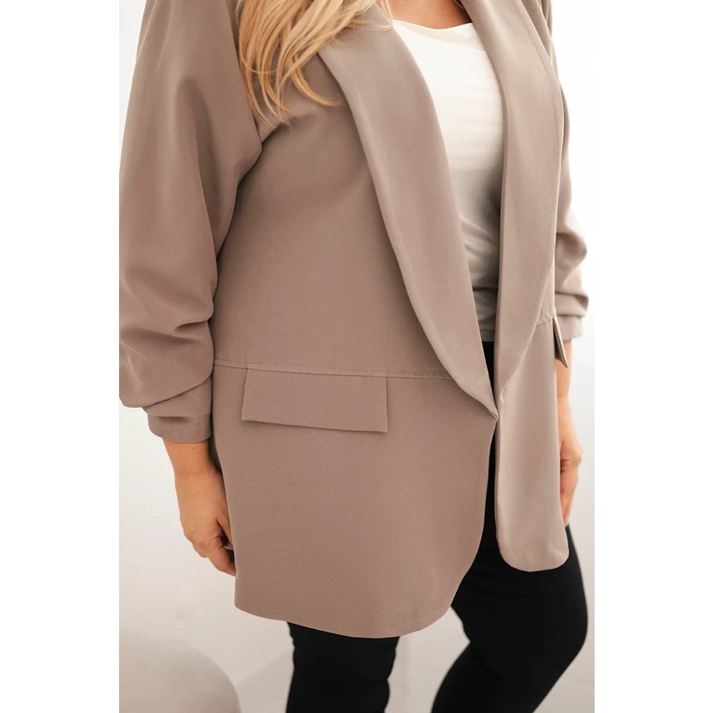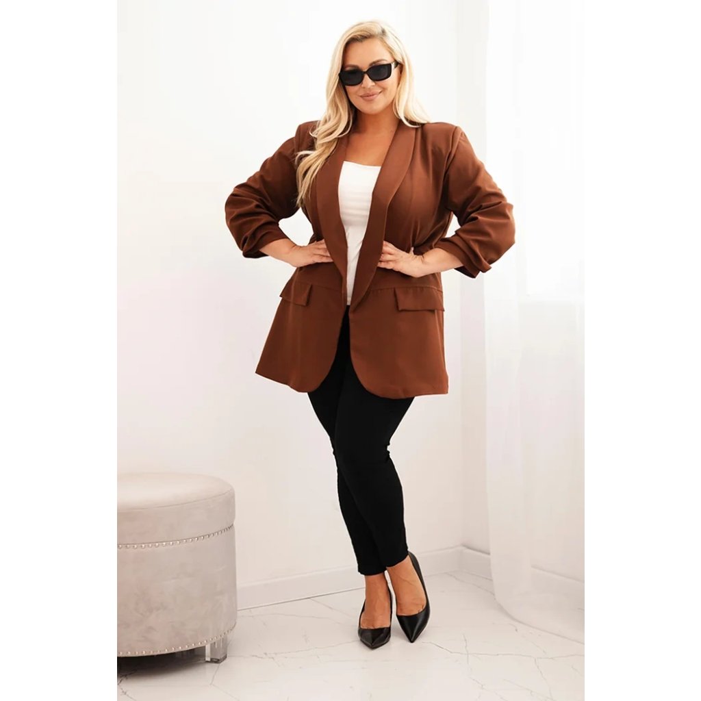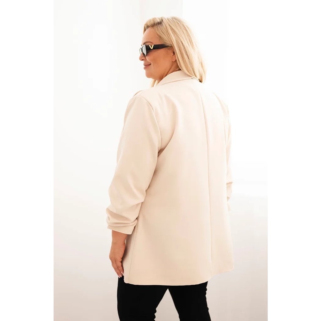 Štýlové dámske sako plus size je návrhom pre ženy, ktoré radi vyzerajú elegantne a zároveň sa cítia pohodlne. Strih typu oversize zabezpečuje voľnosť pohybu, a vďaka dĺžke dosahujúcej pod boky, model krásne sedí na postave, zvýrazňujúc jej prednosti.