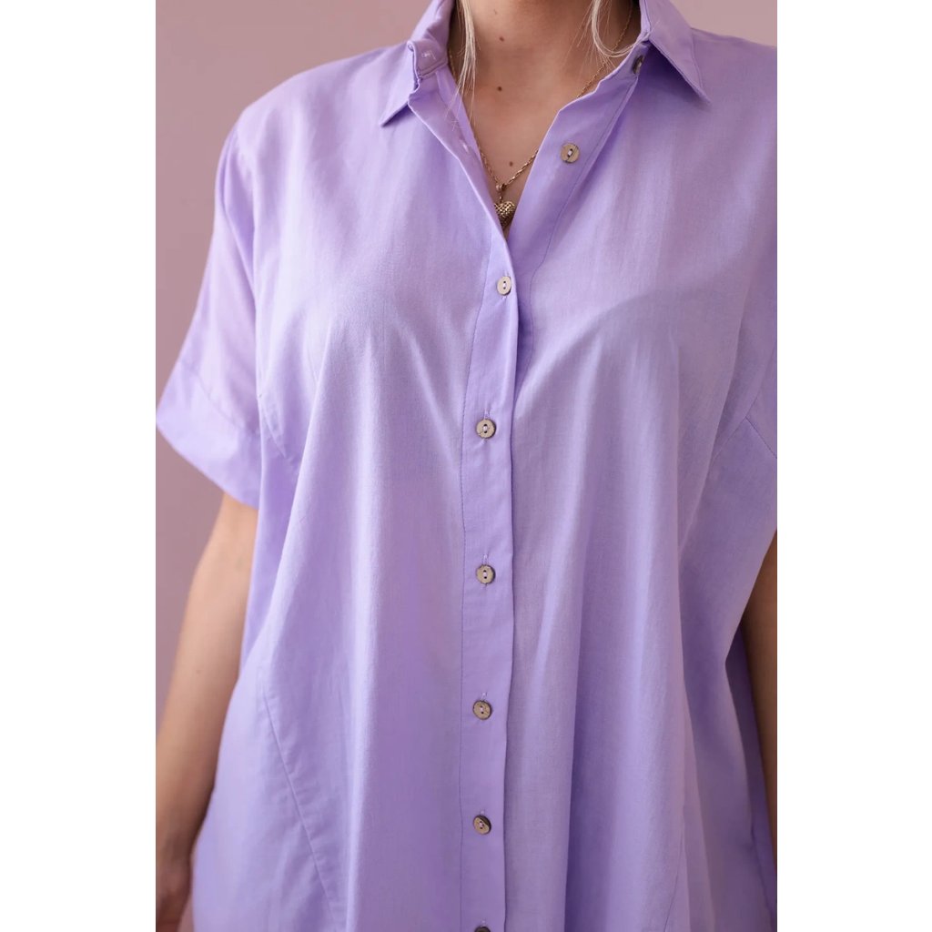 Fialová bavlnená košeľa s krátkym rukávom