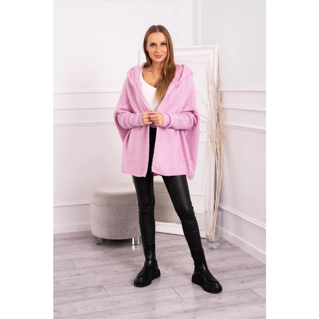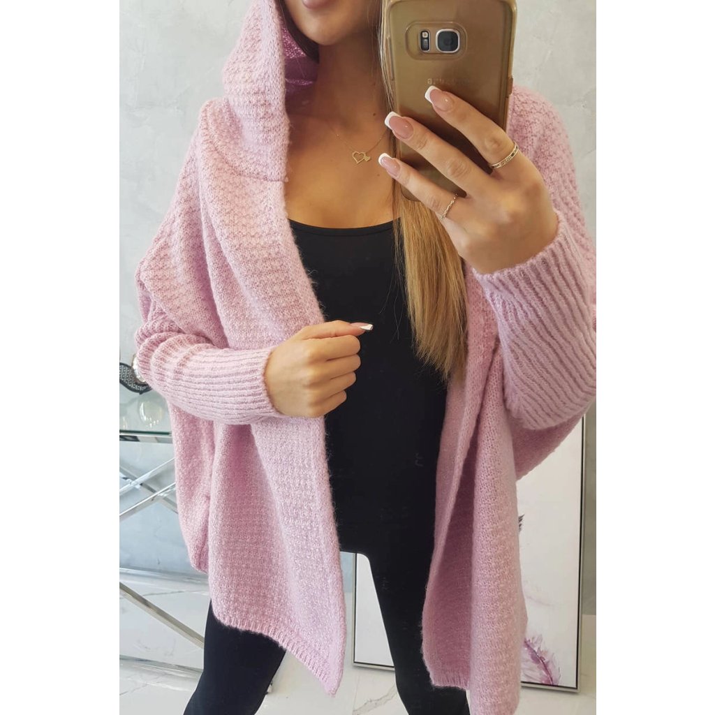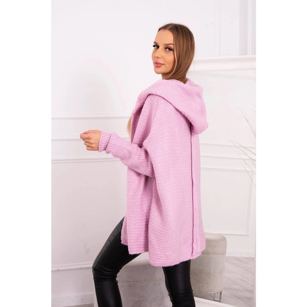 Fialový sveter s kapucňou a netopierími rukávmi