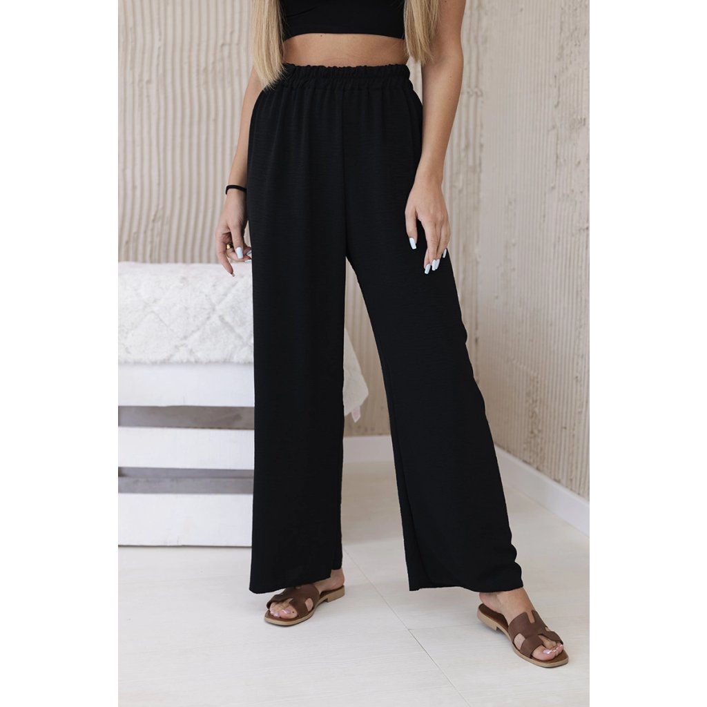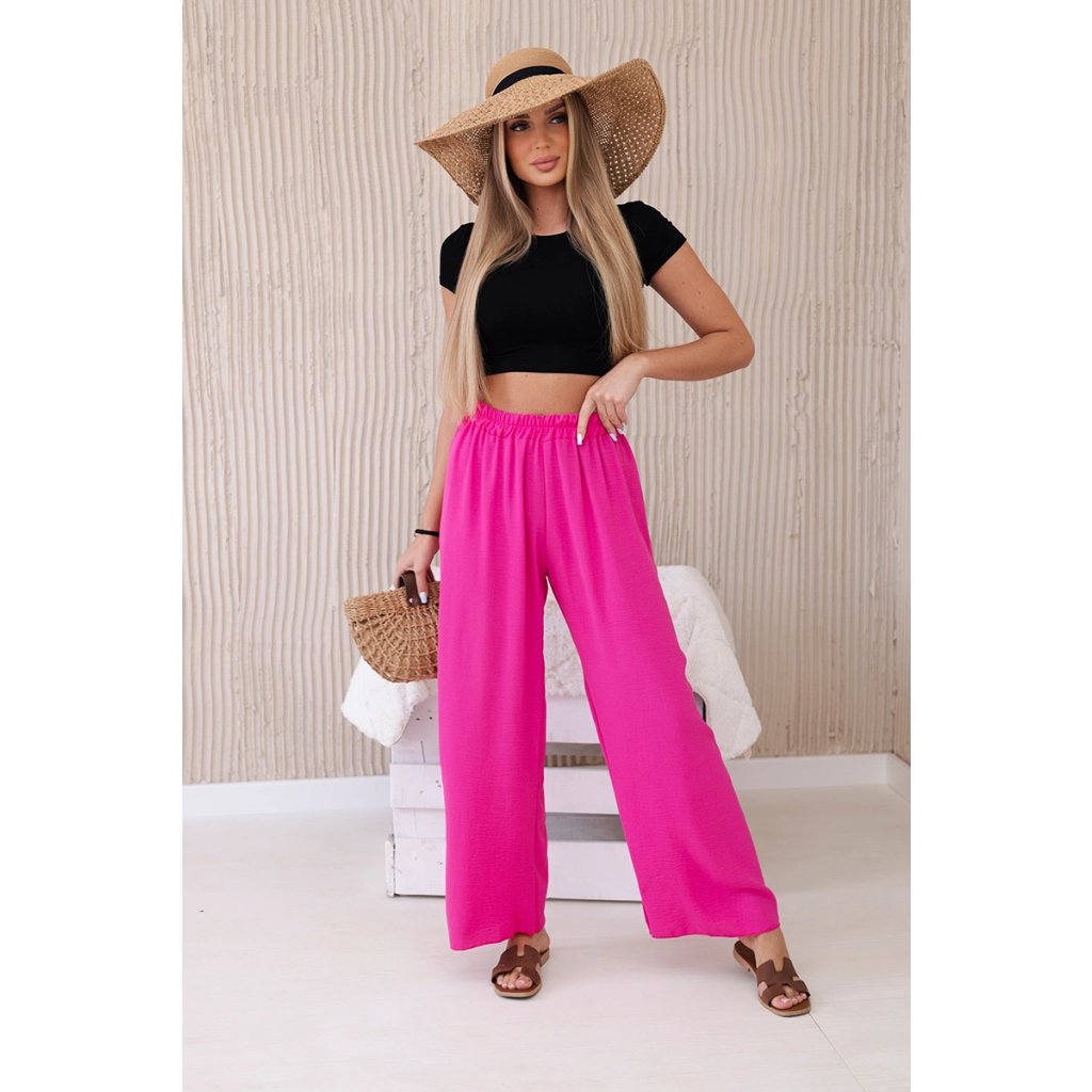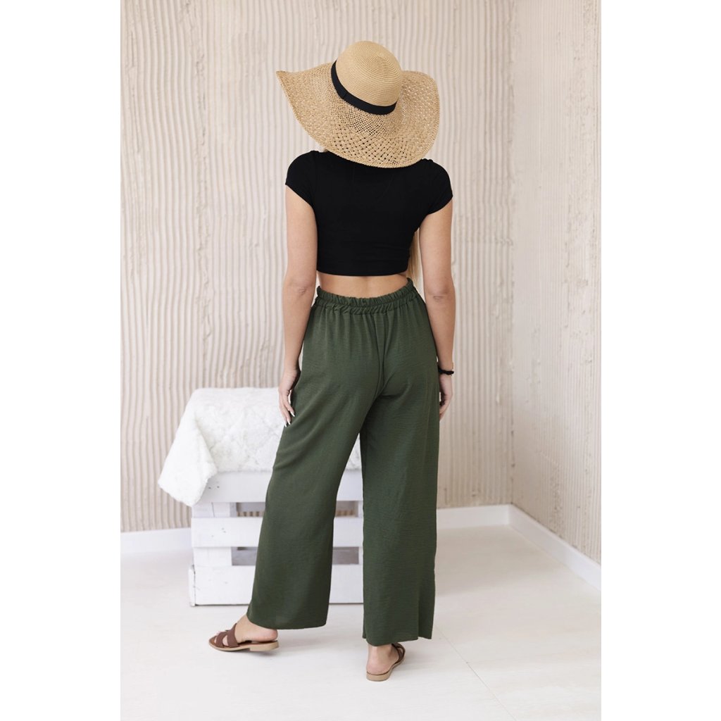 Nohavice s viskózou so širokou nohavicou sú výnimočným kúskom šatníka, ktorý spája komfort a eleganciu. Vyrobené z ľahkého a priedušného materiálu viskózy, tieto nohavice zaručujú nielen slobodu pohybu, ale aj pocit ľahkosti a sviežosti po celý deň. Široká nohavica dodáva nohaviciam charakteristický, voľný strih, ktorý je zároveň módny aj pohodlný. Tento prvok zabezpečuje, že nohavice vyzerajú mimoriadne štýlovo a efektně a dodávajú originalitu každému outfitu. Univerzálny dizajn nohavíc so širokou nohavicou zaručuje, že sa dokonale hodia na rôzne príležitosti a outfity. Môžete ich nosiť ako ku každodenným, ležérnym outfitom, tak aj k elegantnejším kombináciám na obchodné stretnutia alebo večerné pochôdzky. Nohavice s viskózou so širokou nohavicou sú ideálna voľba pre ženy, ktoré si cenia komfort a štýl. Vďaka svojmu univerzálnemu dizajnu a vysokej kvalite prevedenia sú tieto nohavice nepostrádateľnou súčasťou šatníka, ktorá skvele doplní každú kolekciu oblečenia. Veľkosť je univerzálna a bude vhodná pre dámy, ktoré nosia veľkosť S, M alebo L.
