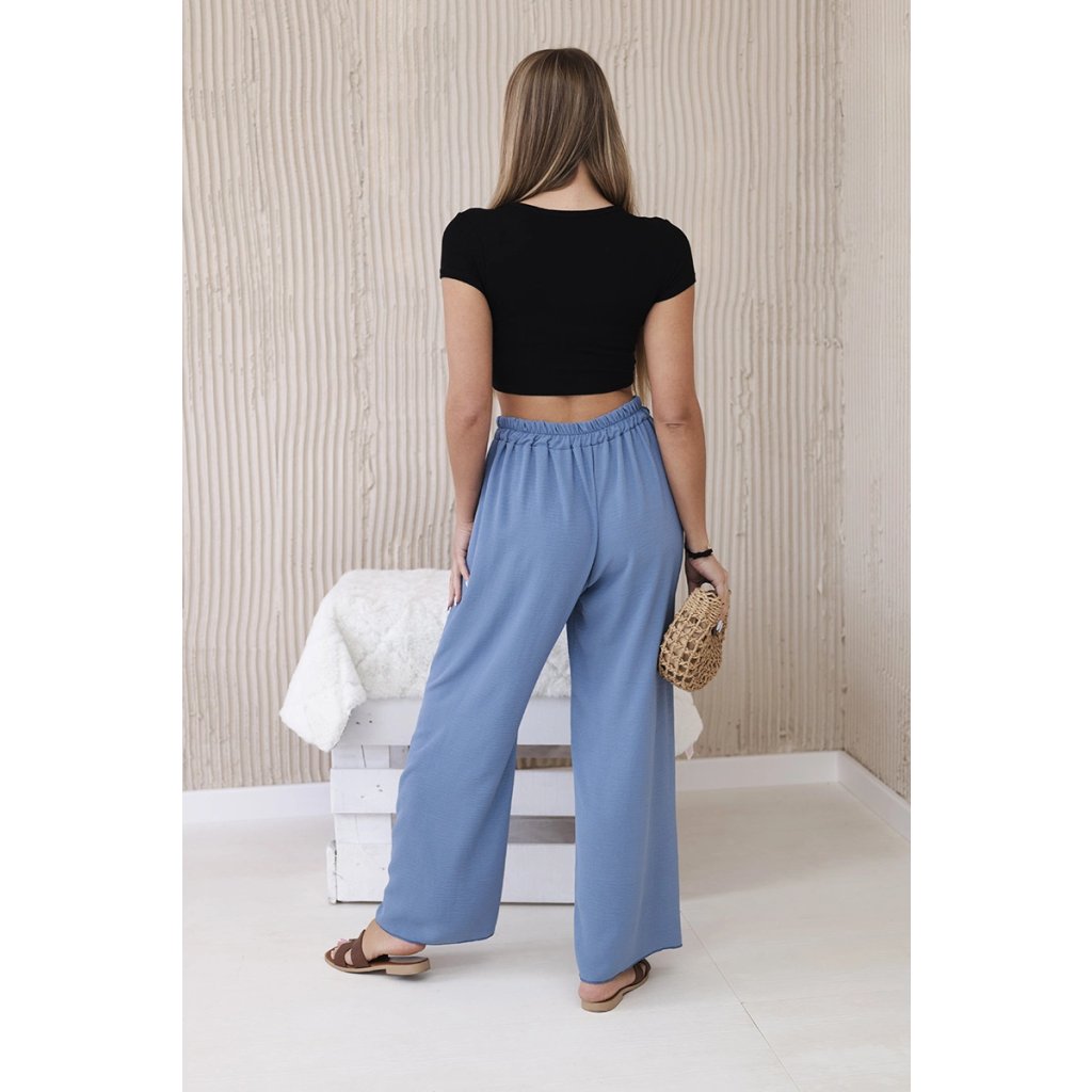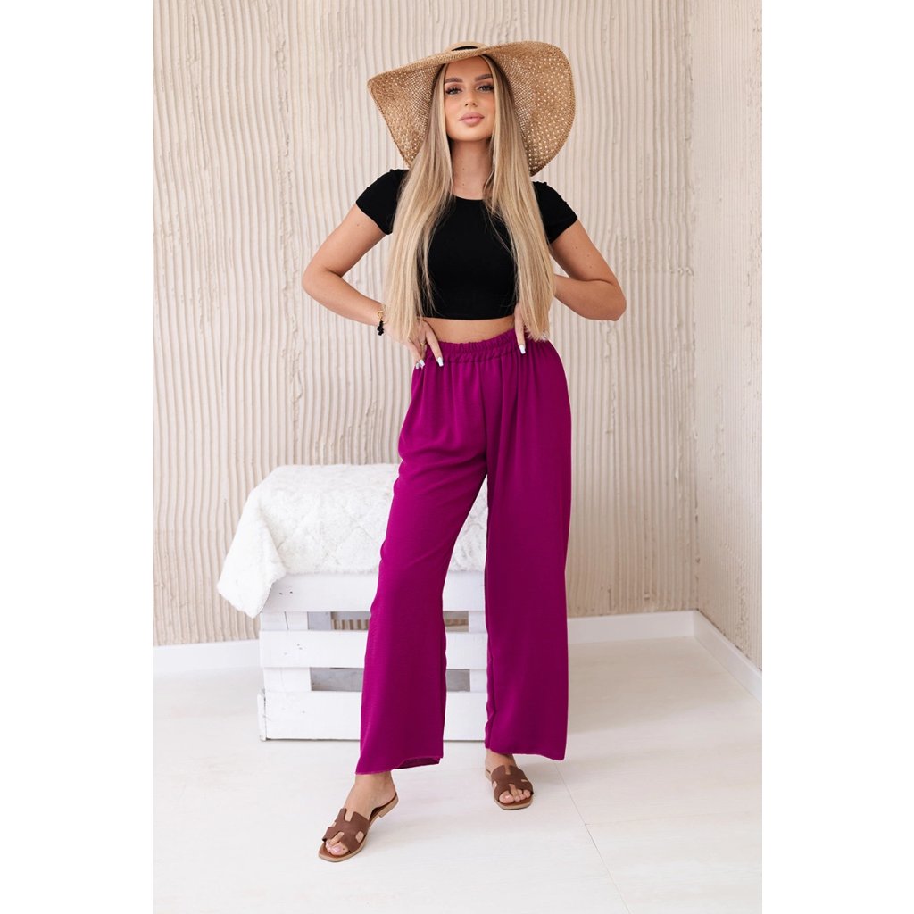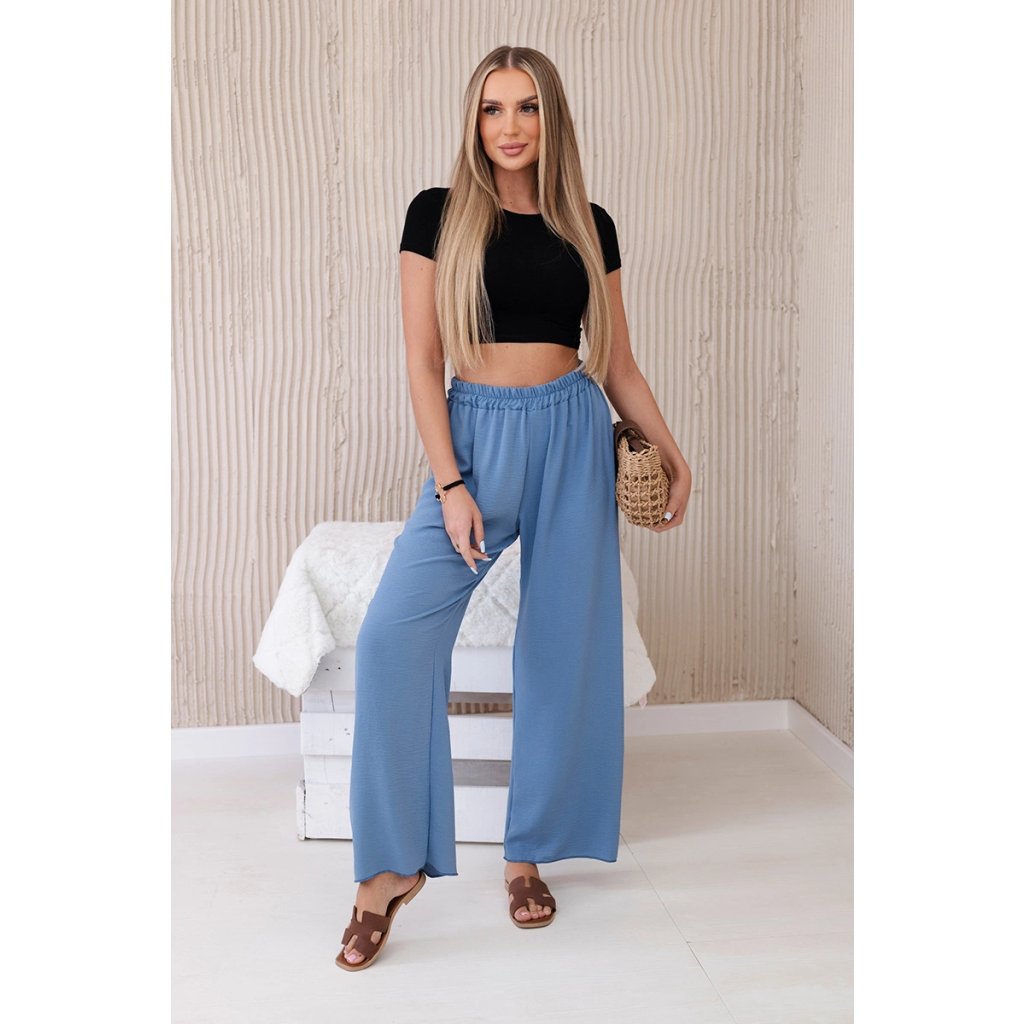 Nohavice s viskózou so širokou nohavicou sú výnimočným kúskom šatníka, ktorý spája komfort a eleganciu. Vyrobené z ľahkého a priedušného materiálu viskózy, tieto nohavice zaručujú nielen slobodu pohybu, ale aj pocit ľahkosti a sviežosti po celý deň. Široká nohavica dodáva nohaviciam charakteristický, voľný strih, ktorý je zároveň módny aj pohodlný. Tento prvok zabezpečuje, že nohavice vyzerajú mimoriadne štýlovo a efektně a dodávajú originalitu každému outfitu. Univerzálny dizajn nohavíc so širokou nohavicou zaručuje, že sa dokonale hodia na rôzne príležitosti a outfity. Môžete ich nosiť ako ku každodenným, ležérnym outfitom, tak aj k elegantnejším kombináciám na obchodné stretnutia alebo večerné pochôdzky. Nohavice s viskózou so širokou nohavicou sú ideálna voľba pre ženy, ktoré si cenia komfort a štýl. Vďaka svojmu univerzálnemu dizajnu a vysokej kvalite prevedenia sú tieto nohavice nepostrádateľnou súčasťou šatníka, ktorá skvele doplní každú kolekciu oblečenia. Veľkosť je univerzálna a bude vhodná pre dámy, ktoré nosia veľkosť S, M alebo L.