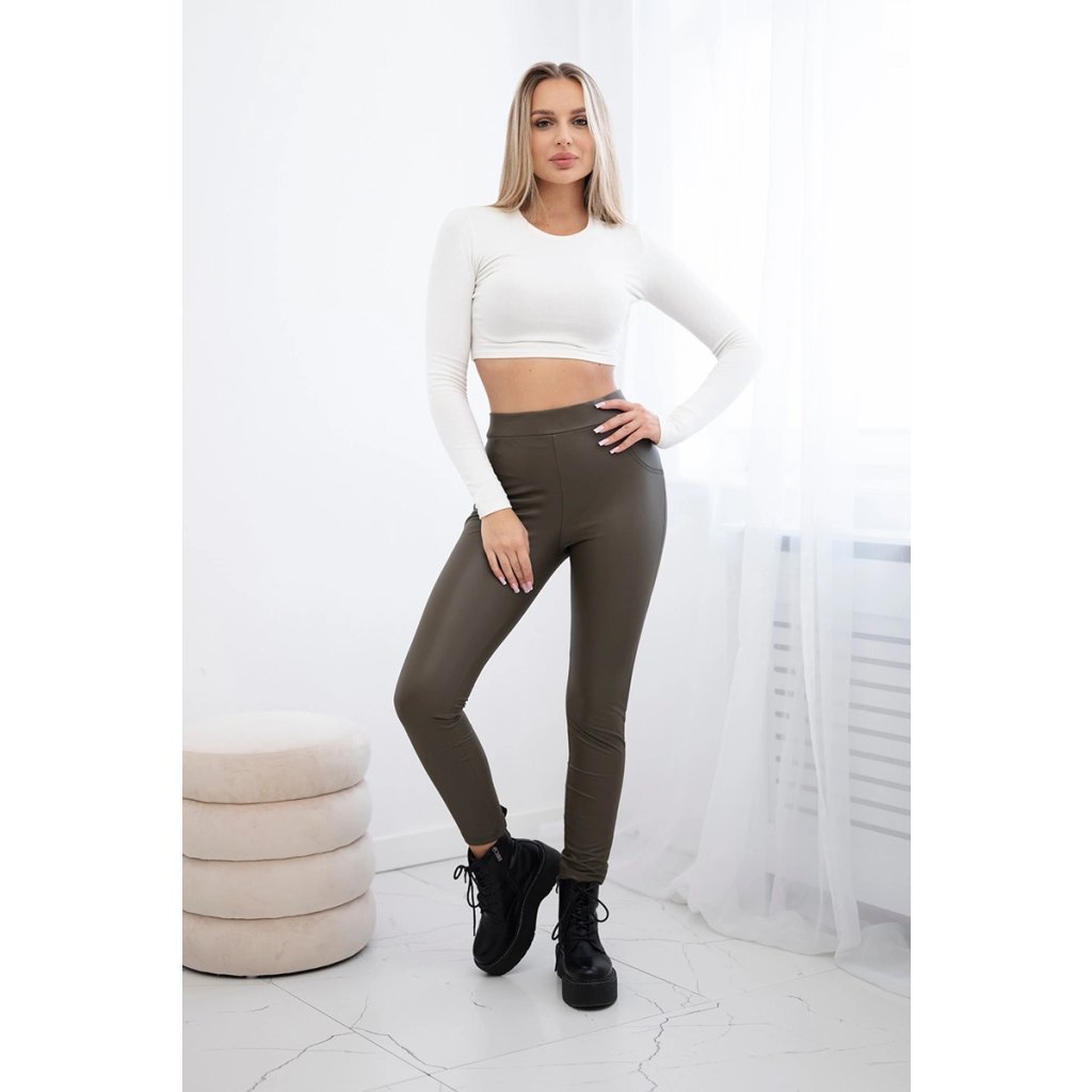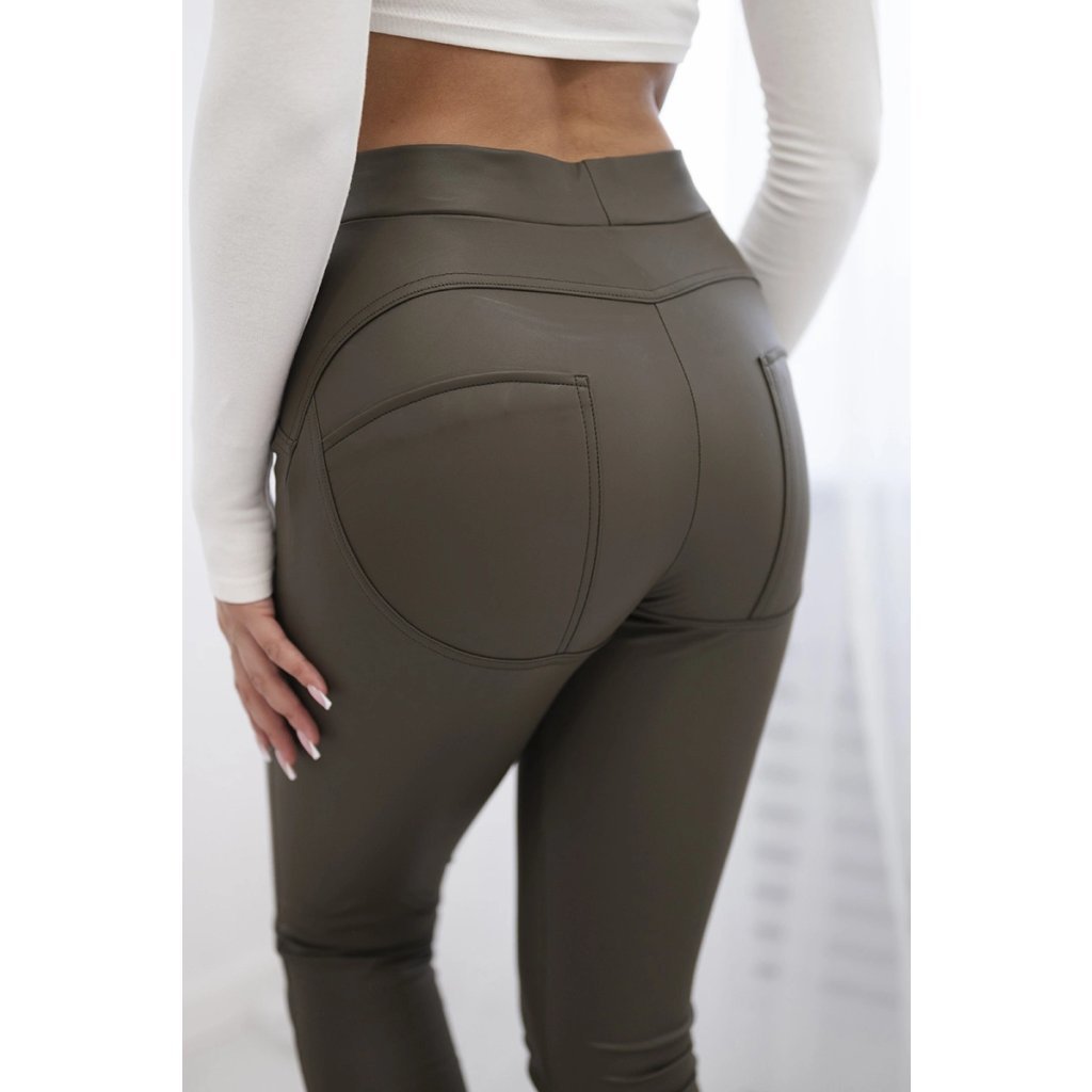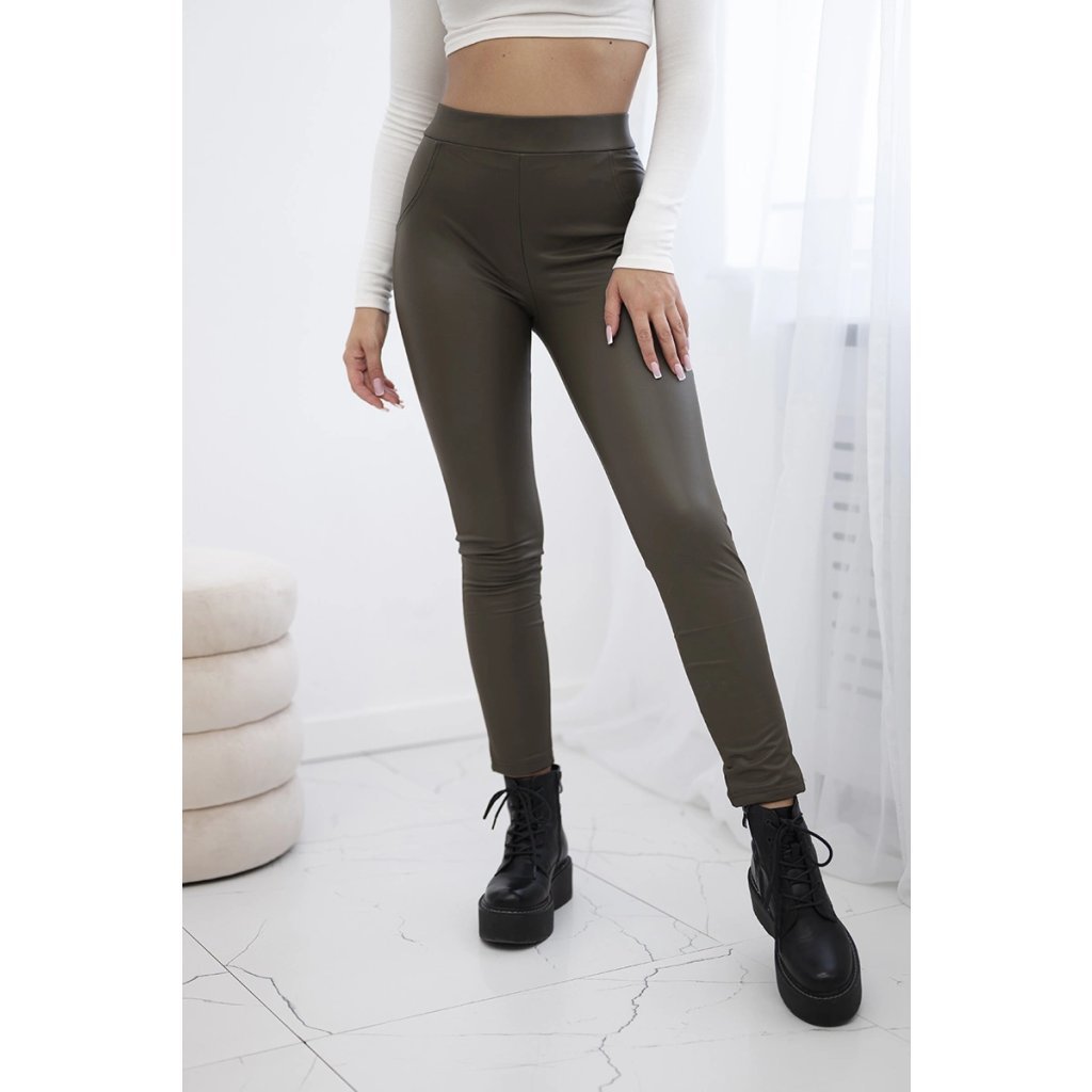 Kožené khaki legíny
