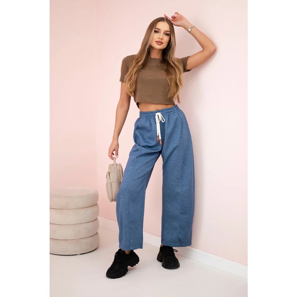 Masielkové nohavice s viazaním v páse v džínsovej melange