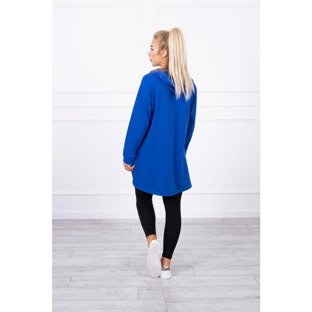 Predstavujeme vám mikinu s dlhším zadným dielom a kapucňou. Mikina má zapínanie na zips a vrecká vpredu. Vďaka hrubšiemu materiálu je ideálna na chladnejšie večery alebo jesenné dni. Mikina je vyrobená z kvalitného materiálu. Veľkosť je univerzálna a bude vhodná pre dámy s veľkosťou S, M alebo L.