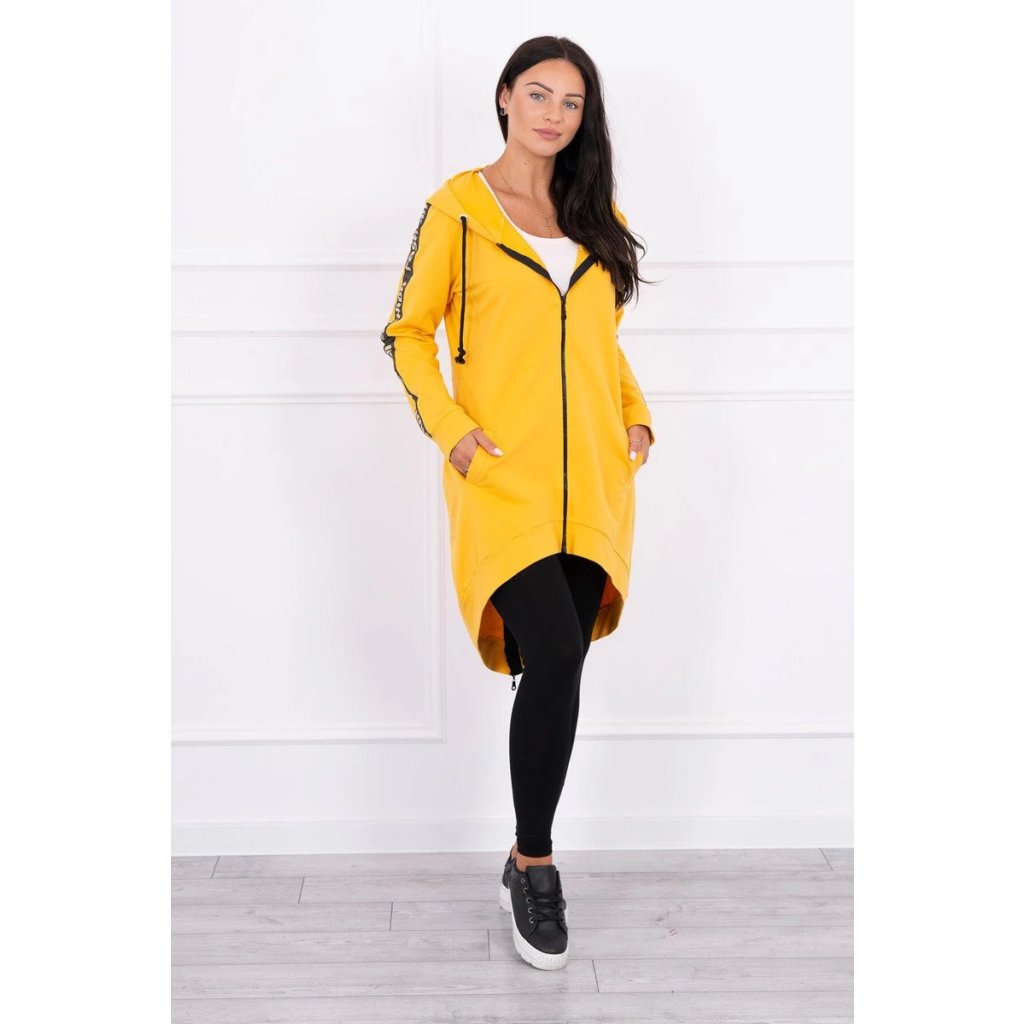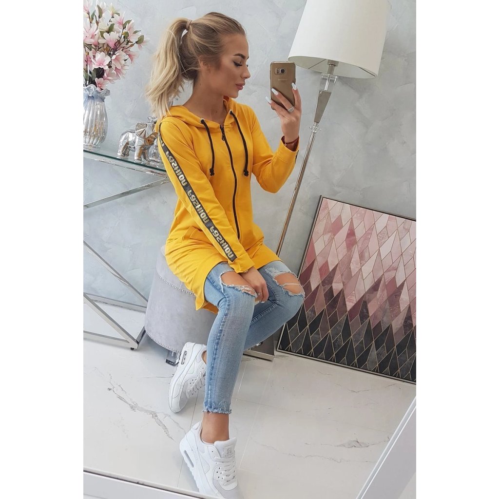 Predstavujeme Vám pohodlnú dlhú mikinu s kapucňou. Mikina má zapínanie na zips a dodatočne zips vzadu. Vrecká na bokoch a dve ozdoby vzadu. Mikina má našité pásy s nápisom fashion. Mikina je vyrobená z kvalitného materiálu. Veľkost je univerzálna a bude vhodná pre dámy nosiace veľkosť S, M alebo L.