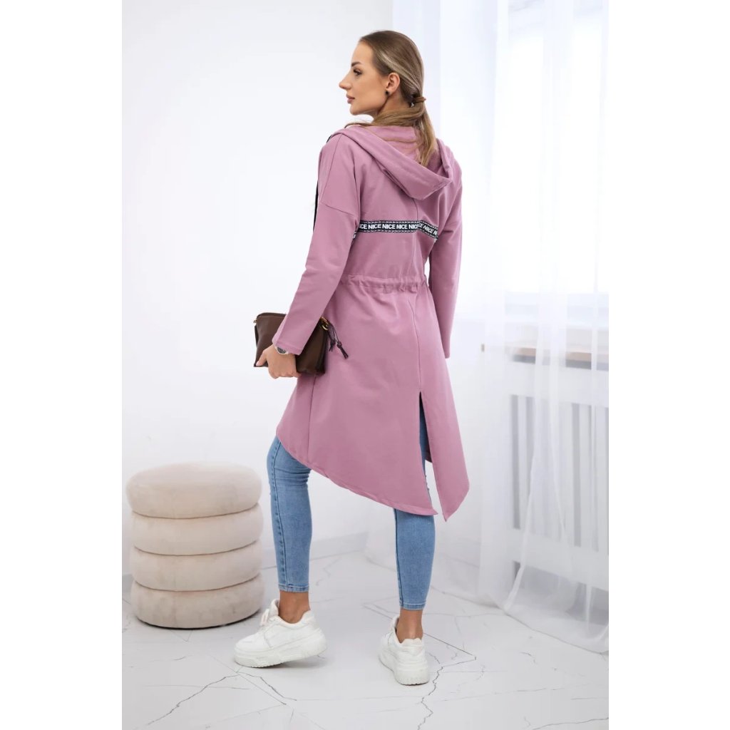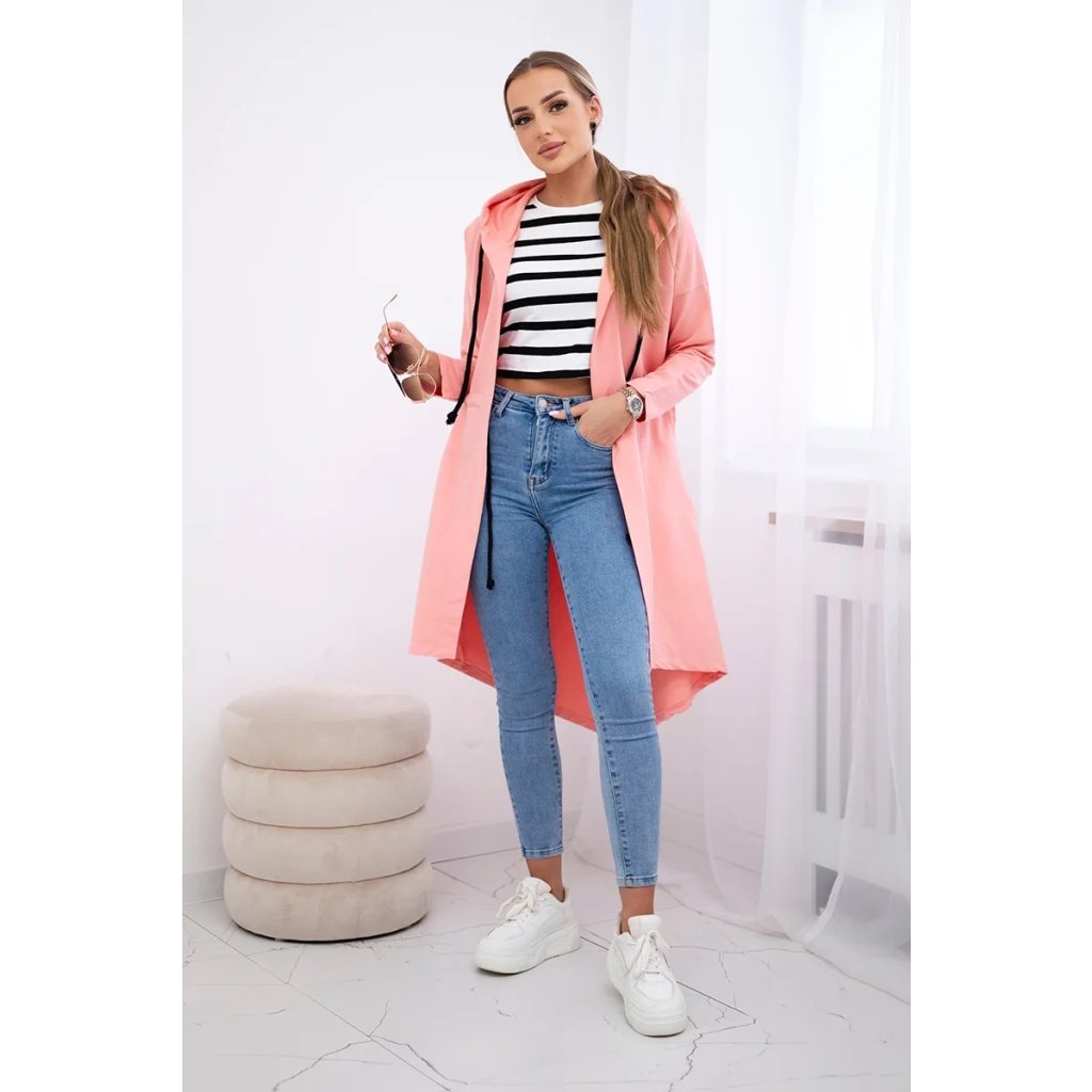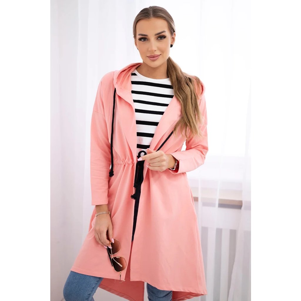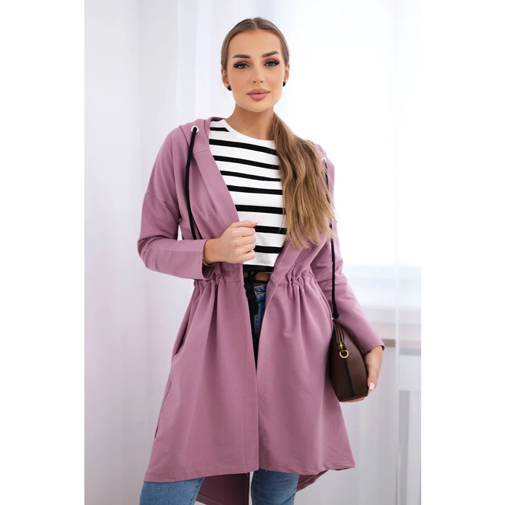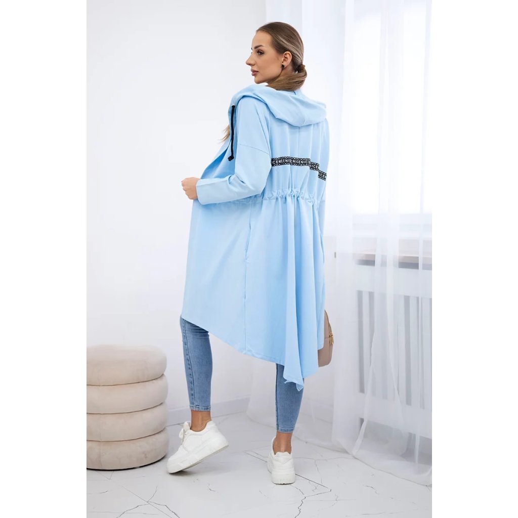 Predstavujeme vám dlhý prehoz s kapucňou. Prehoz má dlhší zadný diel a viazanie v páse. Navyše je na chrbte našitá ozdobná páska. Prehoz má vrecká. Prehoz je vyrobený z vysoko kvalitného materiálu. Veľkosť je univerzálna a bude vhodná pre dámy vo veľkostiach S, M a L.