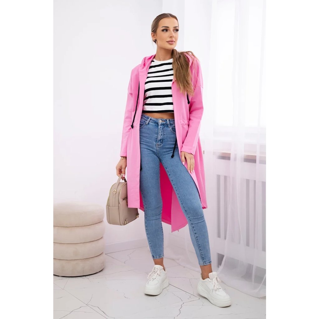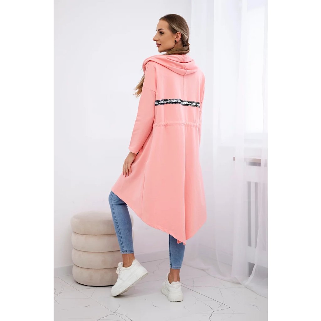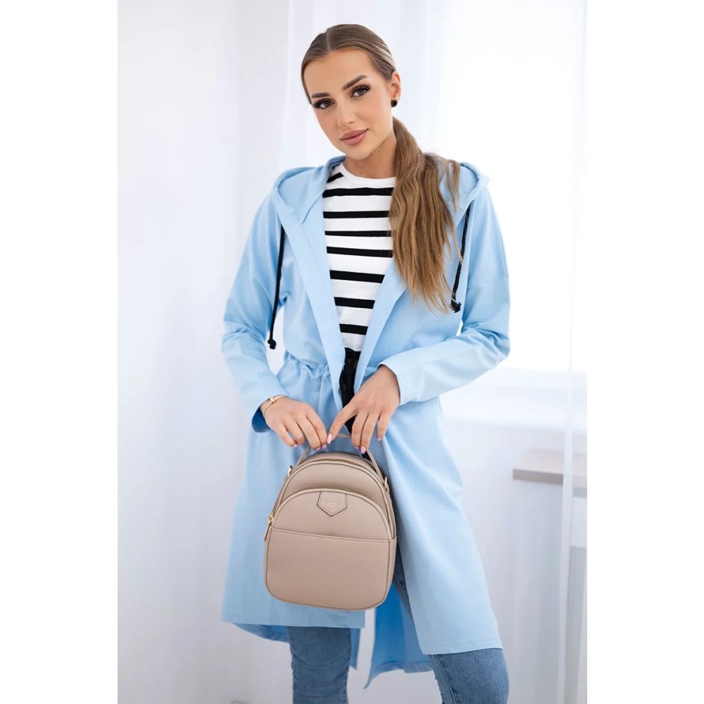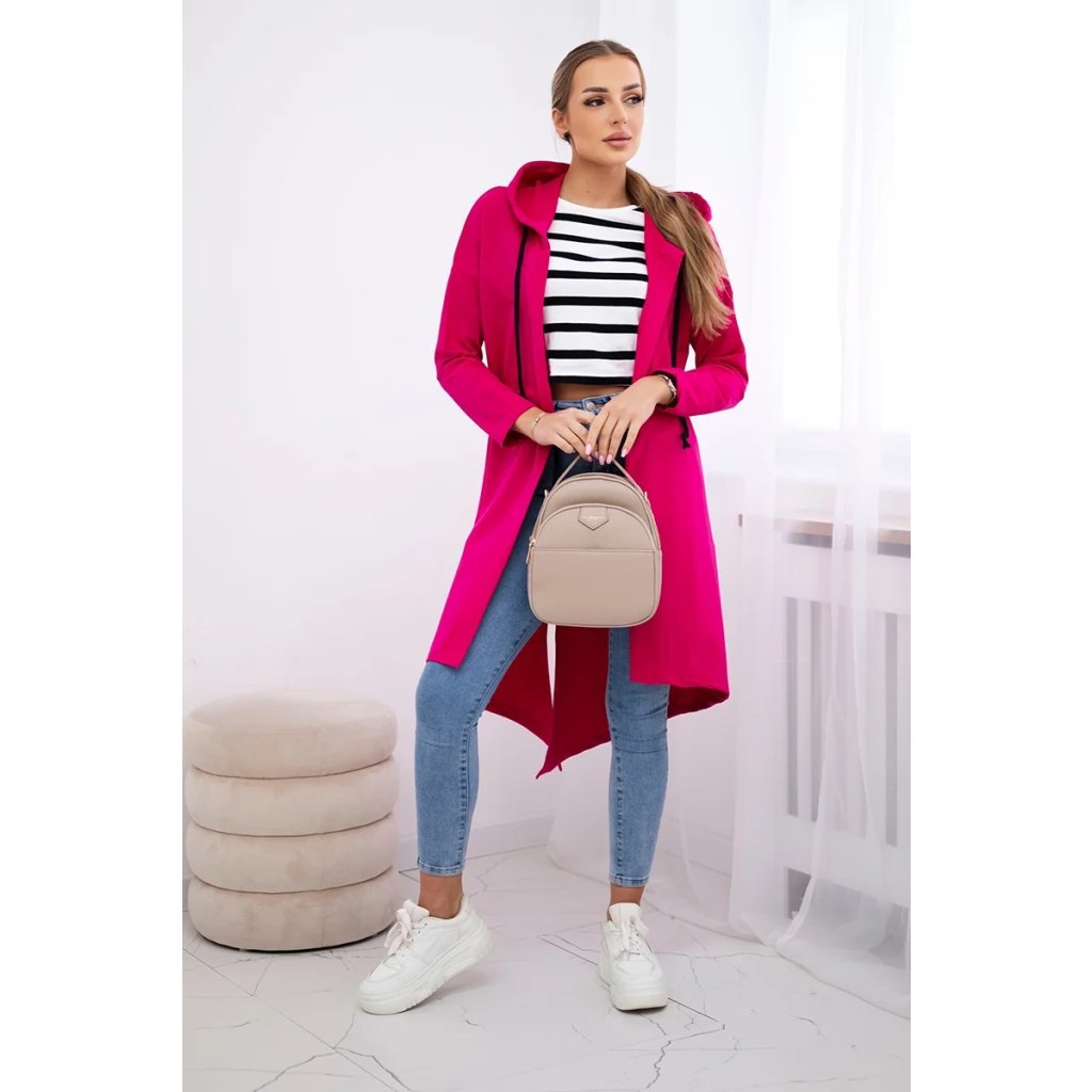 Predstavujeme vám dlhý prehoz s kapucňou. Prehoz má dlhší zadný diel a viazanie v páse. Navyše je na chrbte našitá ozdobná páska. Prehoz má vrecká. Prehoz je vyrobený z vysoko kvalitného materiálu. Veľkosť je univerzálna a bude vhodná pre dámy vo veľkostiach S, M a L.