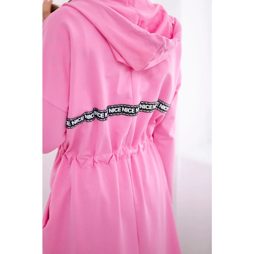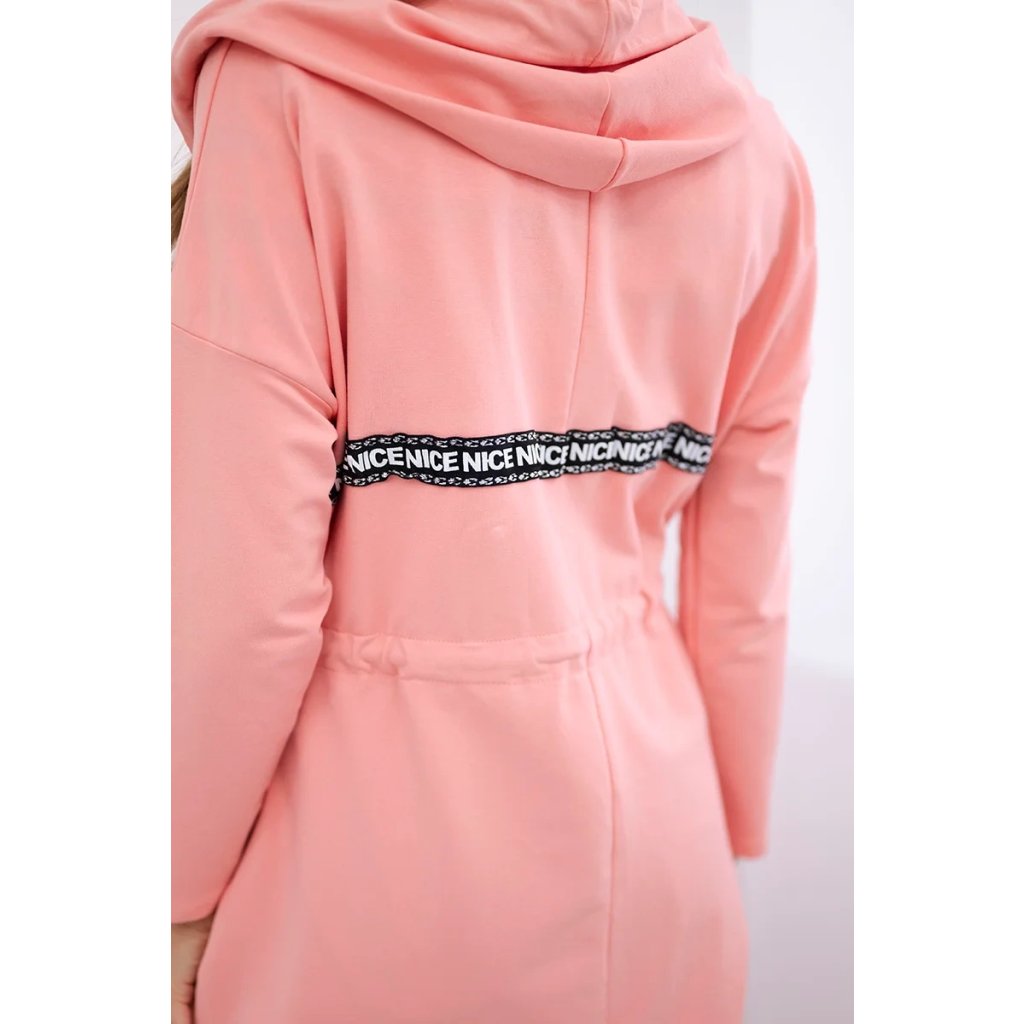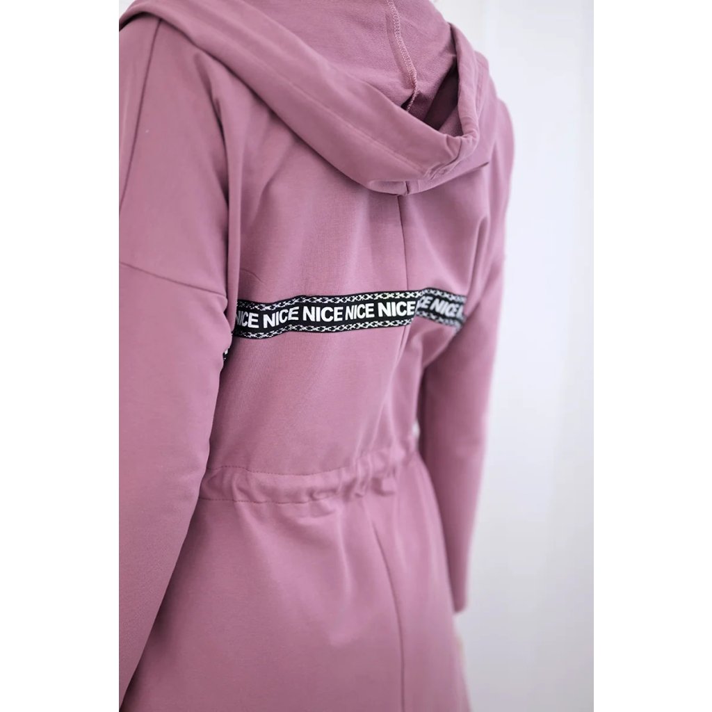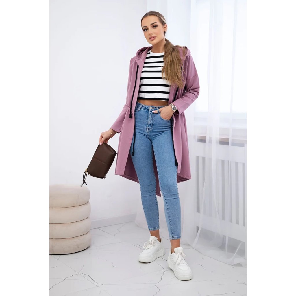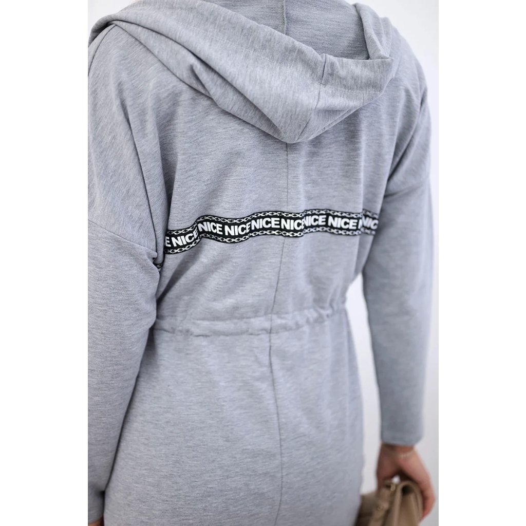Predstavujeme vám dlhý prehoz s kapucňou. Prehoz má dlhší zadný diel a viazanie v páse. Navyše je na chrbte našitá ozdobná páska. Prehoz má vrecká. Prehoz je vyrobený z vysoko kvalitného materiálu. Veľkosť je univerzálna a bude vhodná pre dámy vo veľkostiach S, M a L.