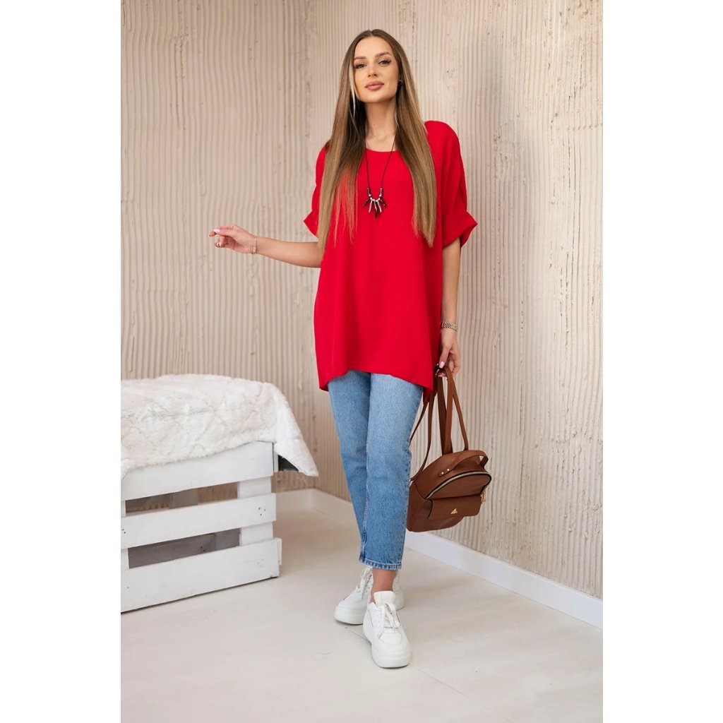 Oversize blúzka s príveskom je spojením pohodlia a jemnej elegancie. Vyrobená z pohodlného a mäkkého materiálu, táto blúzka poskytuje výnimočný komfort nosenia. Jej oversize strih pridáva slobodu pohybu, zatiaľ čo prívesok umiestnený na výstrihu pridáva jemný šarm a výraznosť. Perfektná na každodenné výlety alebo stretnutia s priateľmi, táto blúzka vám umožní cítiť sa výnimočne a uvoľnene, pričom zostane módnym doplnkom vášho šatníka. Veľkosť je univerzálna a bude vhodná pre dámy nosiace veľkosť S, M alebo L.