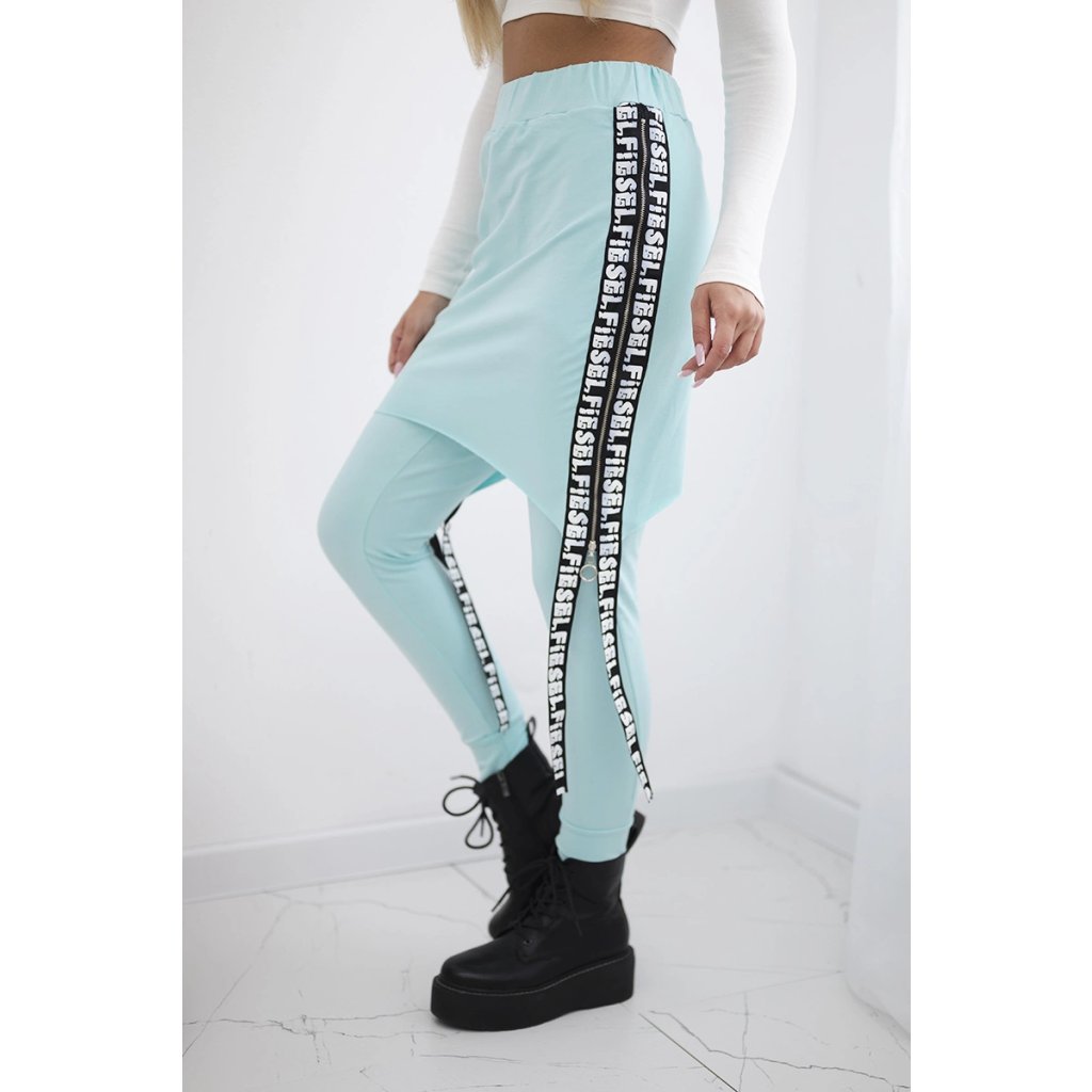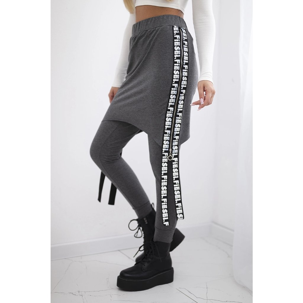 Nohavice s vreckami. Na bokoch našitý zips s páskami.