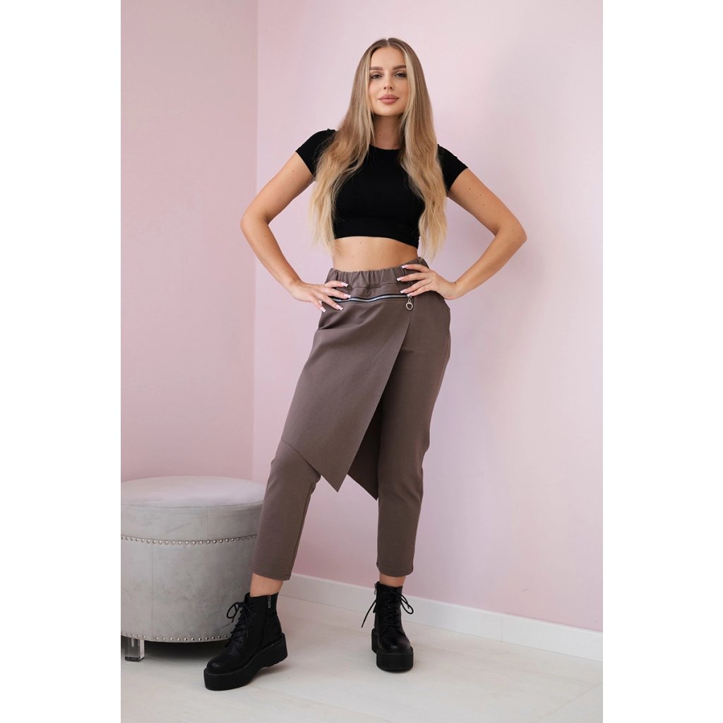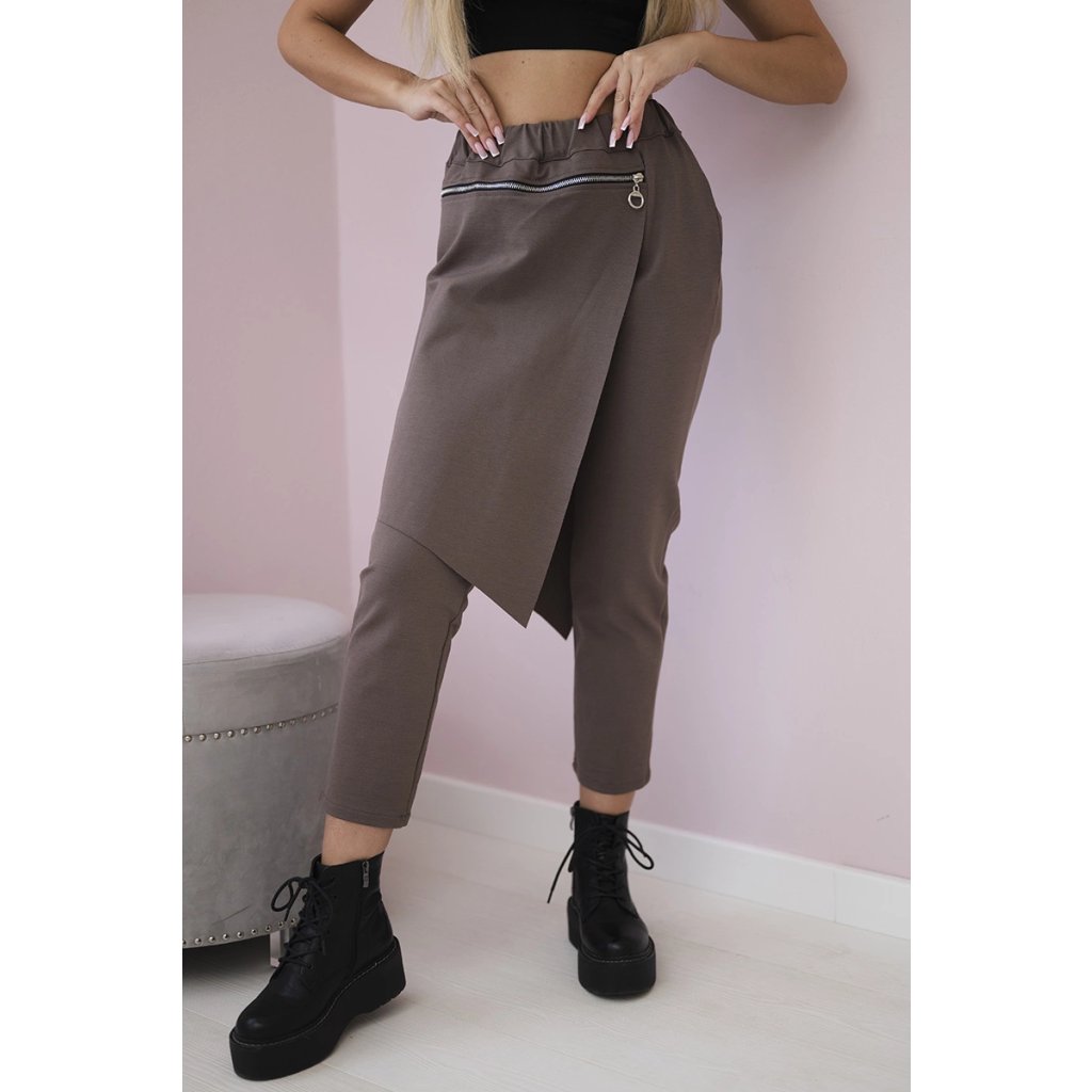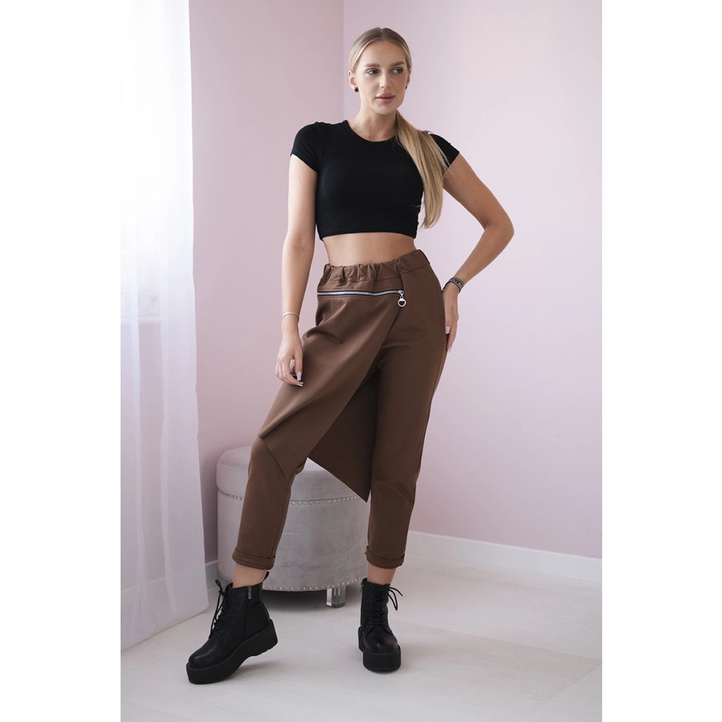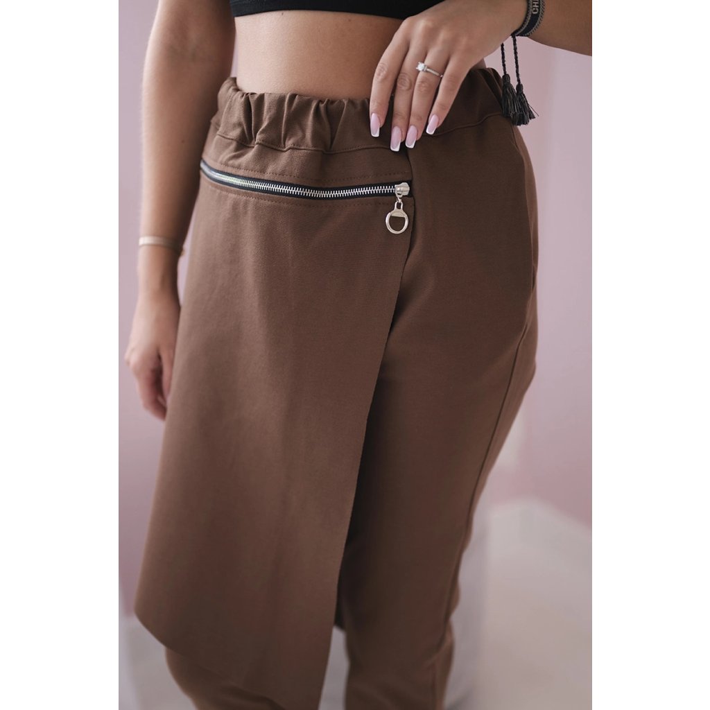 Nohavice Punto Milano Winter s ozdobným zipsom hnedé